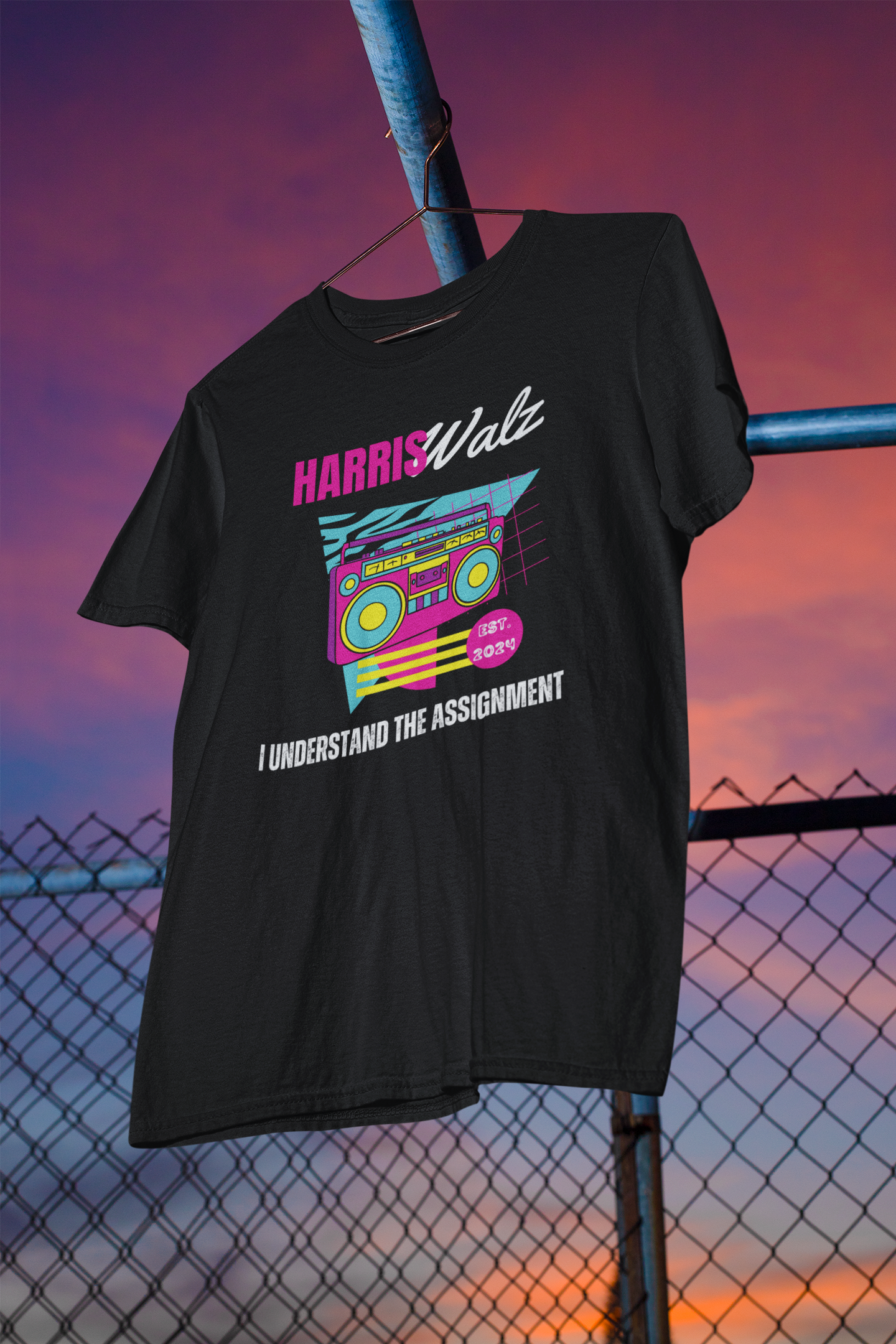 Step back into the vibrant 90s with the Harris Walz 2024 T-shirt! Bursting with bright colors and nostalgic 90s-inspired graphics, this tee is a playful yet powerful way to show your support. The bold slogan, "I understand the assignment," pays homage to Vice President Kamala Harris' iconic words while embodying the energy and optimism of her campaign with Tim Walz. This shirt is not just a throwback to the decade of fun and freedom—it's a forward-thinking statement for the future. Rock this tee and show you’re on the winning team in style!
