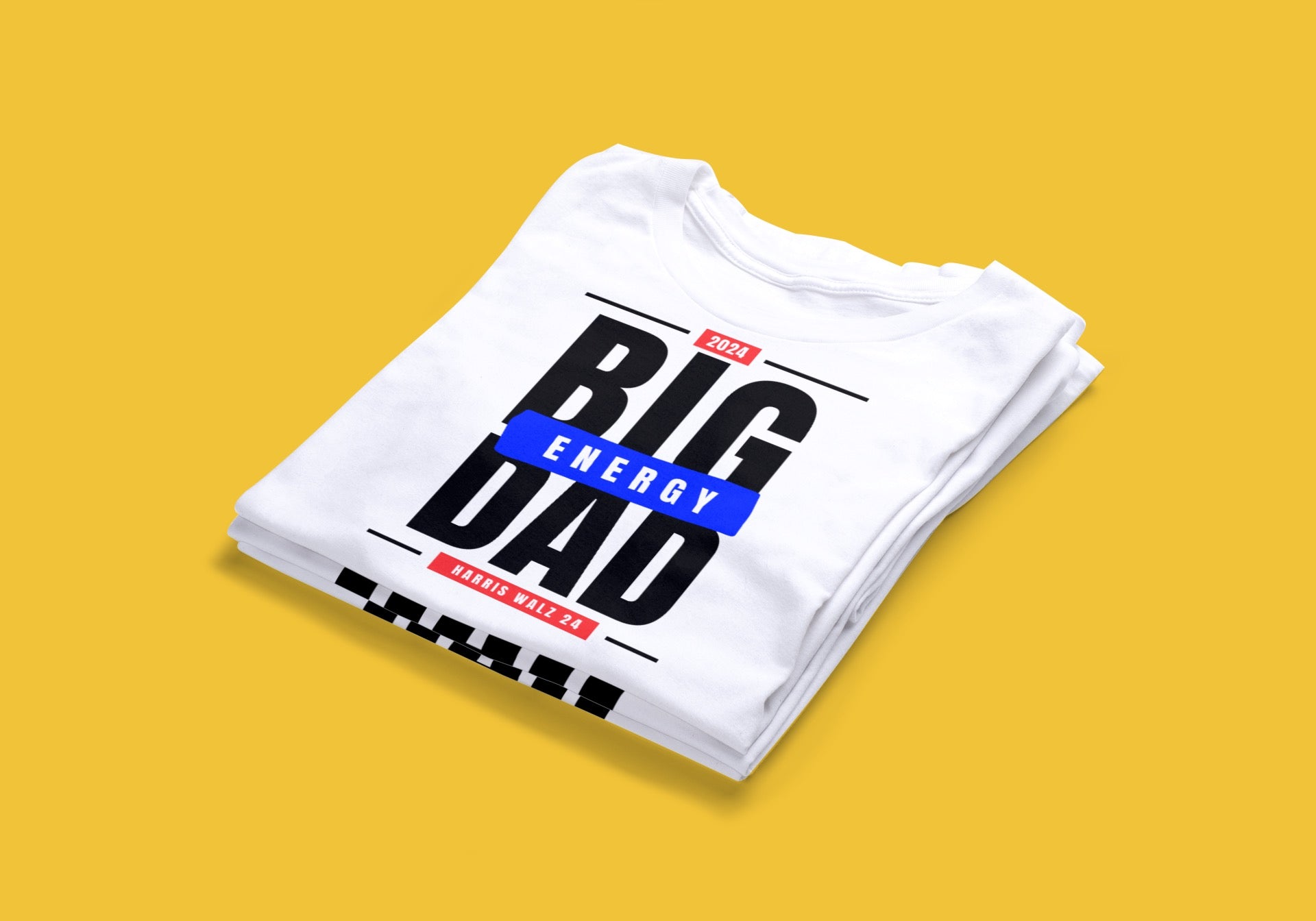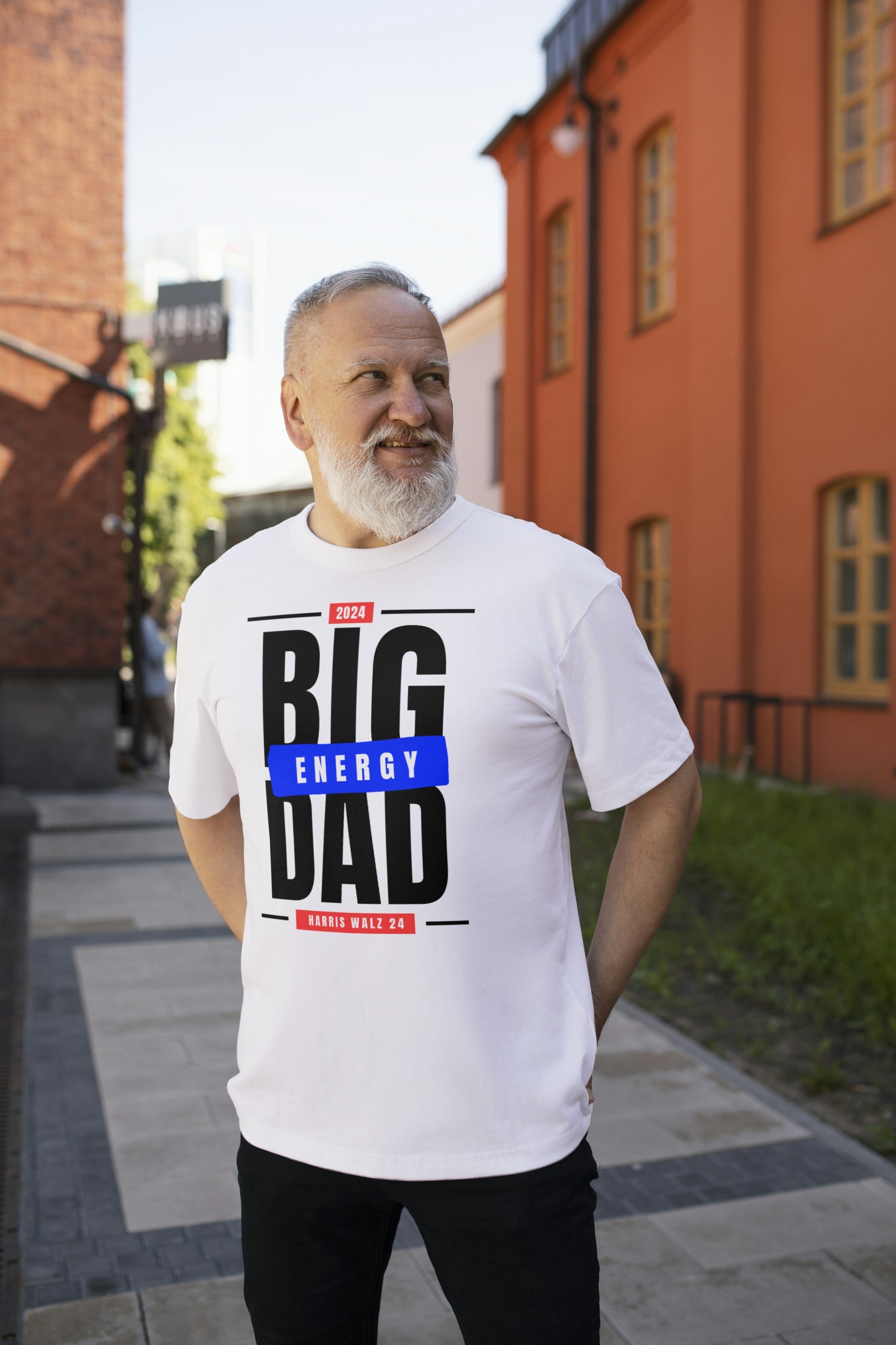 Celebrate the spirit of optimism and unity with our "Big Dad Energy" T-shirt. In honor of Vice President Harris's exciting announcement of Governor Walz as her running mate, this shirt embodies a refreshing blend of happiness, kindness, and joy in the political arena. Crafted for comfort and style, it features a bold design that captures the essence of positive leadership and camaraderie. Wear it proudly to show your support for a brighter, more inclusive future, and embrace the uplifting energy that this new chapter represents.
