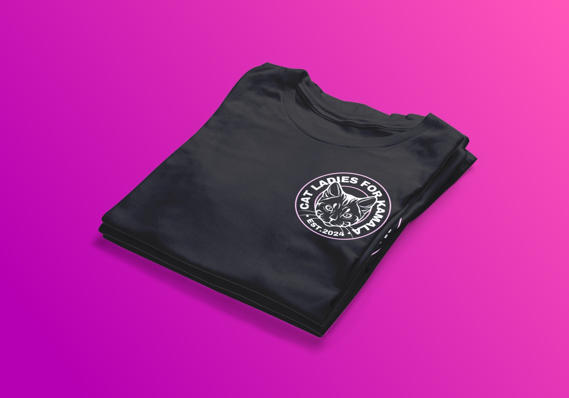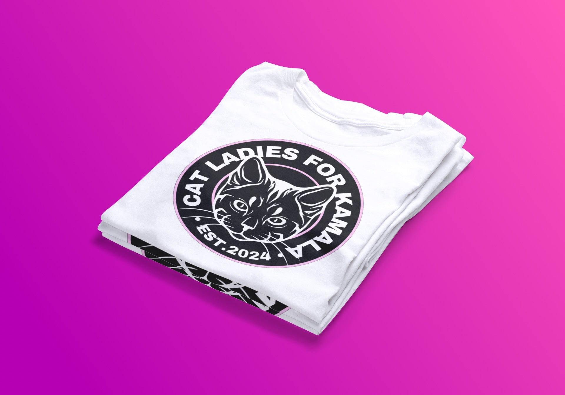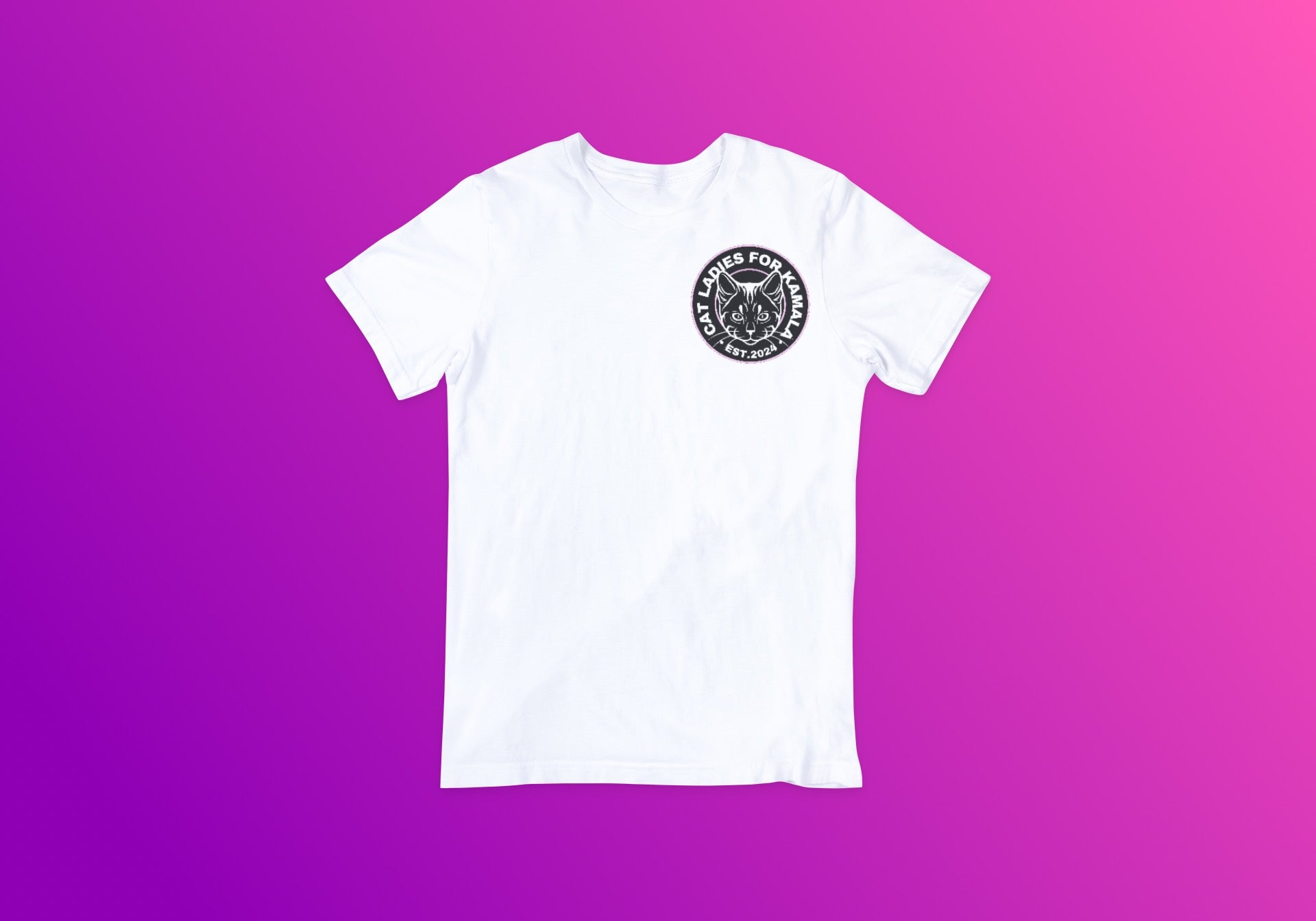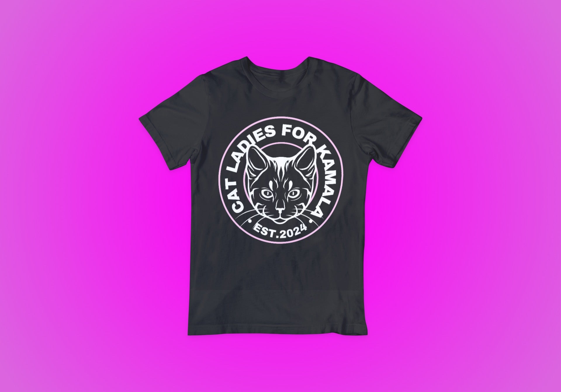 Embrace your love for feline companions and celebrate Vice President Kamala Harris’s run for POTUS with the "Cat Ladies for Kamala" tee. Available in vibrant pink, sleek black, or classic white, this tee features a custom design that embodies elegance and empowerment. Choose between a large emblem for a bold statement or a small emblem for subtle sophistication. Whether you're advocating for women's rights, feline welfare, or simply showing your admiration for Kamala Harris, this tee is the purr-fect choice for making a stylish statement with purpose.