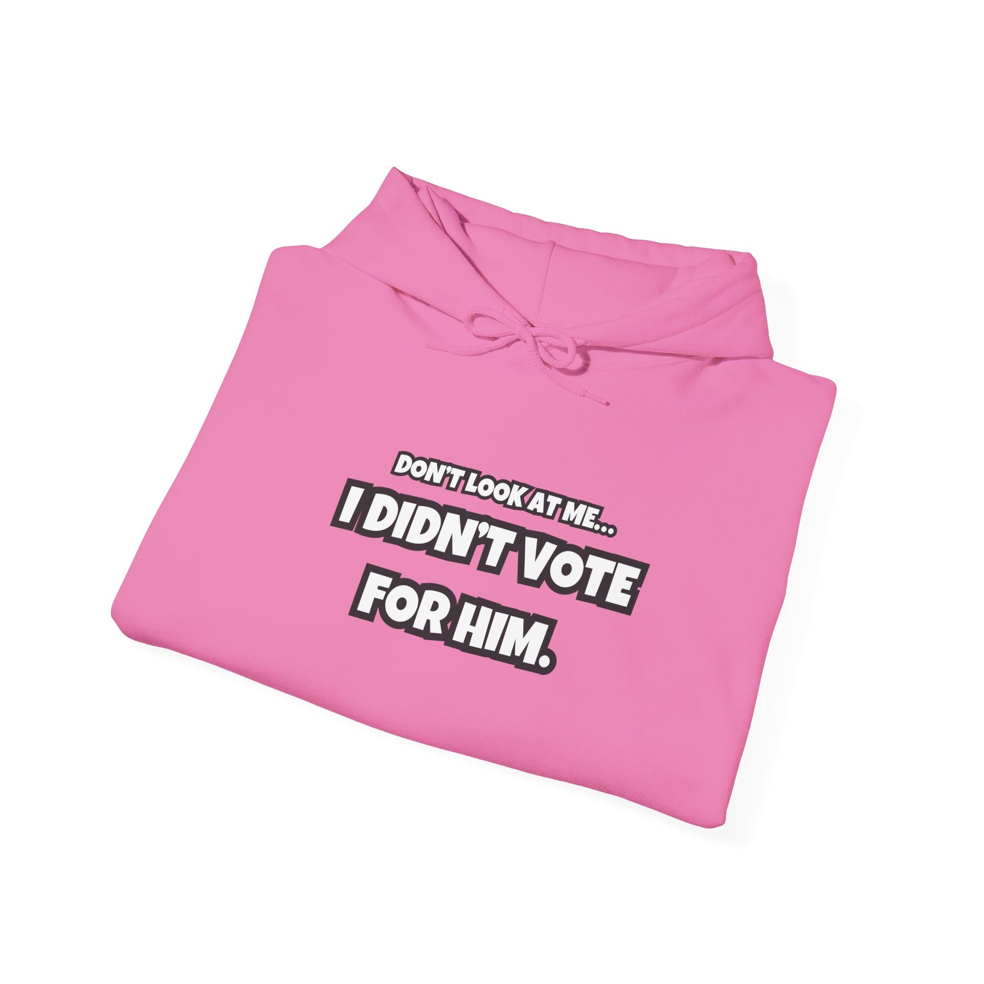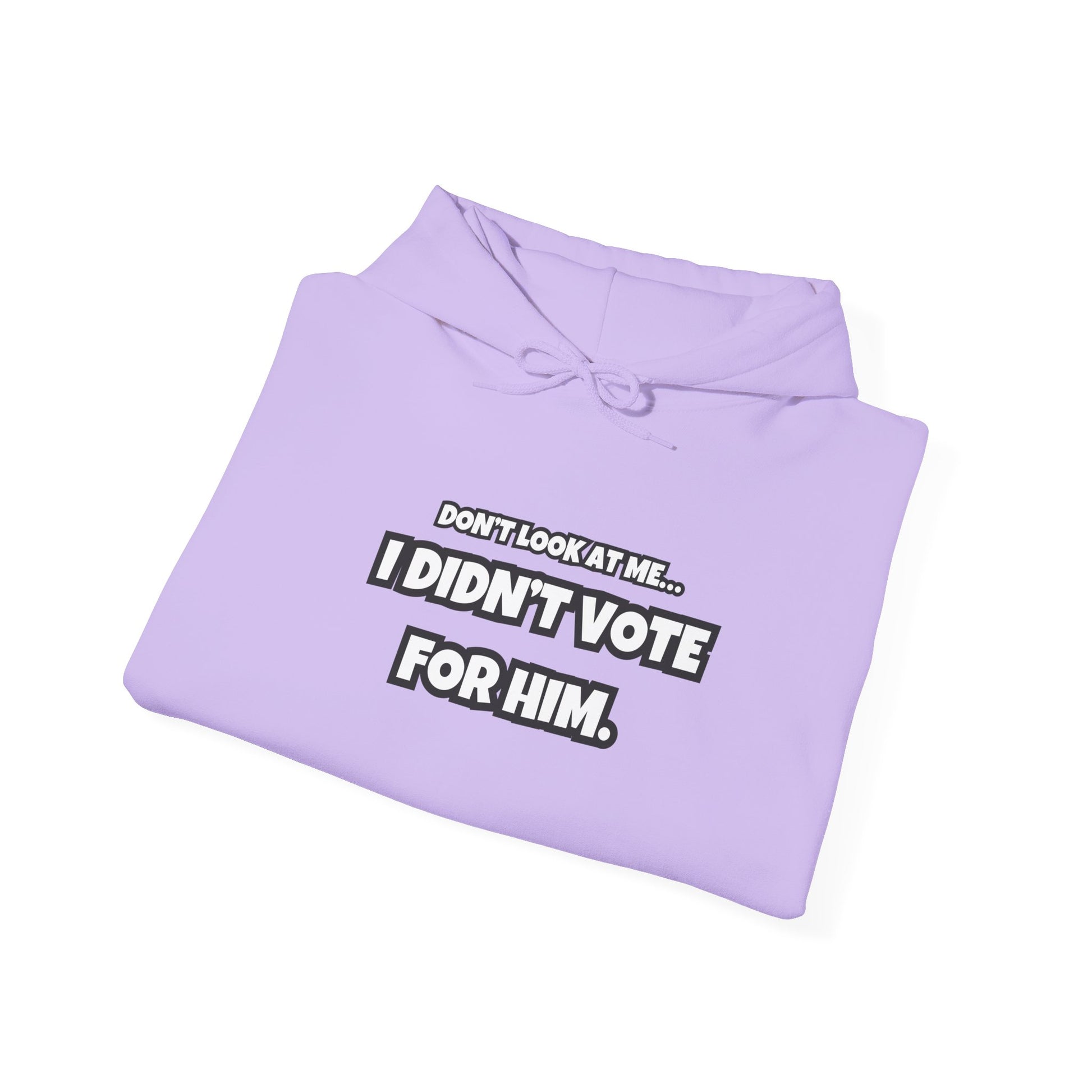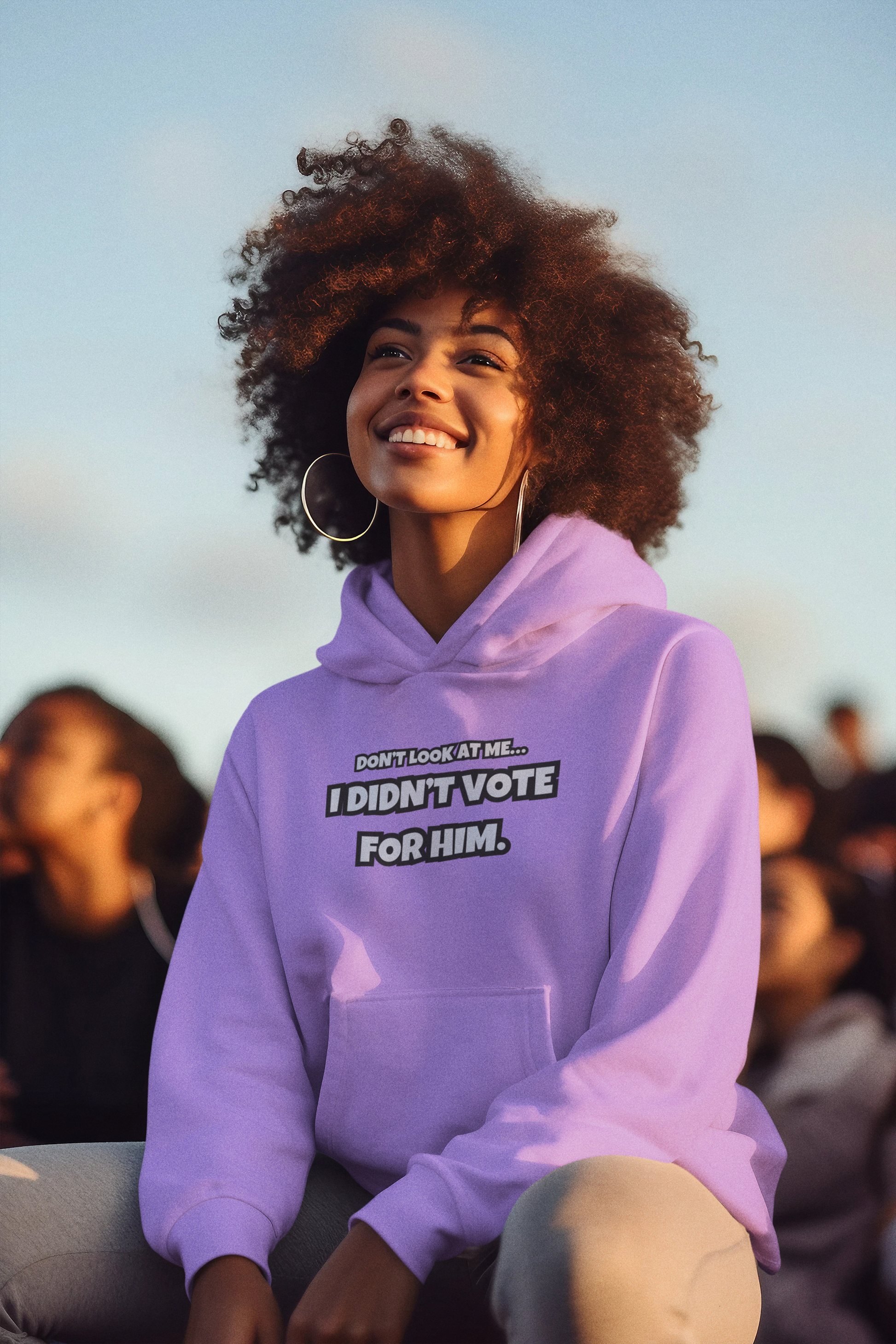For those who stood on the right side of history, this hoodie is more than just clothing—it’s a badge of pride. Designed for people who showed up, voted, and fought for change, this hoodie is a bold declaration that you did your part, no matter the outcome. The message, "Don’t look at me, I didn’t vote for him," is a powerful reminder of your efforts to create a better future.