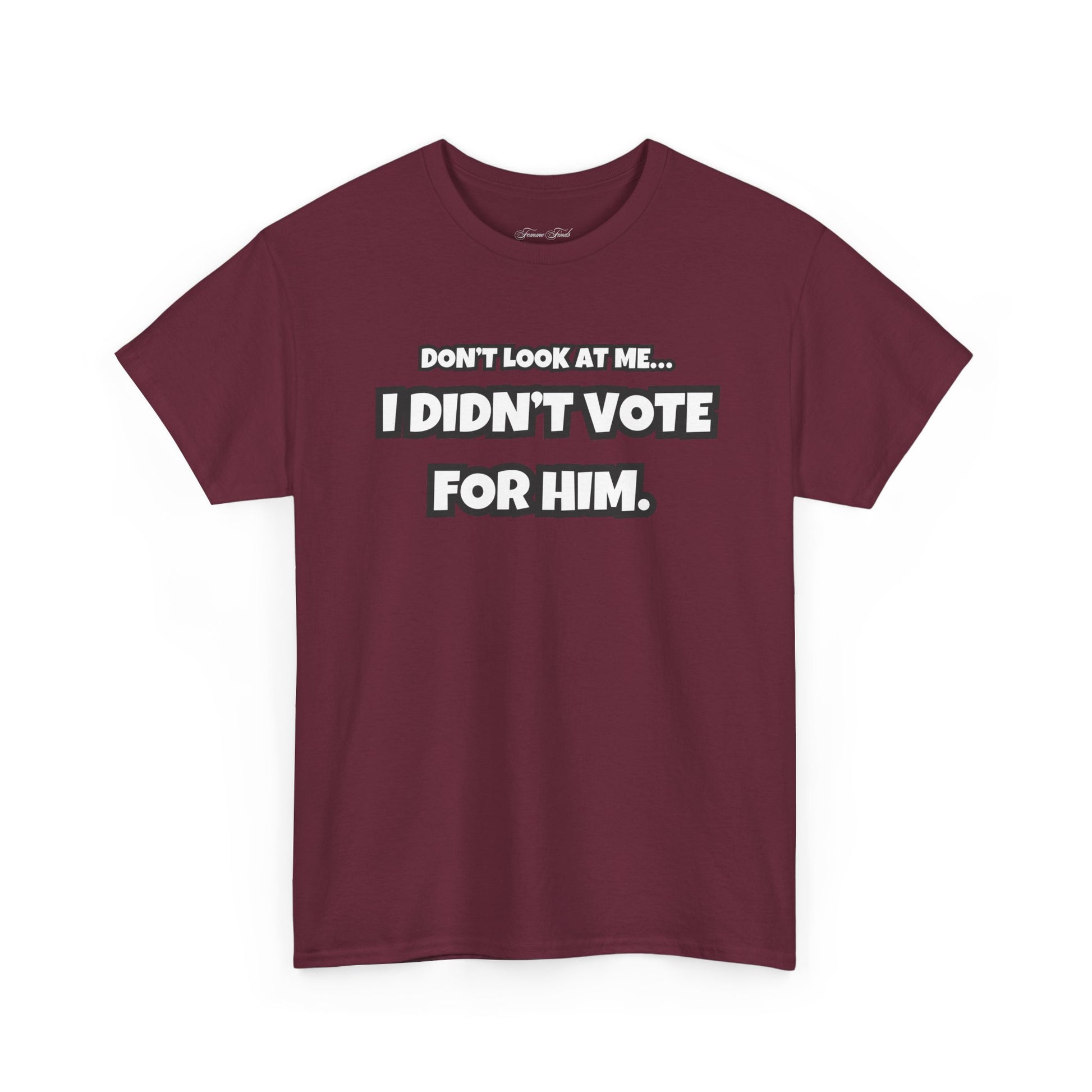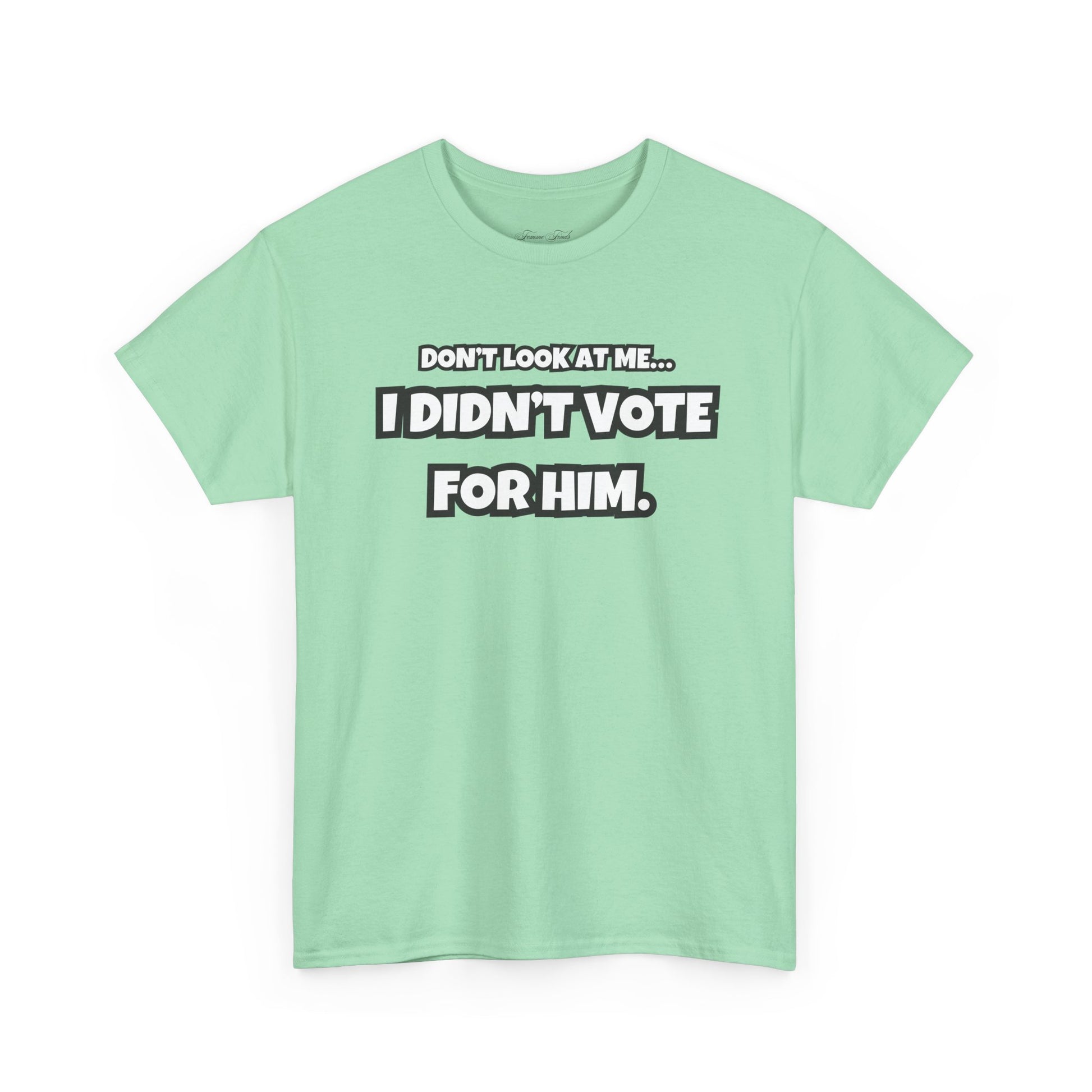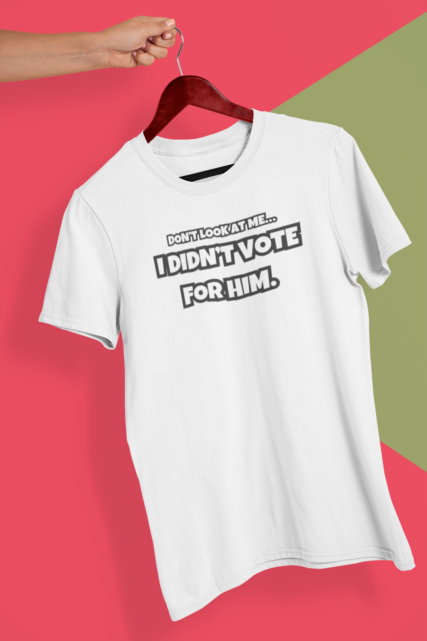 “DON’T LOOK AT ME, I DIDN’T VOTE FOR HIM” TSHIRT (TEXT ONLY)