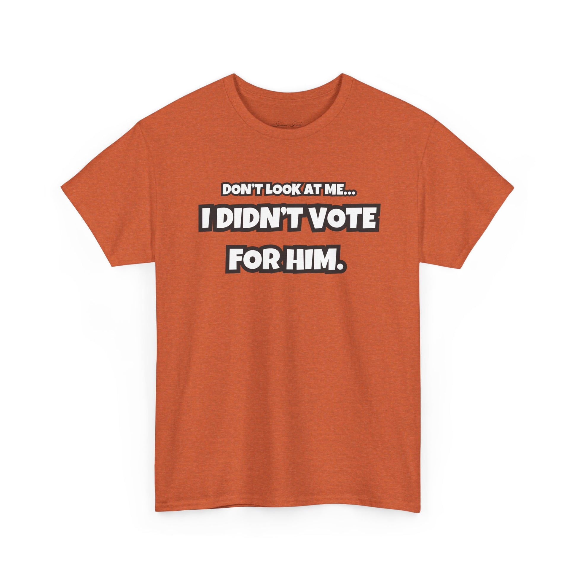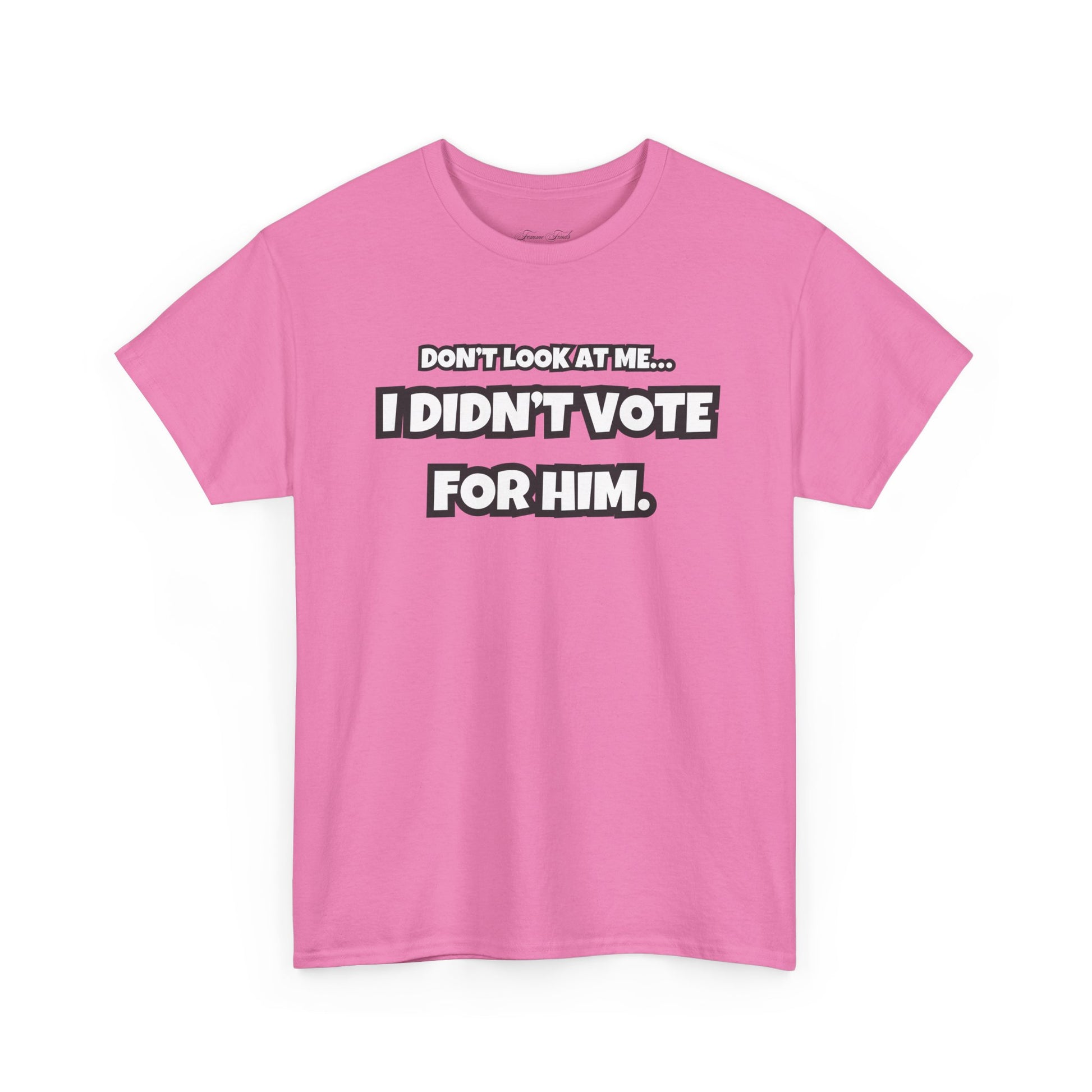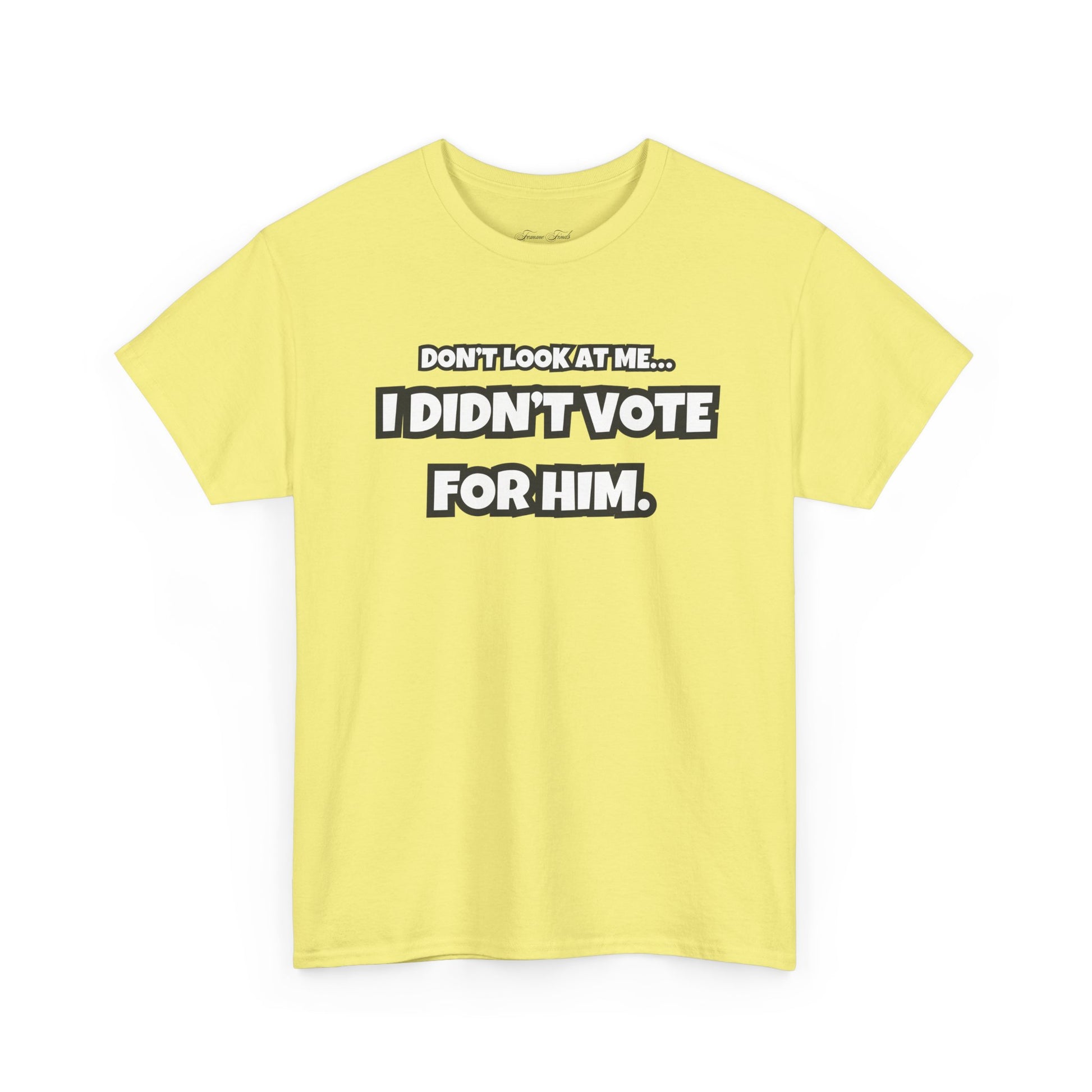 “DON’T LOOK AT ME, I DIDN’T VOTE FOR HIM” TSHIRT (TEXT ONLY)