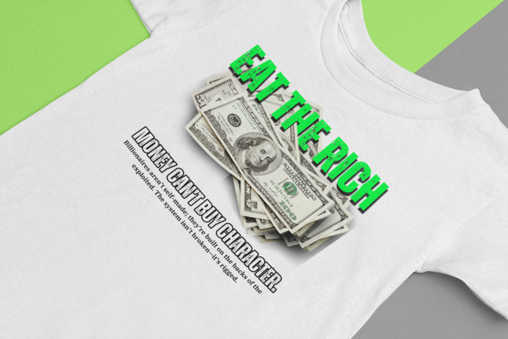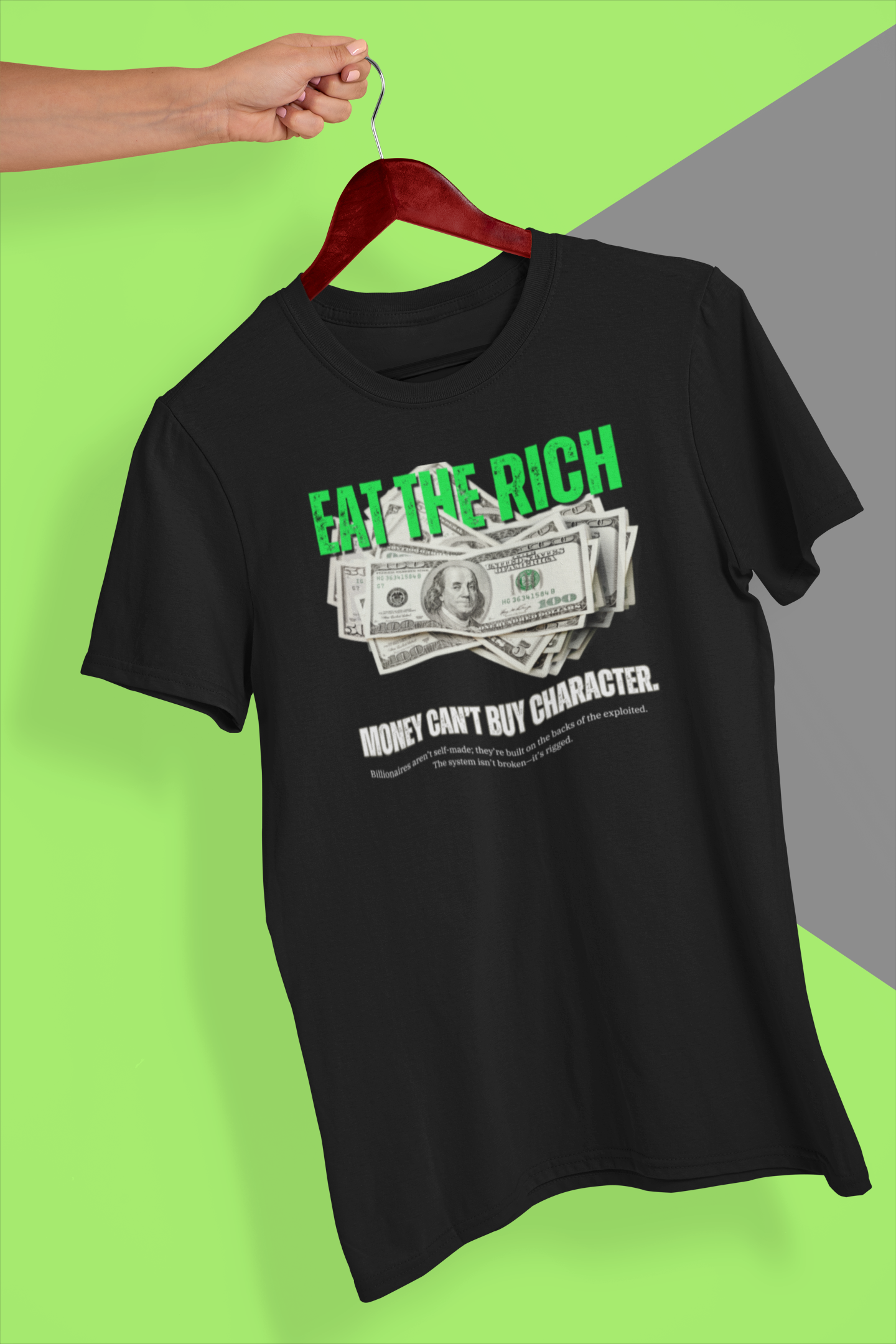 Make a bold statement with this Eat the Rich T-shirt, featuring the powerful quote: