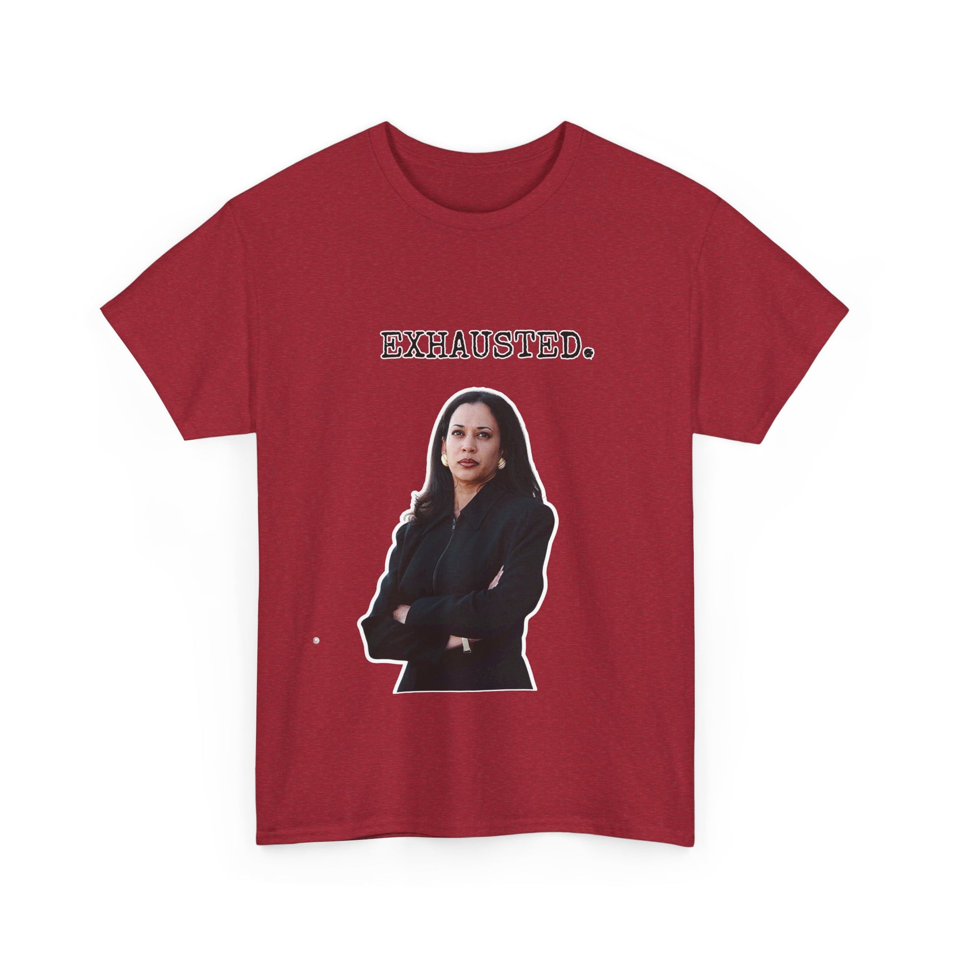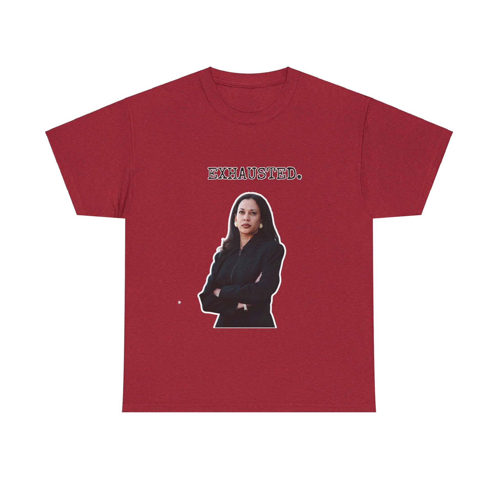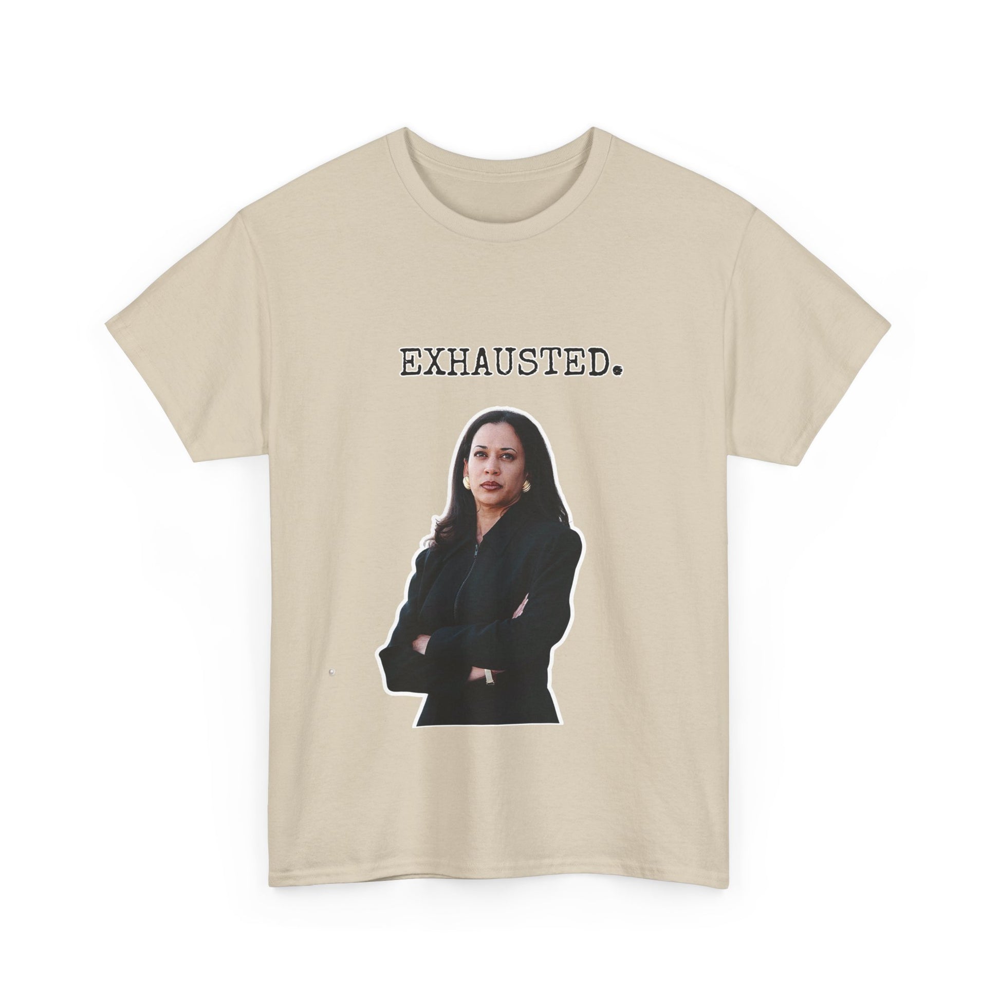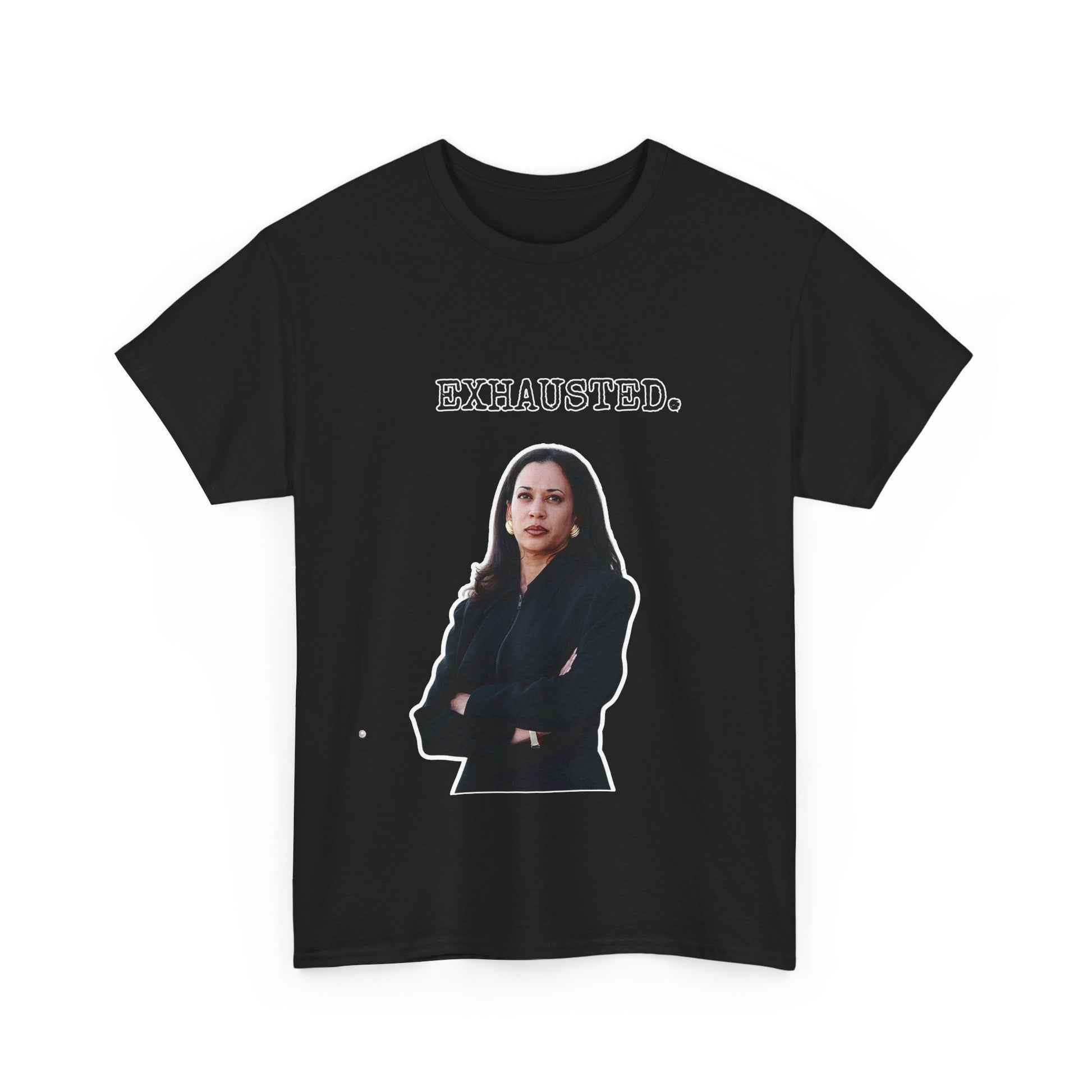 Introducing the "Exhausted" T-Shirt—a bold statement piece for those who are ready to voice their frustration and demand change. This unique tee features a striking throwback photo of Vice President Kamala Harris, capturing a moment of resilience and determination. The word "Exhausted" boldly emblazoned across the front encapsulates the collective weariness felt by many in today’s political climate.
