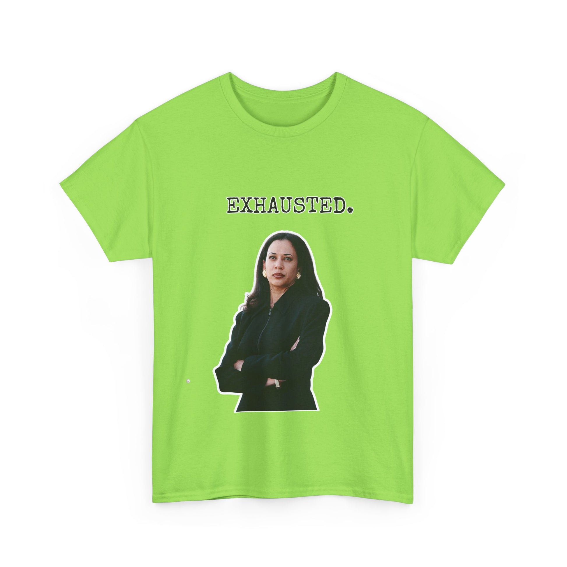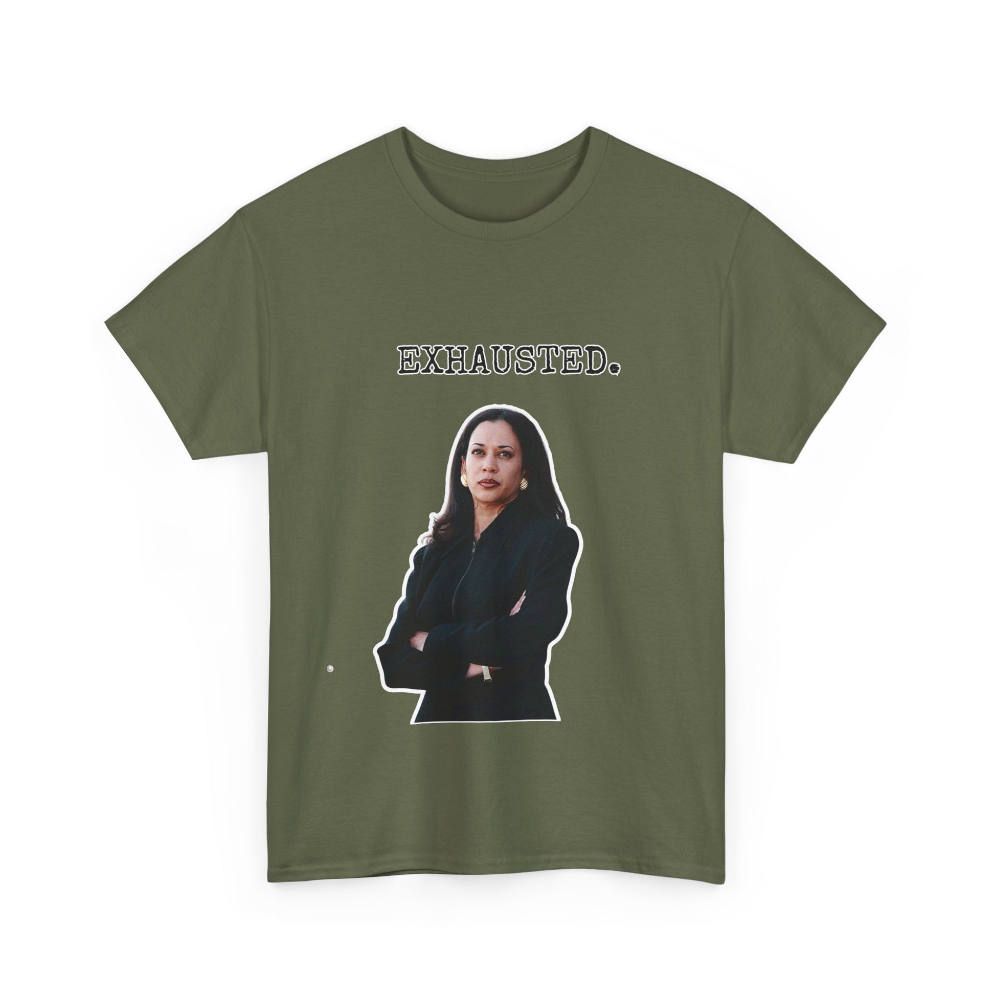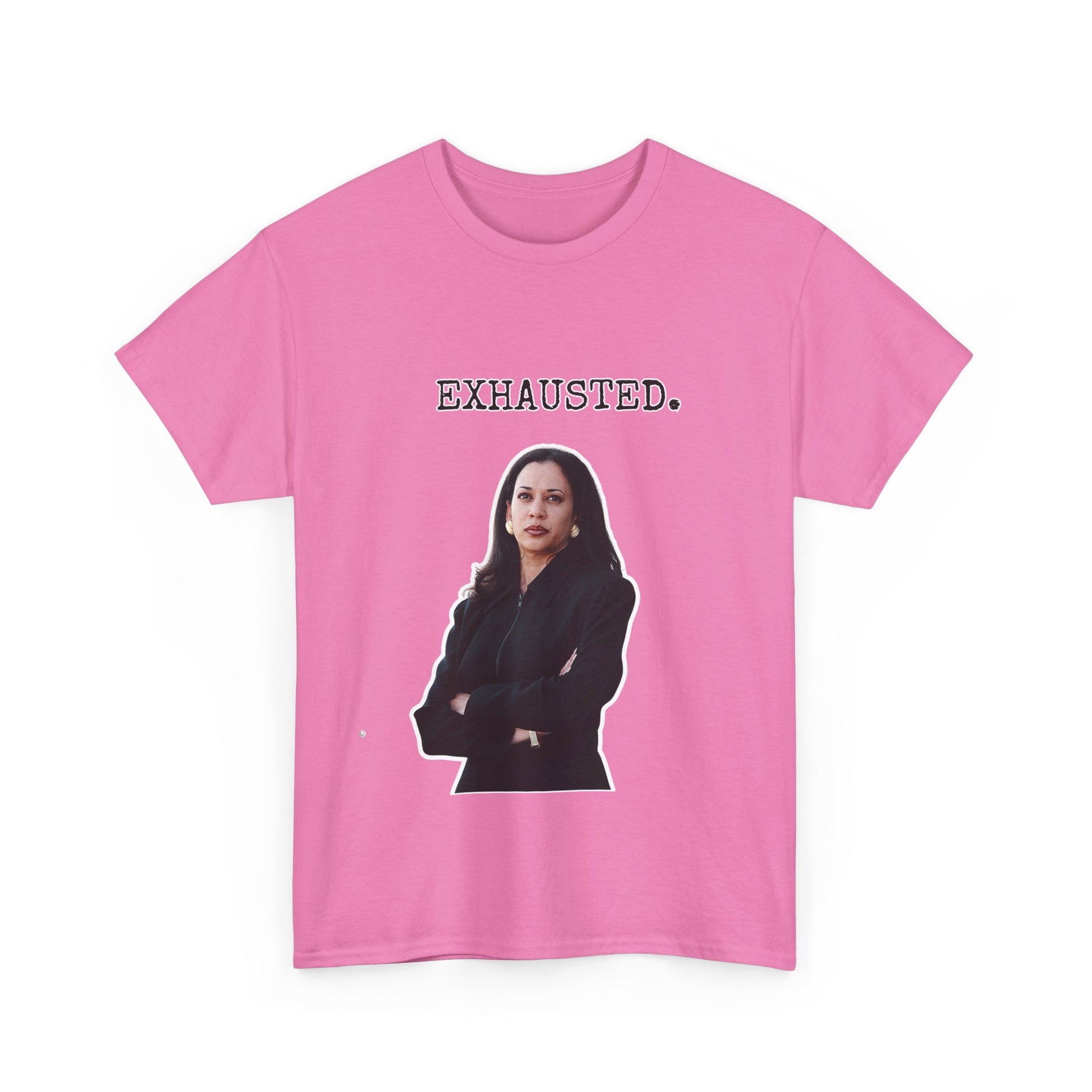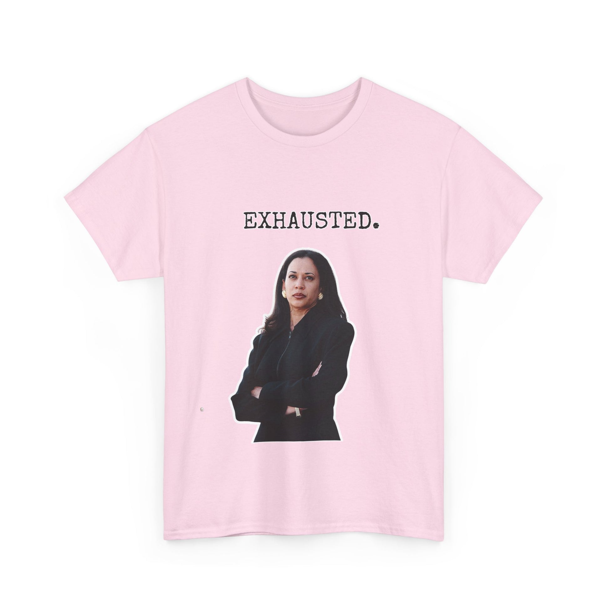 Introducing the "Exhausted" T-Shirt—a bold statement piece for those who are ready to voice their frustration and demand change. This unique tee features a striking throwback photo of Vice President Kamala Harris, capturing a moment of resilience and determination. The word "Exhausted" boldly emblazoned across the front encapsulates the collective weariness felt by many in today’s political climate.