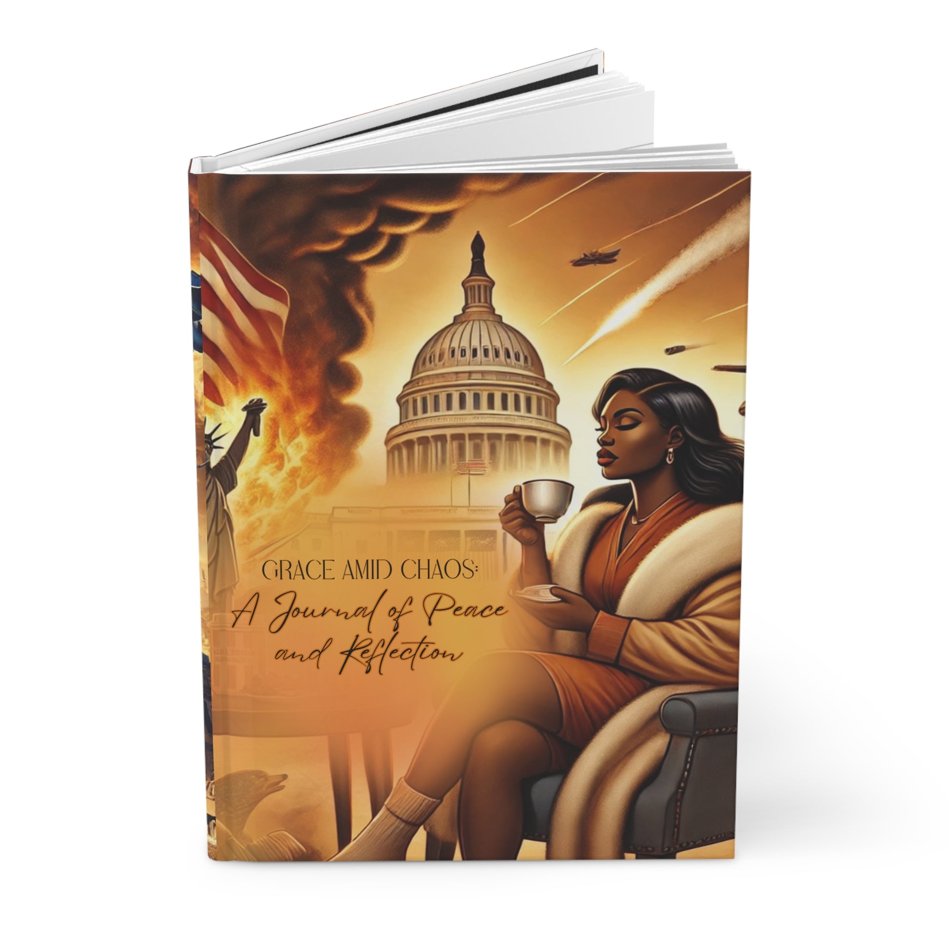 Celebrate the strength and resilience of Black women with *Grace Amid Chaos*, a beautifully designed journal featuring stunning artwork by a talented Black female artist. This piece is a tribute to the 92% of Black women who proudly stood for Kamala Harris during the 2024 election and is a reminder of their enduring power, grace, and determination, even in the face of disappointment.