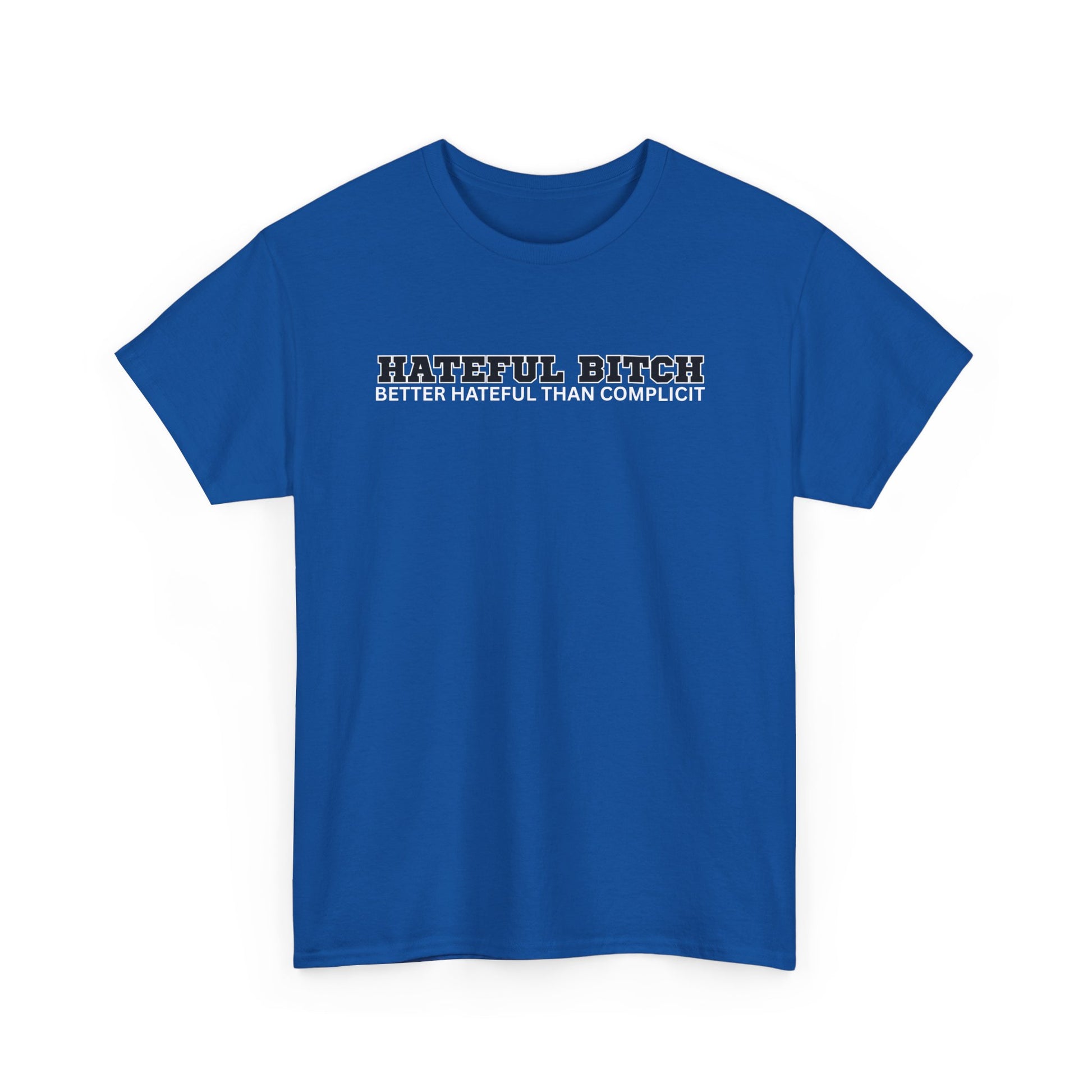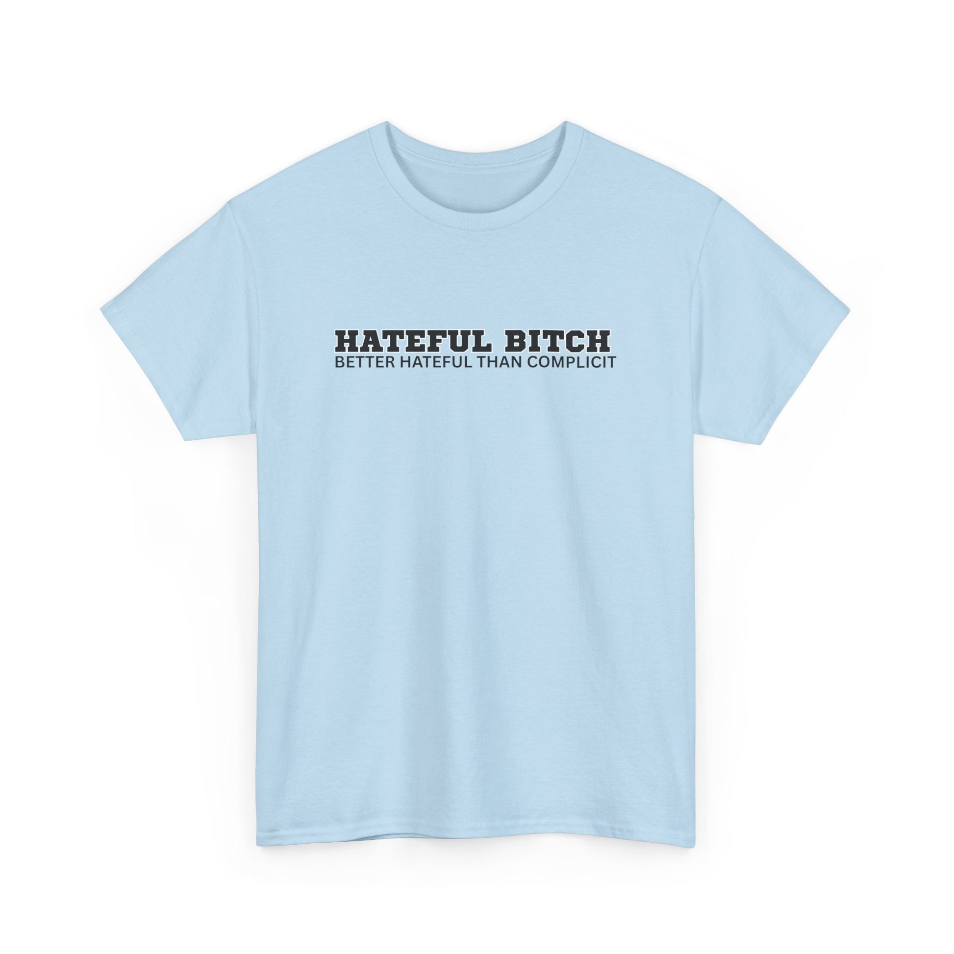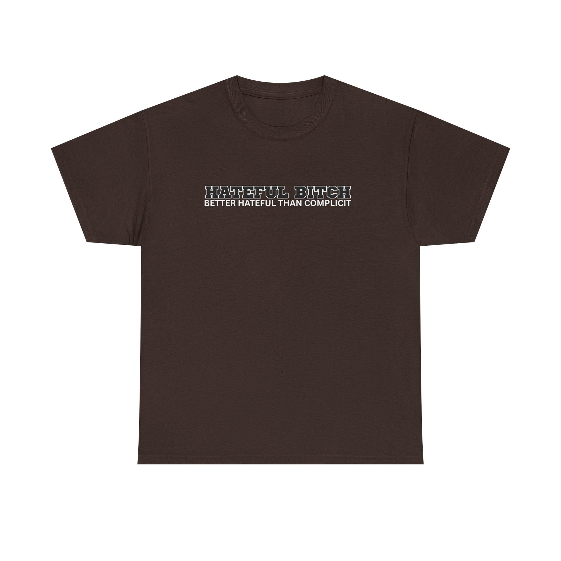 Featuring the bold statement “Better Hateful Than Complicit,” this shirt speaks for those who choose truth over comfort and action over silence. It’s not just a slogan... it’s a stance.