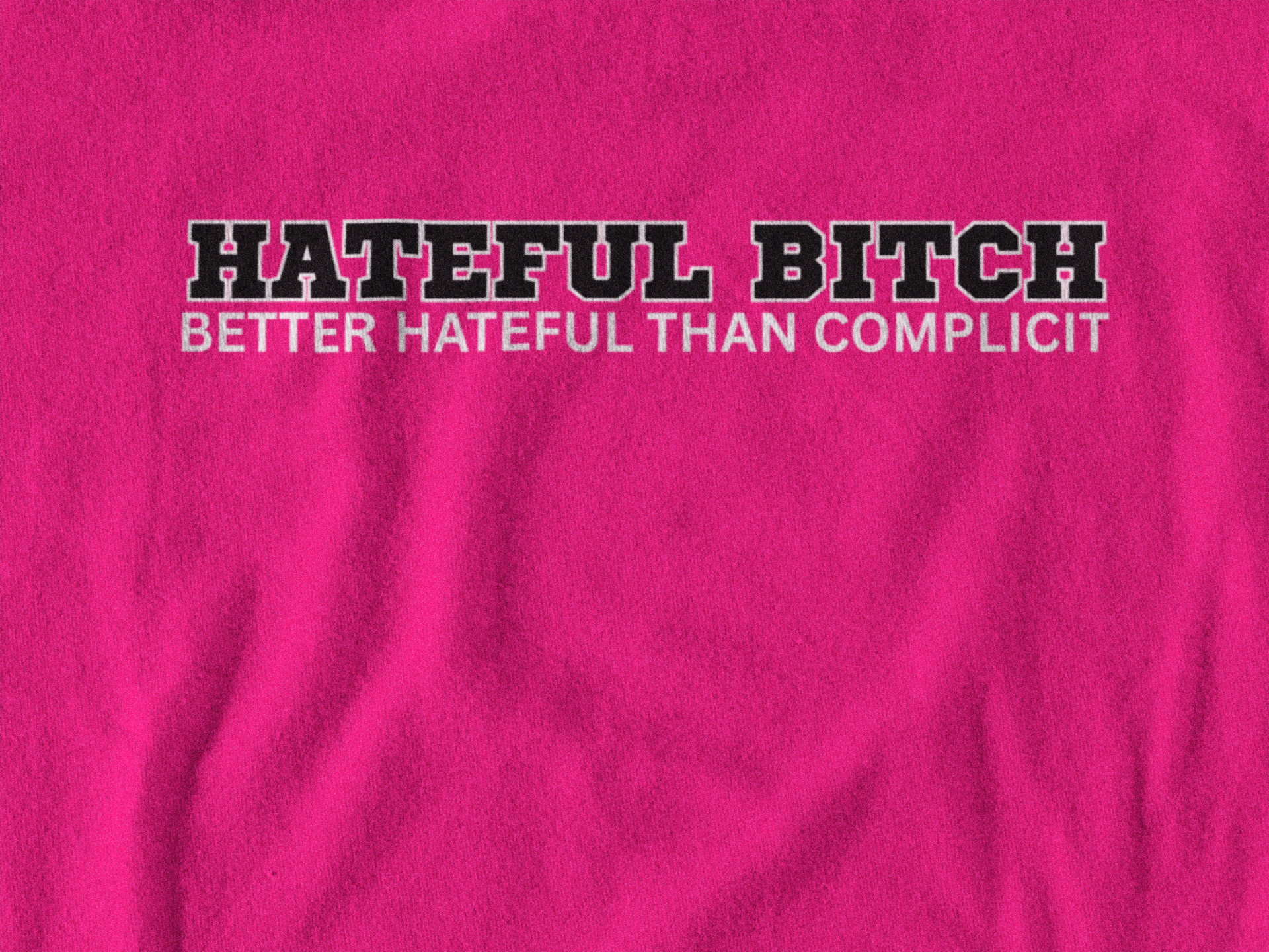 The Hateful Bitch T-Shirt is for the ones who refuse to stay silent while the world falls apart. It’s a middle finger to performative neutrality and quiet complicity in a political climate that demands courage.