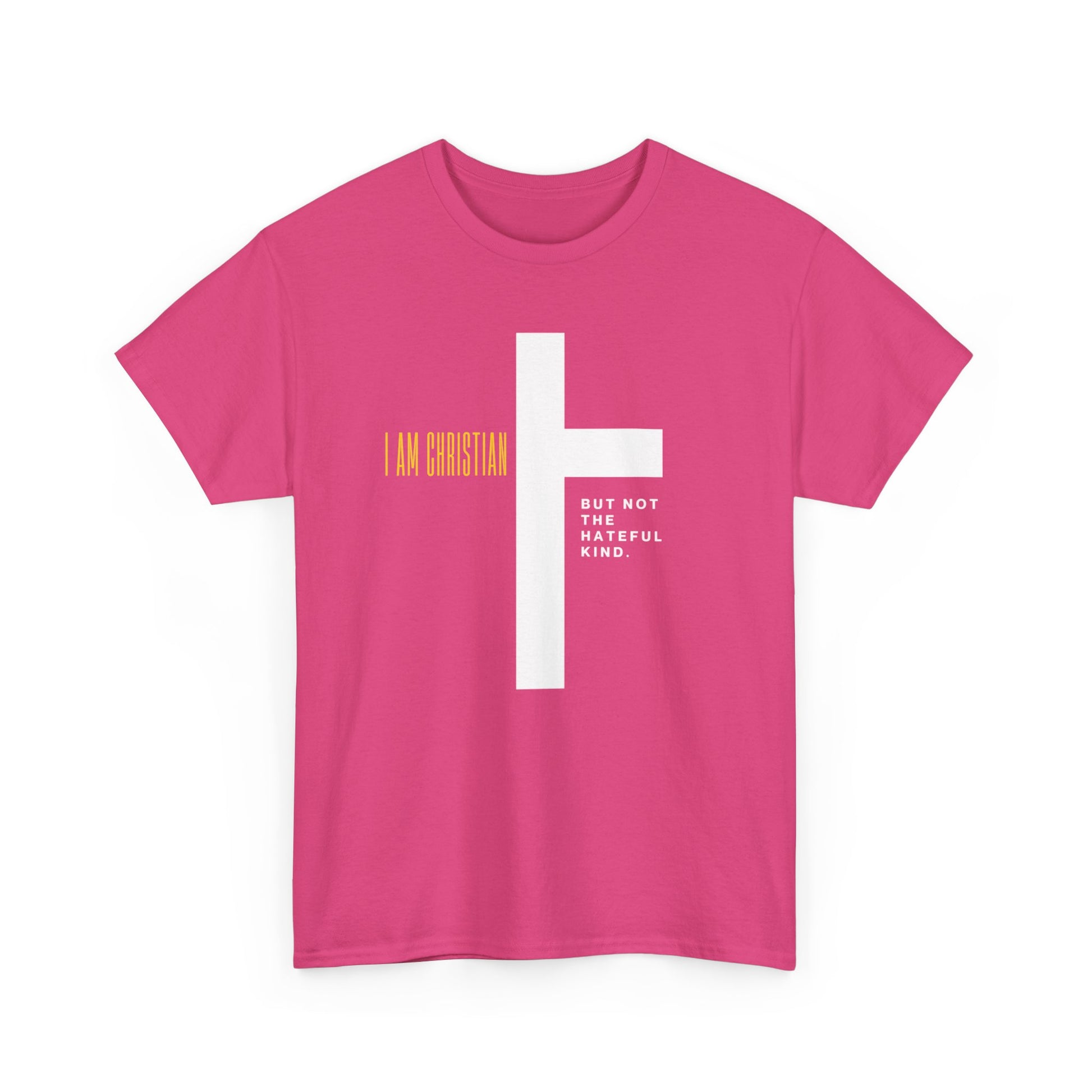Make a bold yet loving statement with the "I Am Christian, But Not the Hateful Kind" T-shirt. This design is for those who stand strong in their faith while embracing acceptance, compassion, and love for all. It reflects a belief that the Christian faith isn't about exclusion or judgment but about following Christ's example of unconditional love and kindness. Crafted from soft, comfortable fabric, this shirt is perfect for anyone who wants to share a message of unity, understanding, and grace. Wear it proudly and show that your faith is rooted in love and acceptance for everyone.