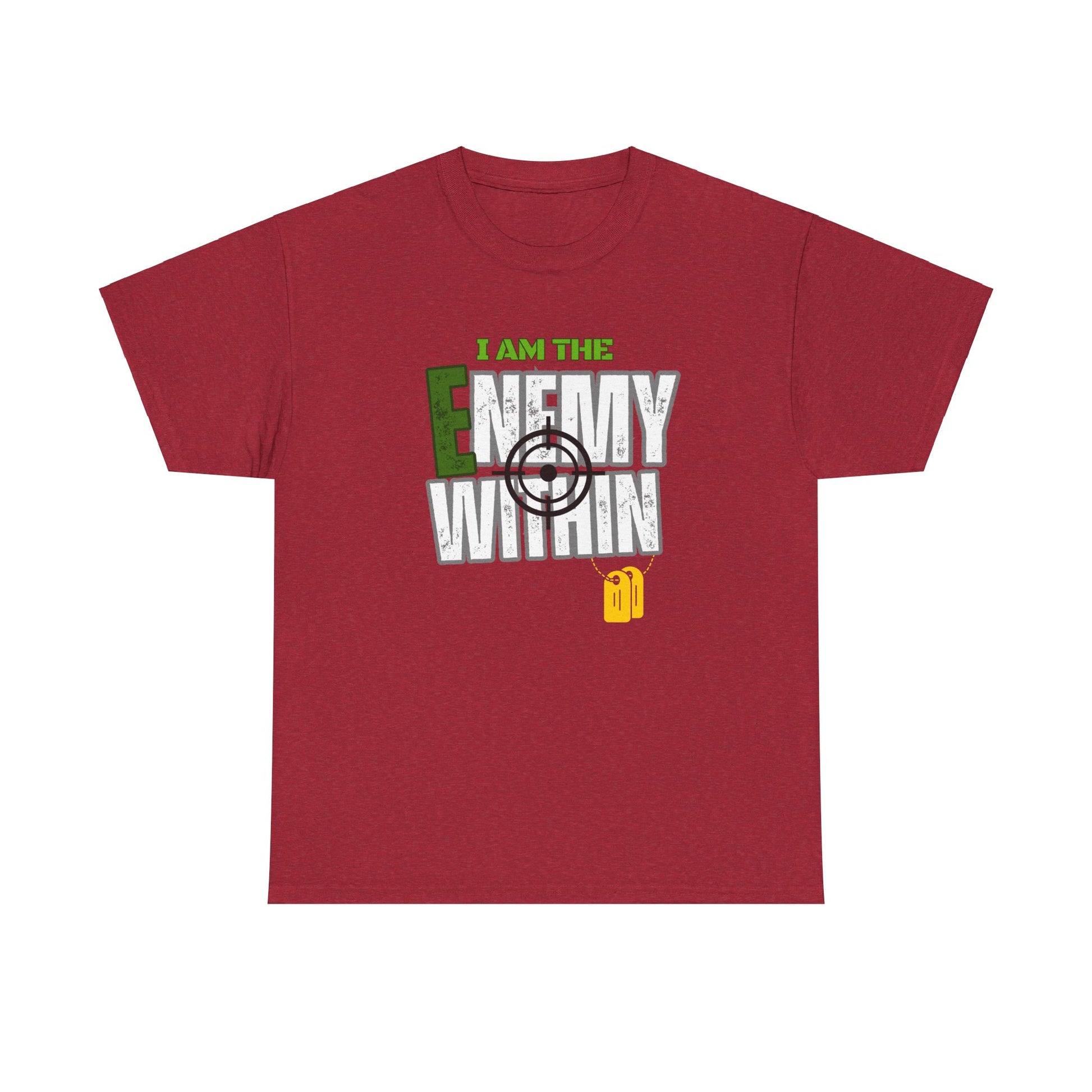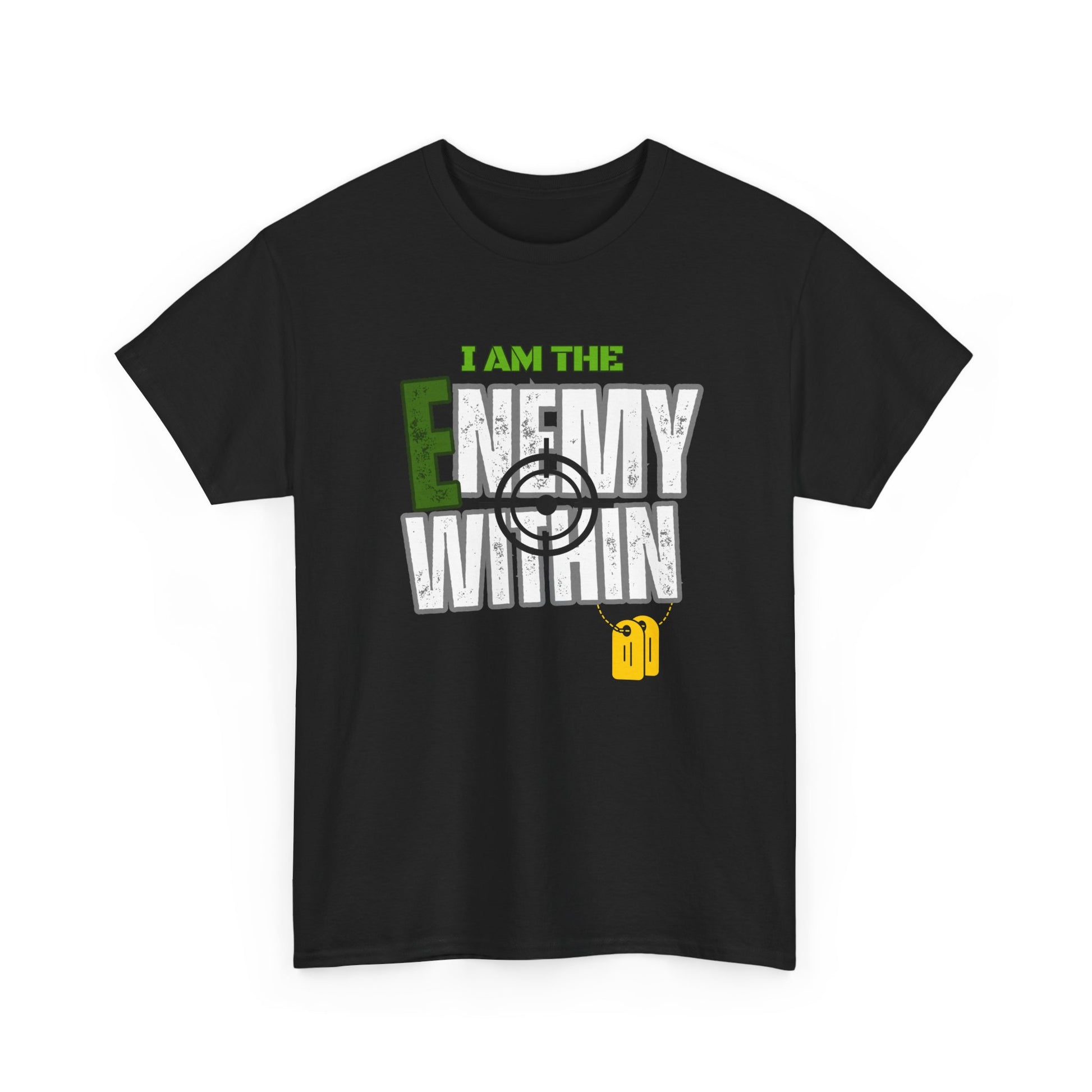 Stand up against divisive rhetoric with this bold statement tee. Featuring the powerful quote "I Am the Enemy Within," this shirt is a direct protest against the inflammatory language used by former President Trump. This design reclaims the phrase as a symbol of resistance, unity, and defiance against hate. Made from soft, breathable cotton, this T-shirt ensures all-day comfort while you make your voice heard. Wear it proudly to show that you won't be silenced by fear-mongering and will stand up for what’s right. Available in multiple sizes and colors, it's time to wear your stance on your sleeve.