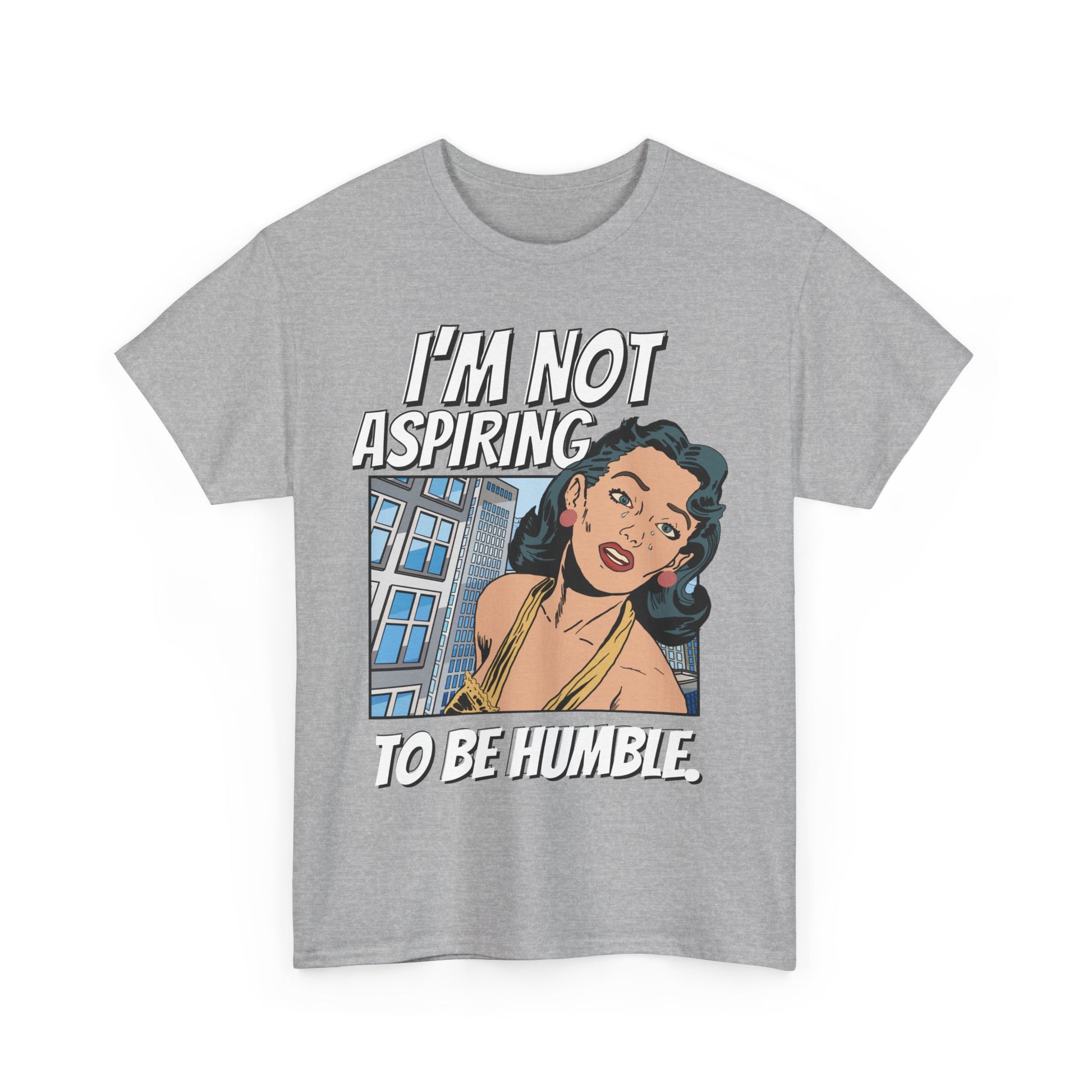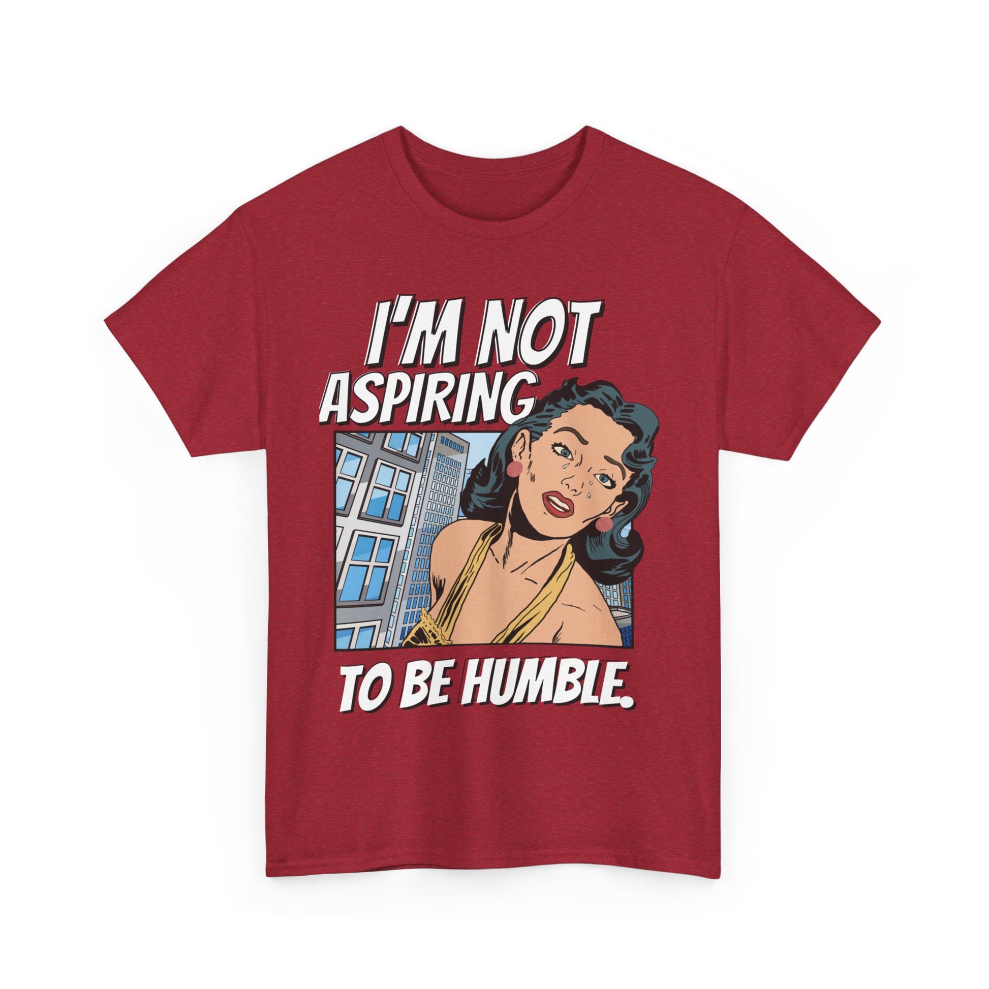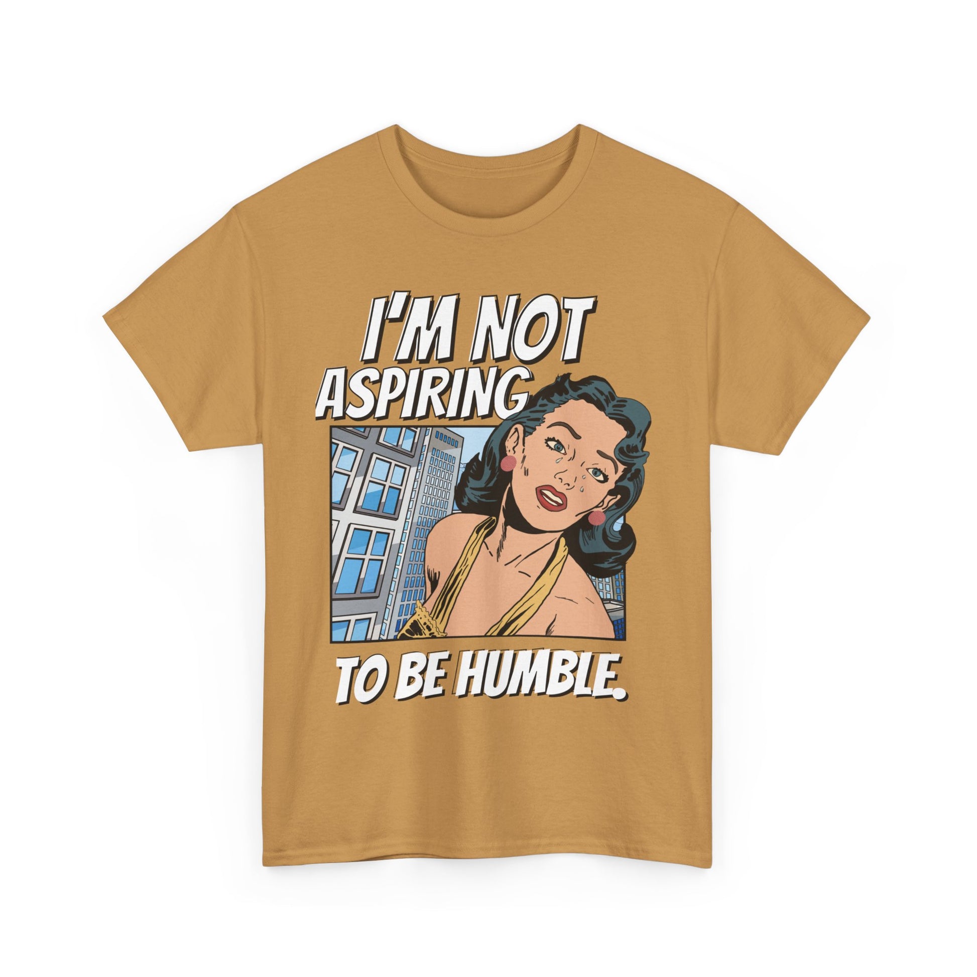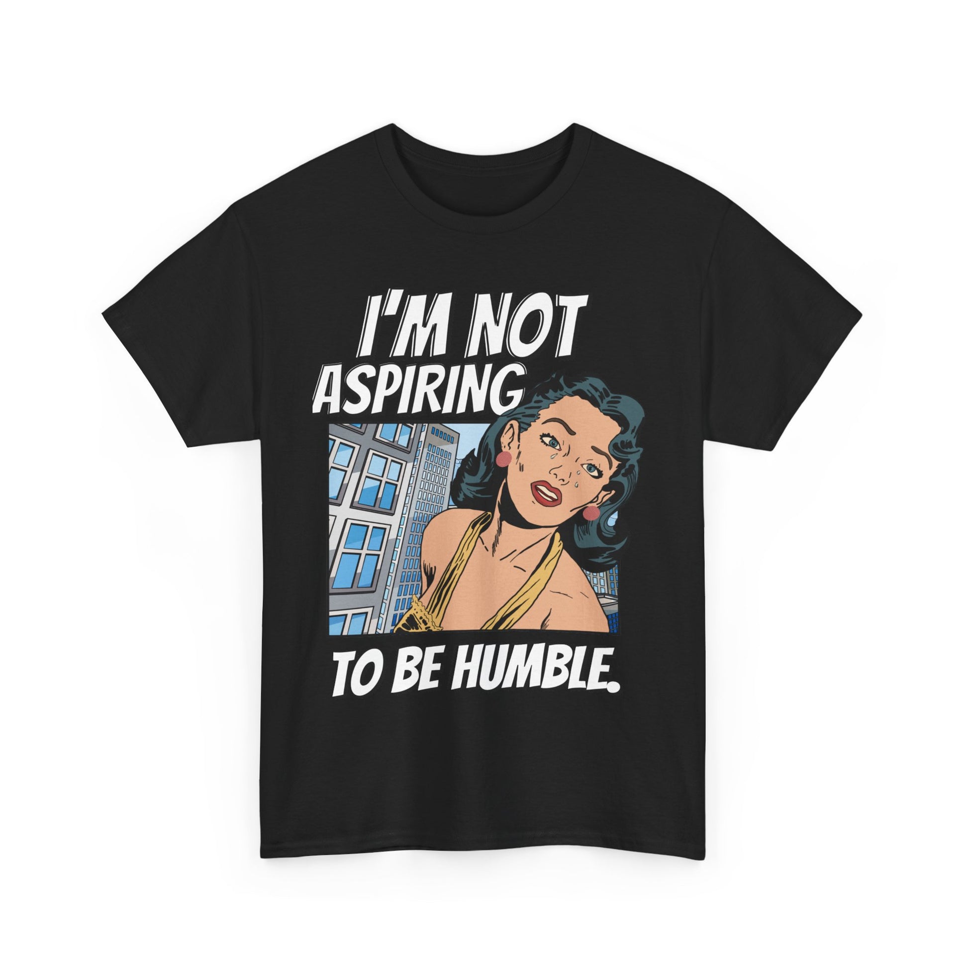 This T-shirt features a bold quote that says 'I am not aspiring to be humble,' making a strong statement for women fighting for equal rights. It is a middle finger to those stuck in the past, exuding confidence and empowerment. Perfect for those who stand up for their beliefs and values, this tee is relevant for International Women's Day, Women's History Month, and feminist gatherings.