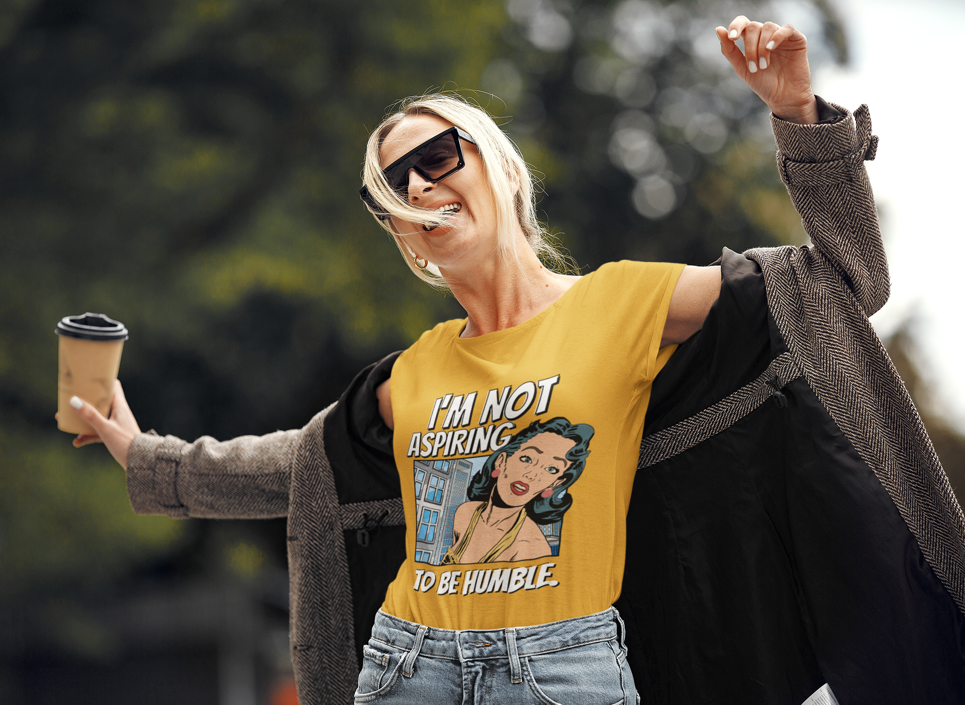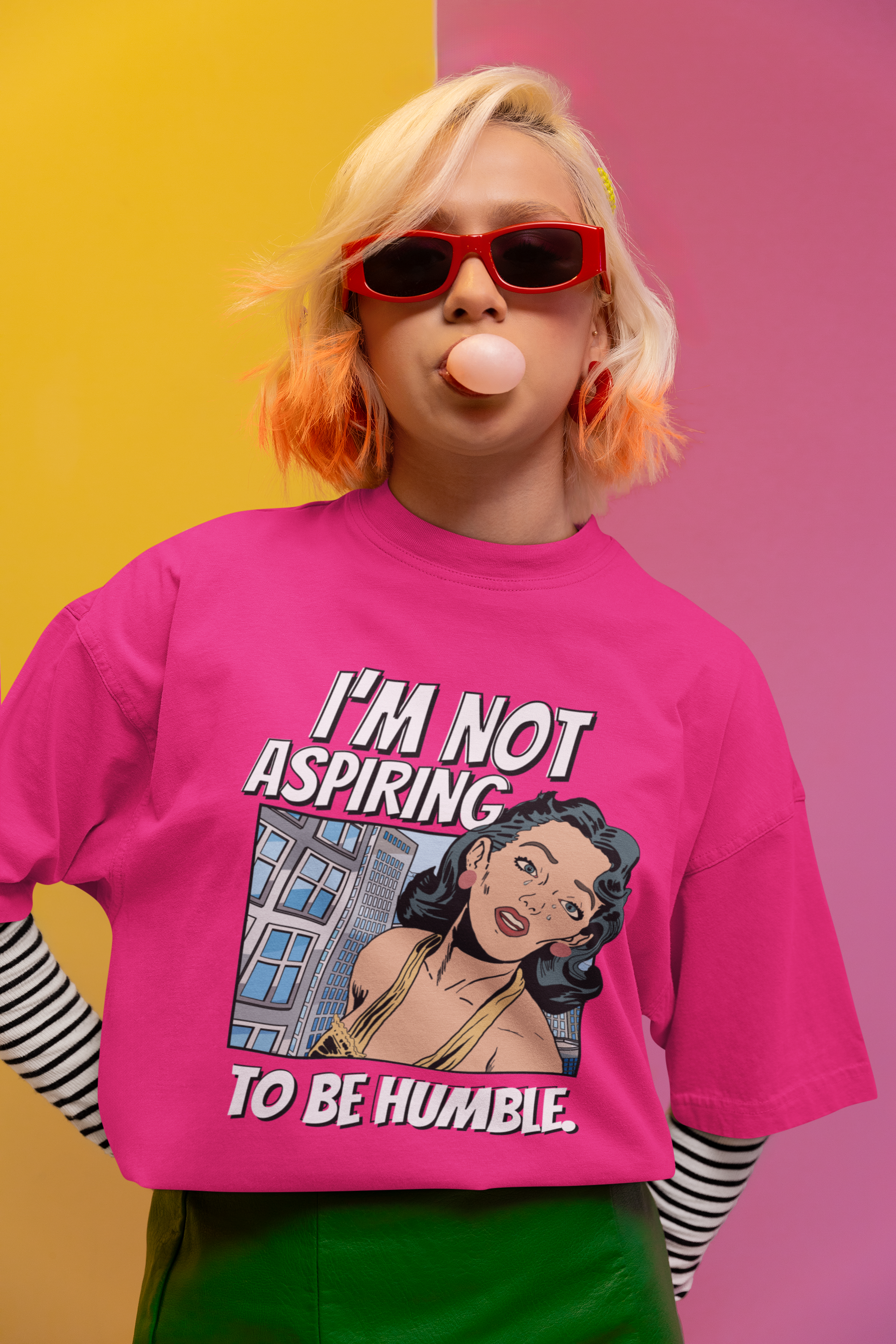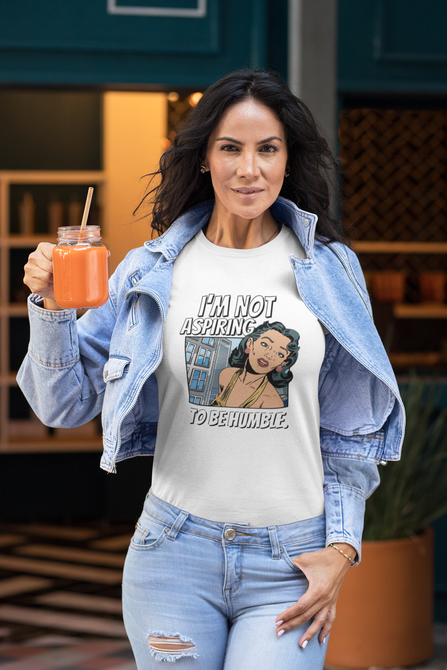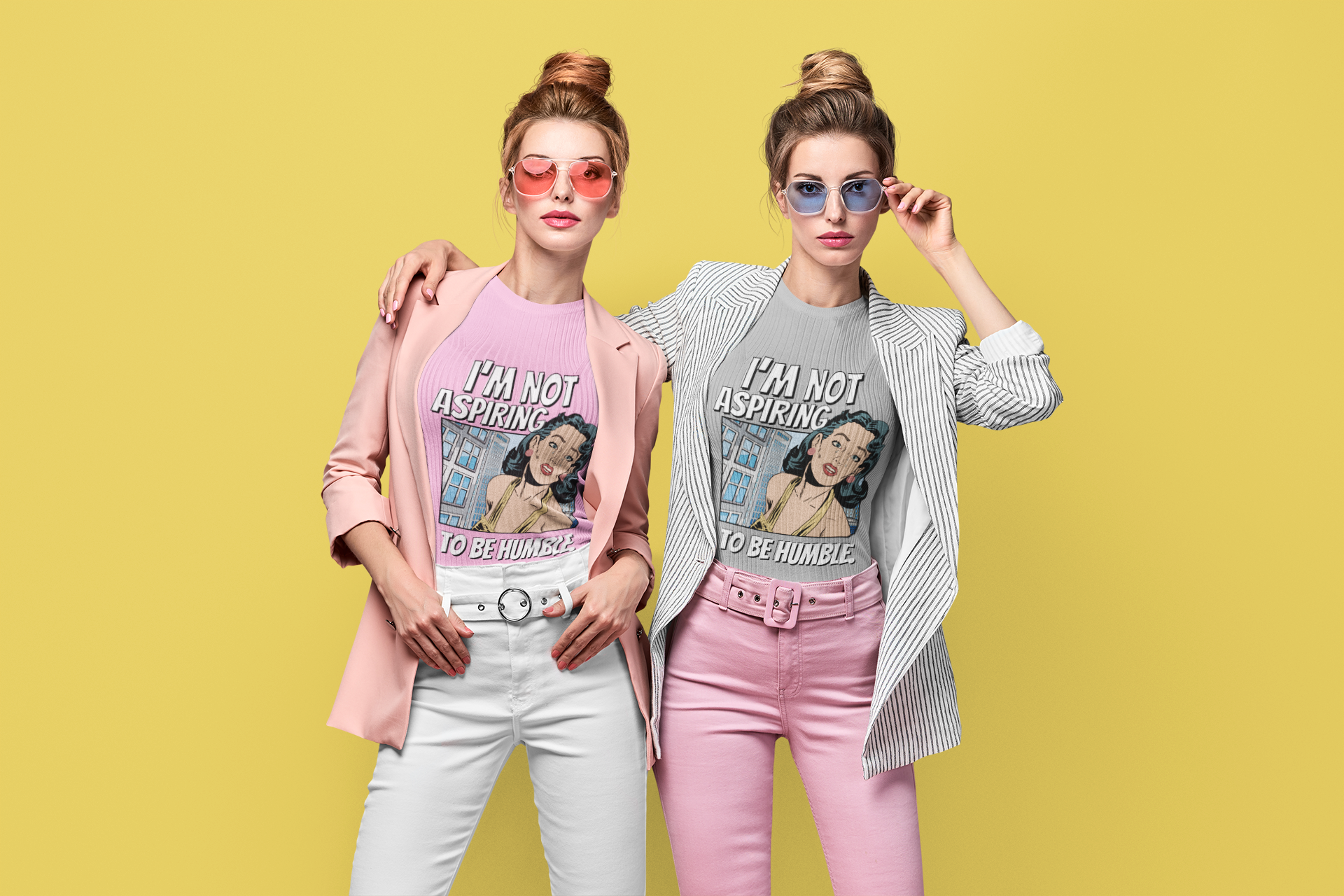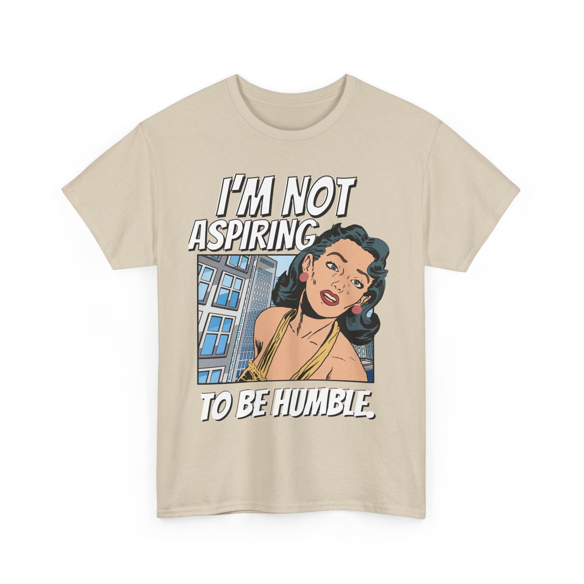 This T-shirt features a bold quote that says 'I am not aspiring to be humble,' making a strong statement for women fighting for equal rights. It is a middle finger to those stuck in the past, exuding confidence and empowerment. Perfect for those who stand up for their beliefs and values, this tee is relevant for International Women's Day, Women's History Month, and feminist gatherings.