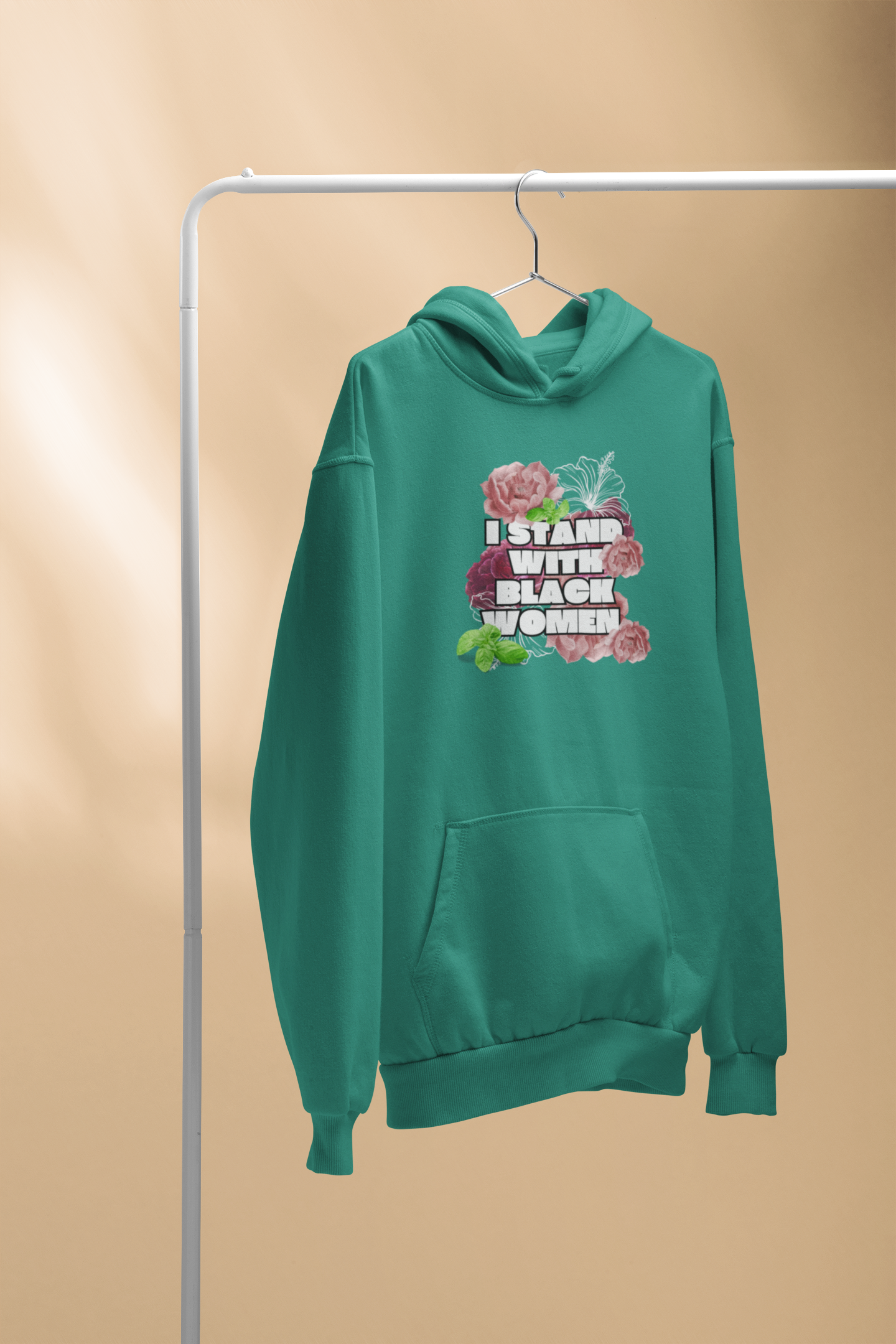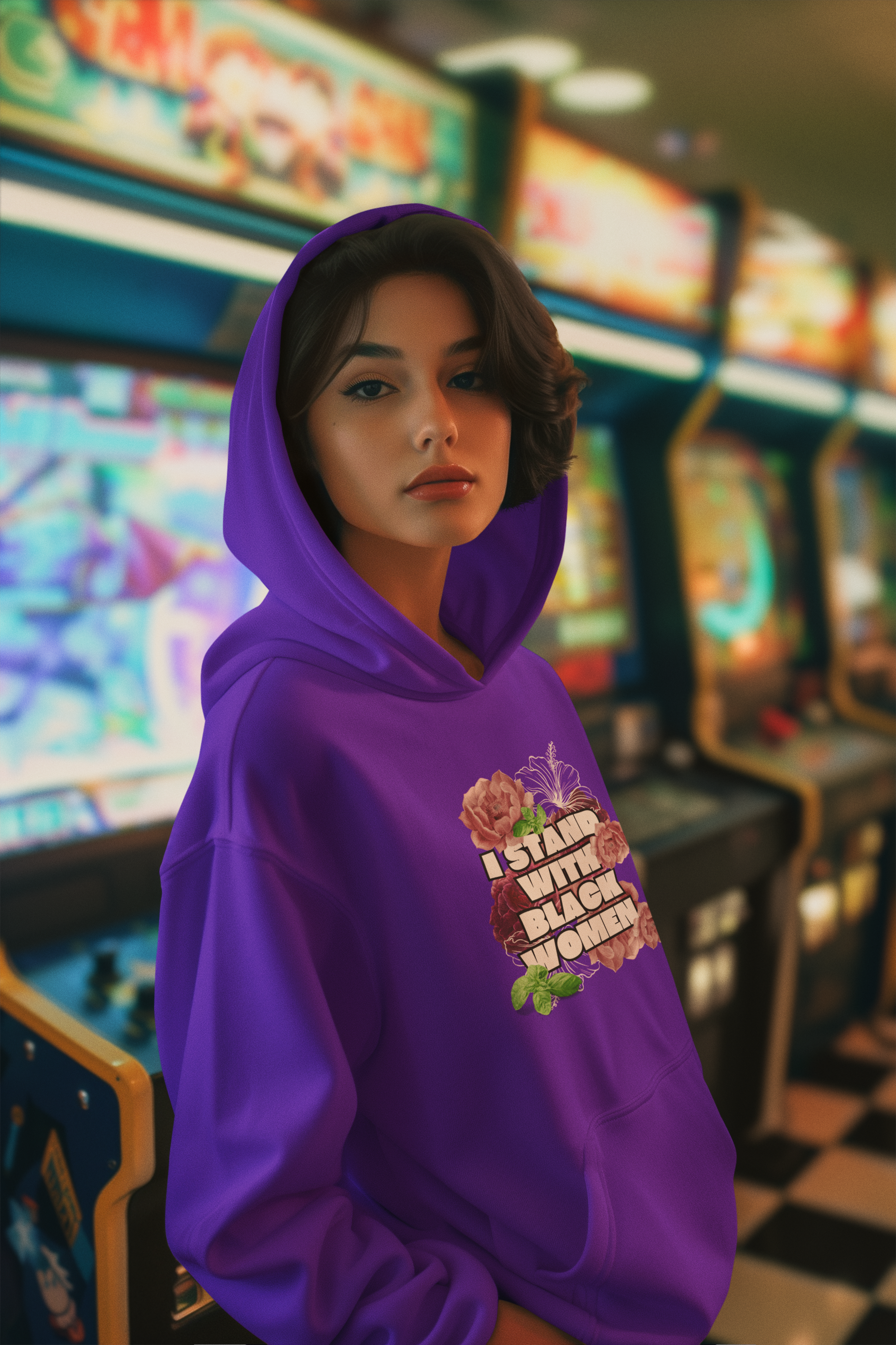 Stand in solidarity with Black women—the heart and backbone of our communities—with this impactful hoodie. Featuring exclusive artwork by a Black artist, this custom design honors the strength, resilience, and contributions of Black women who have shaped history and continue to inspire. "I Stand with Black Women" is more than just a statement; it’s a pledge of support and an expression of gratitude for the often-overlooked voices that uplift society. Wear this hoodie with pride to amplify a message of unity, empowerment, and unwavering support.