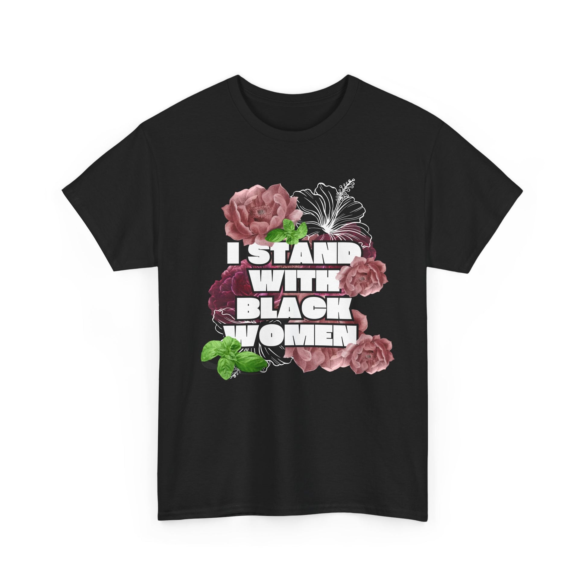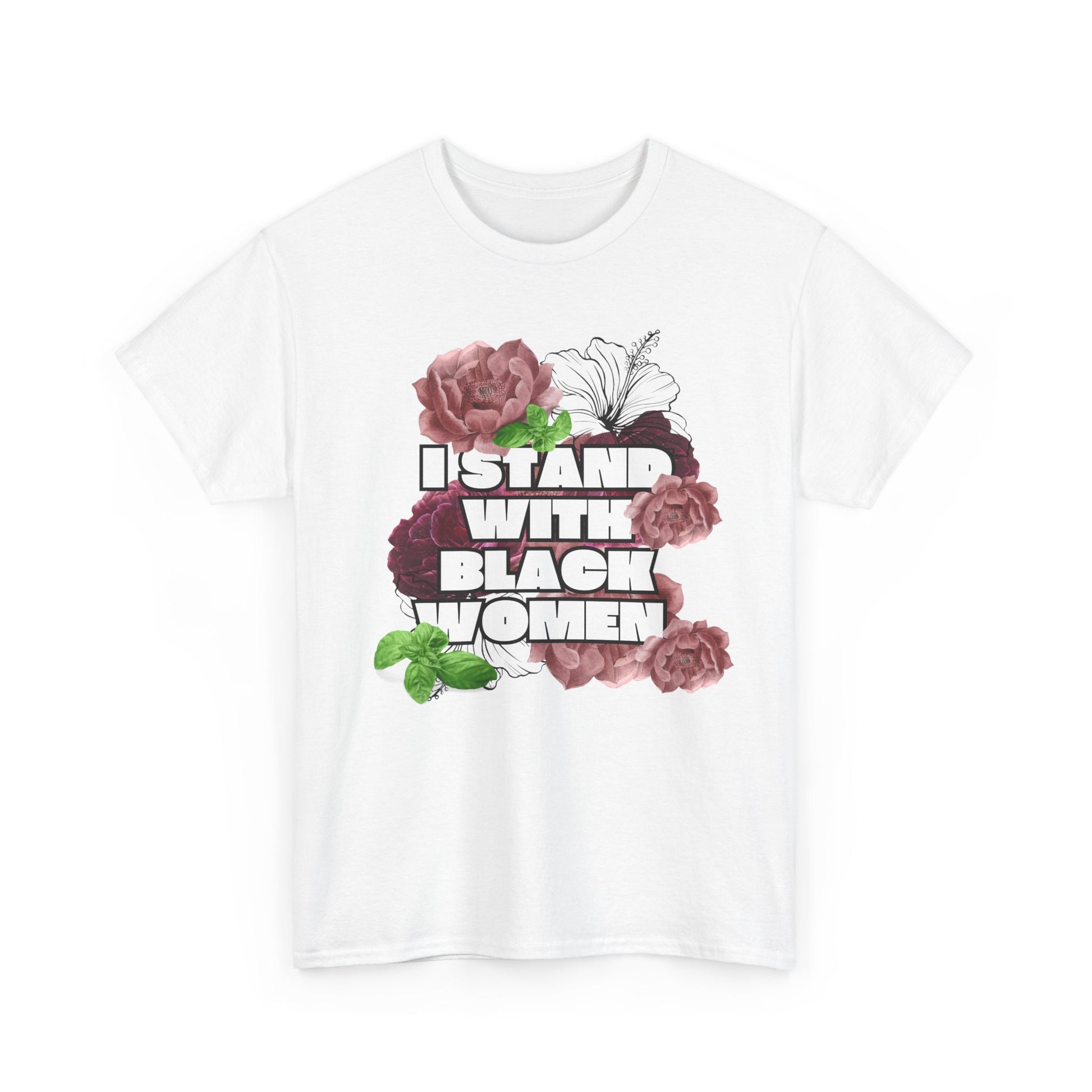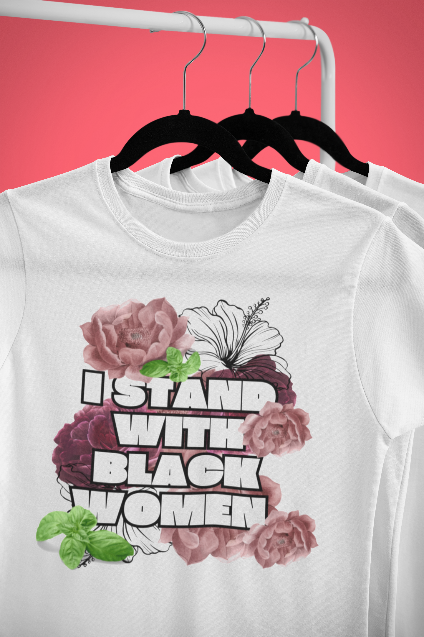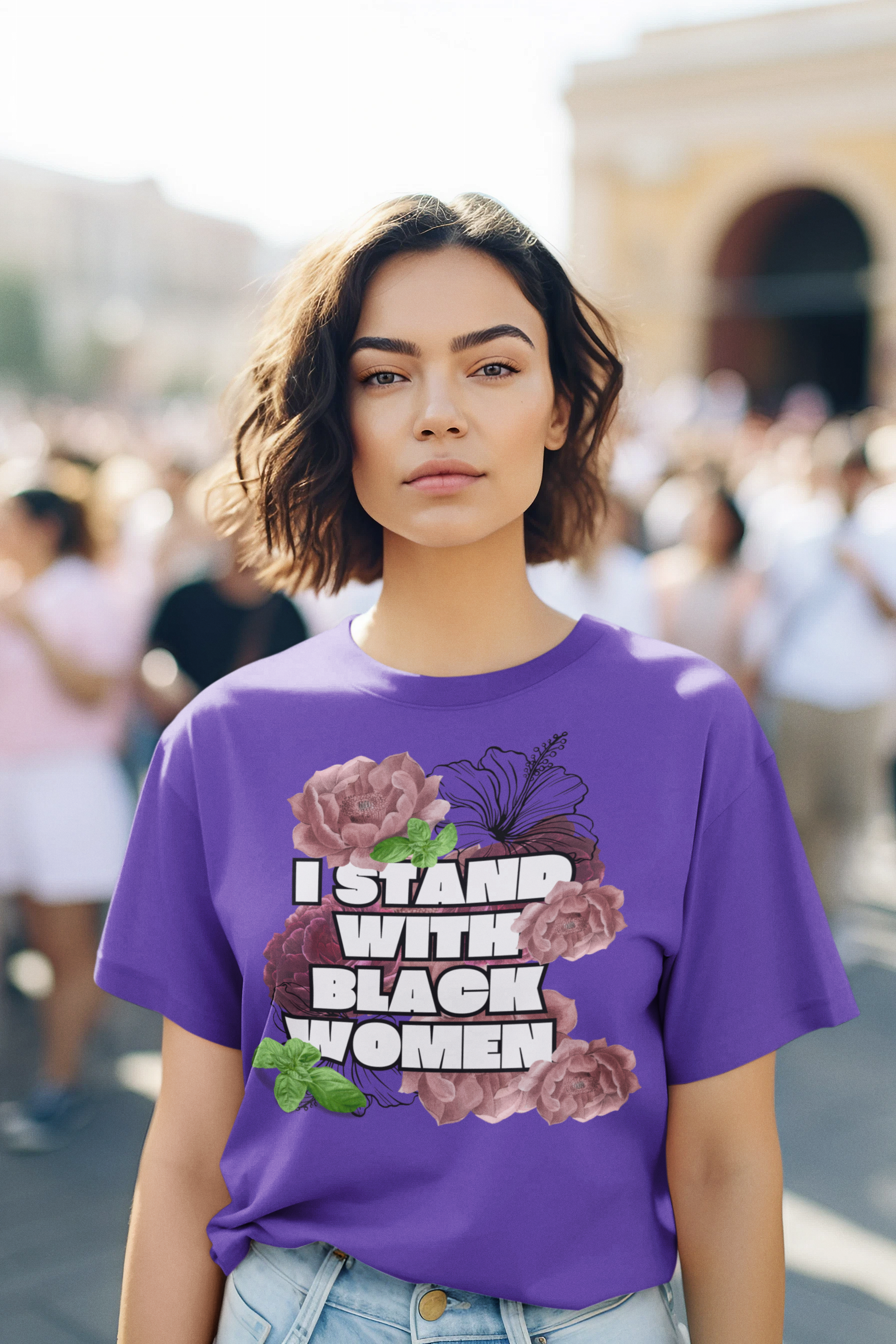 Stand in solidarity with Black women, the heart and backbone of our communities, with this powerful tee. Featuring exclusive artwork by a Black artist, this custom design honors the strength, resilience, and contributions of Black women who have shaped history and continue to inspire. "I Stand with Black Women" is more than a statement—it's a pledge of support and an expression of gratitude for the often-overlooked voices that uplift society. Wear it with pride and help amplify the message of unity and empowerment.