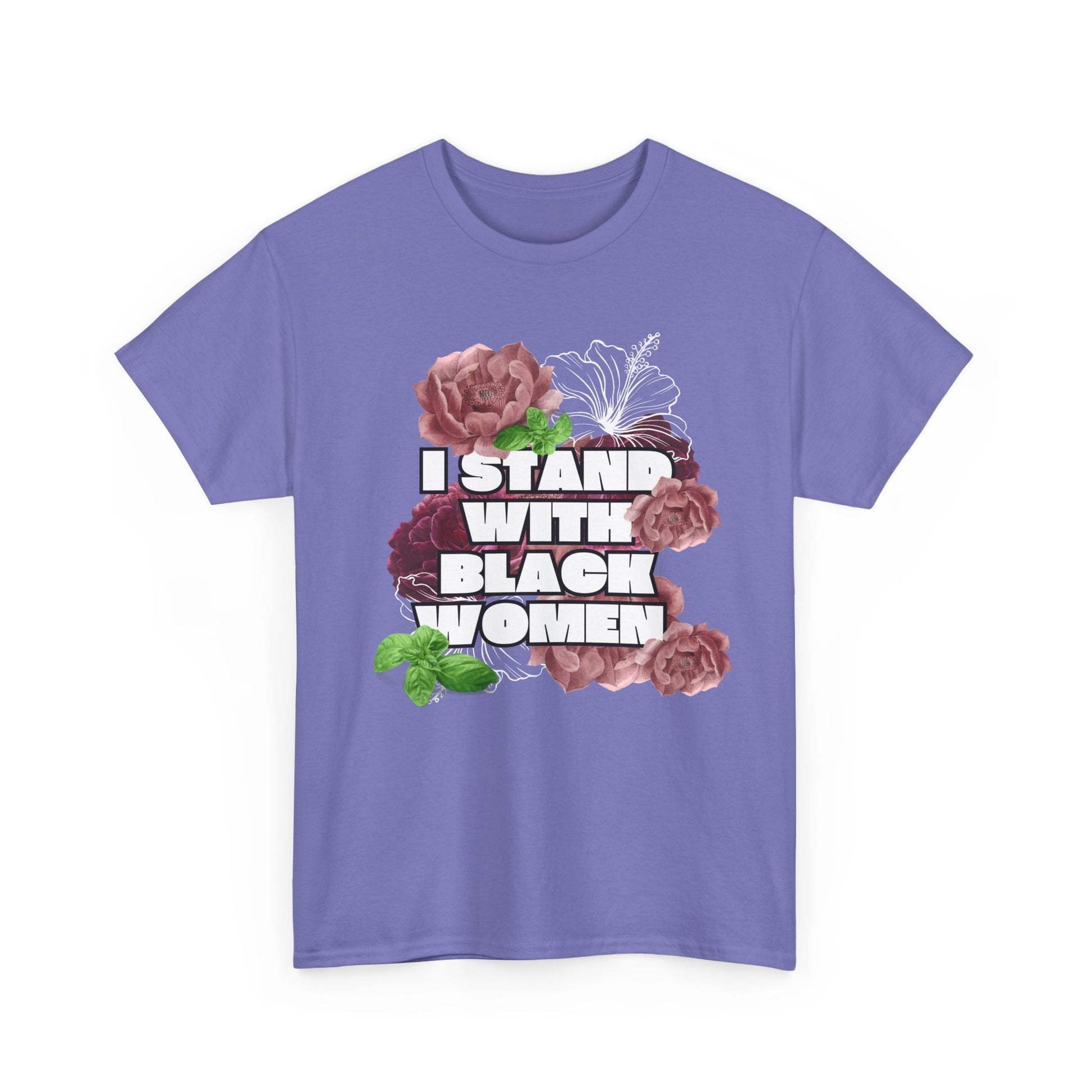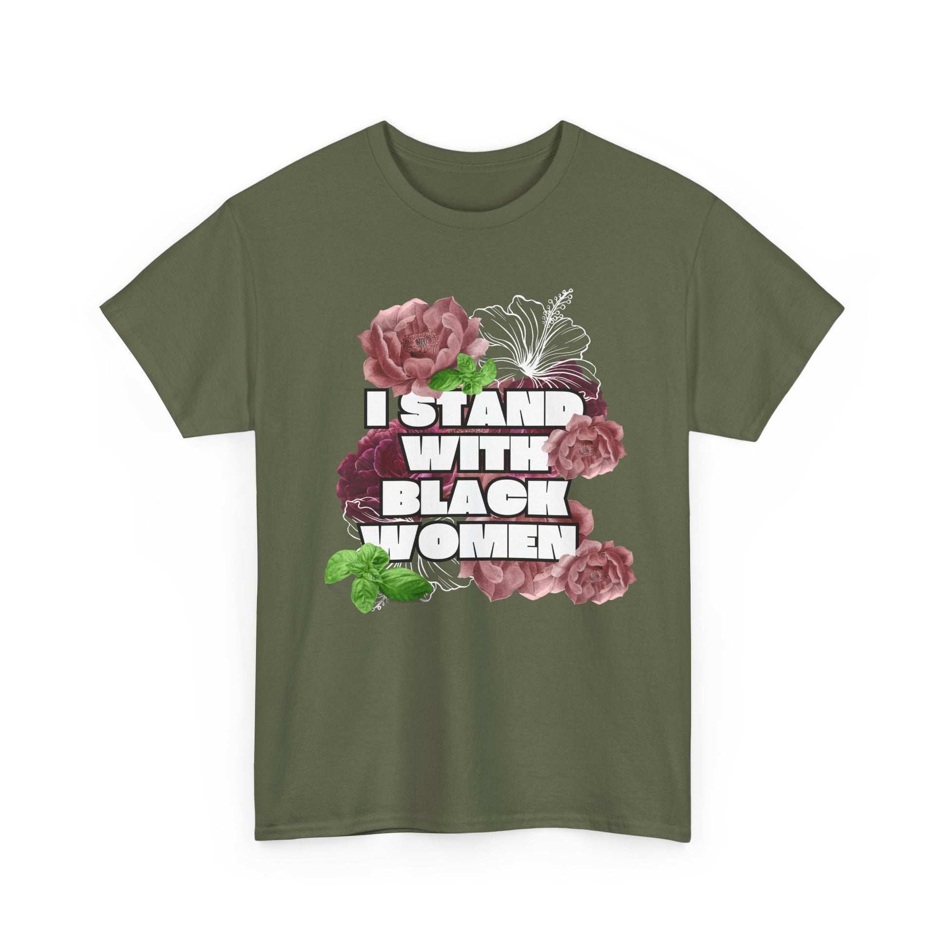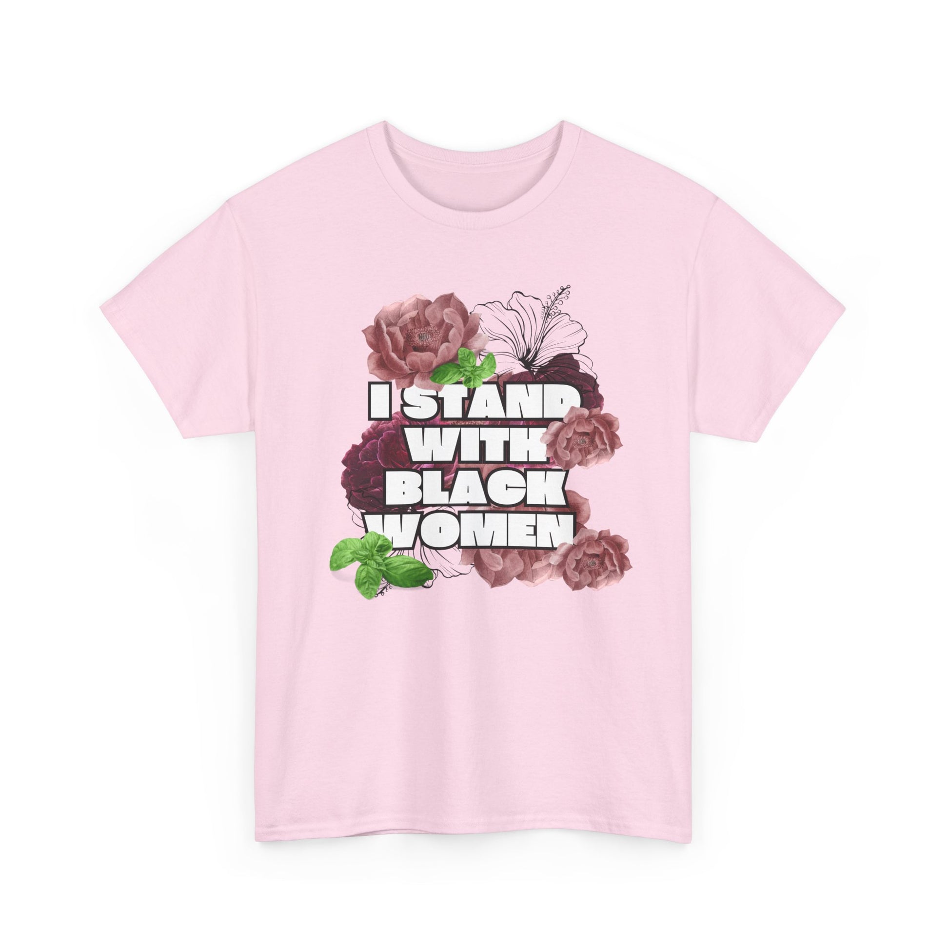 Stand in solidarity with Black women, the heart and backbone of our communities, with this powerful tee. Featuring exclusive artwork by a Black artist, this custom design honors the strength, resilience, and contributions of Black women who have shaped history and continue to inspire. "I Stand with Black Women" is more than a statement—it's a pledge of support and an expression of gratitude for the often-overlooked voices that uplift society. Wear it with pride and help amplify the message of unity and empowerment.