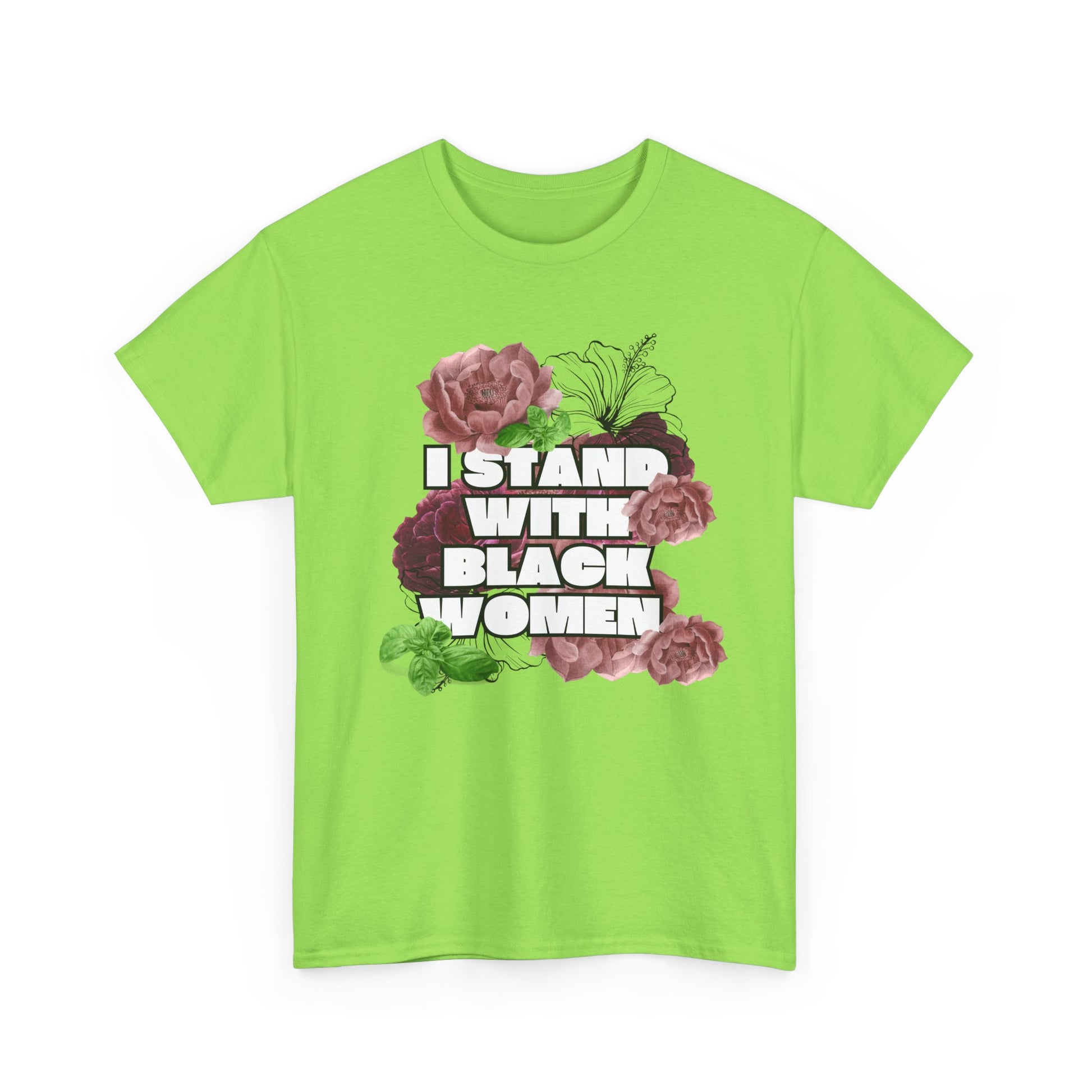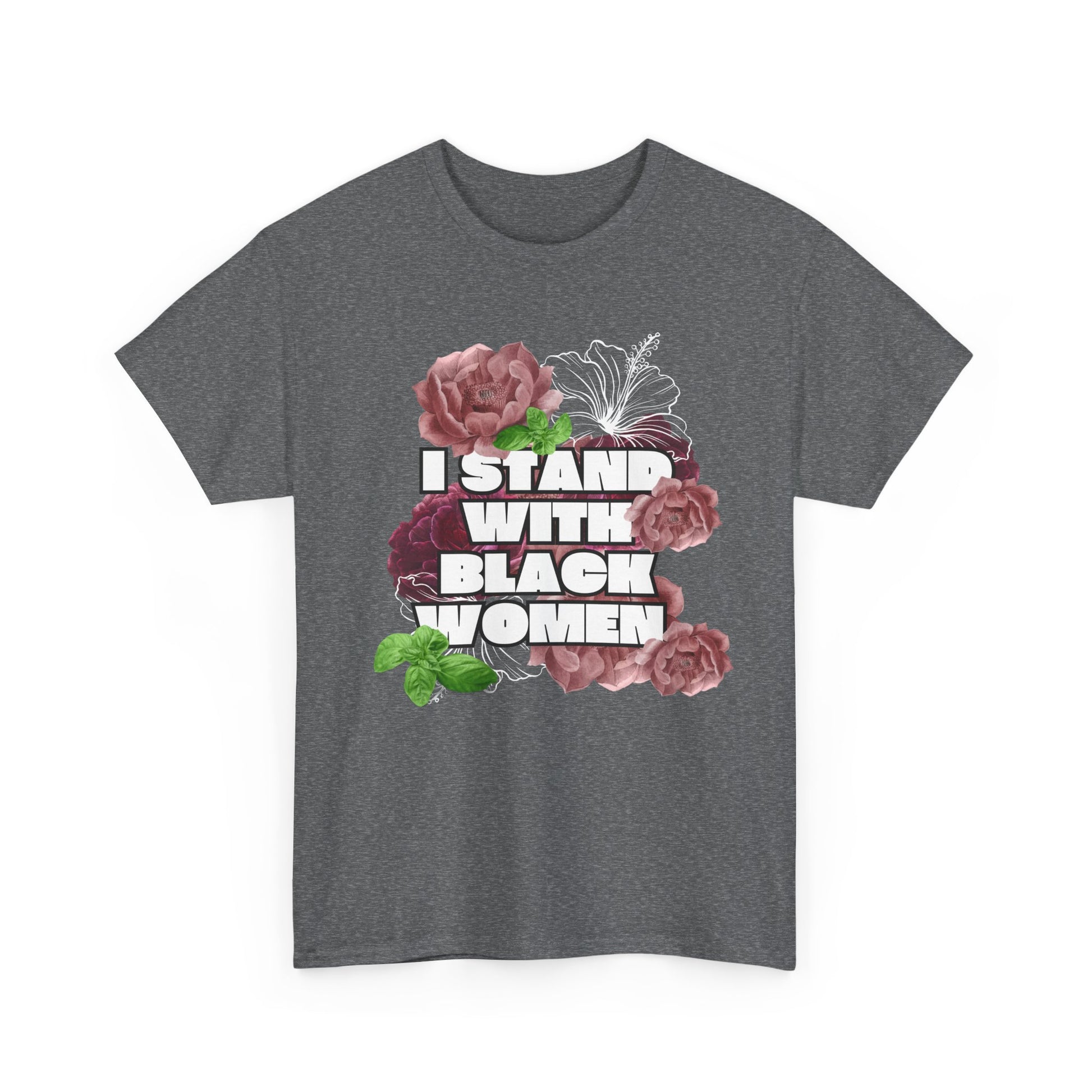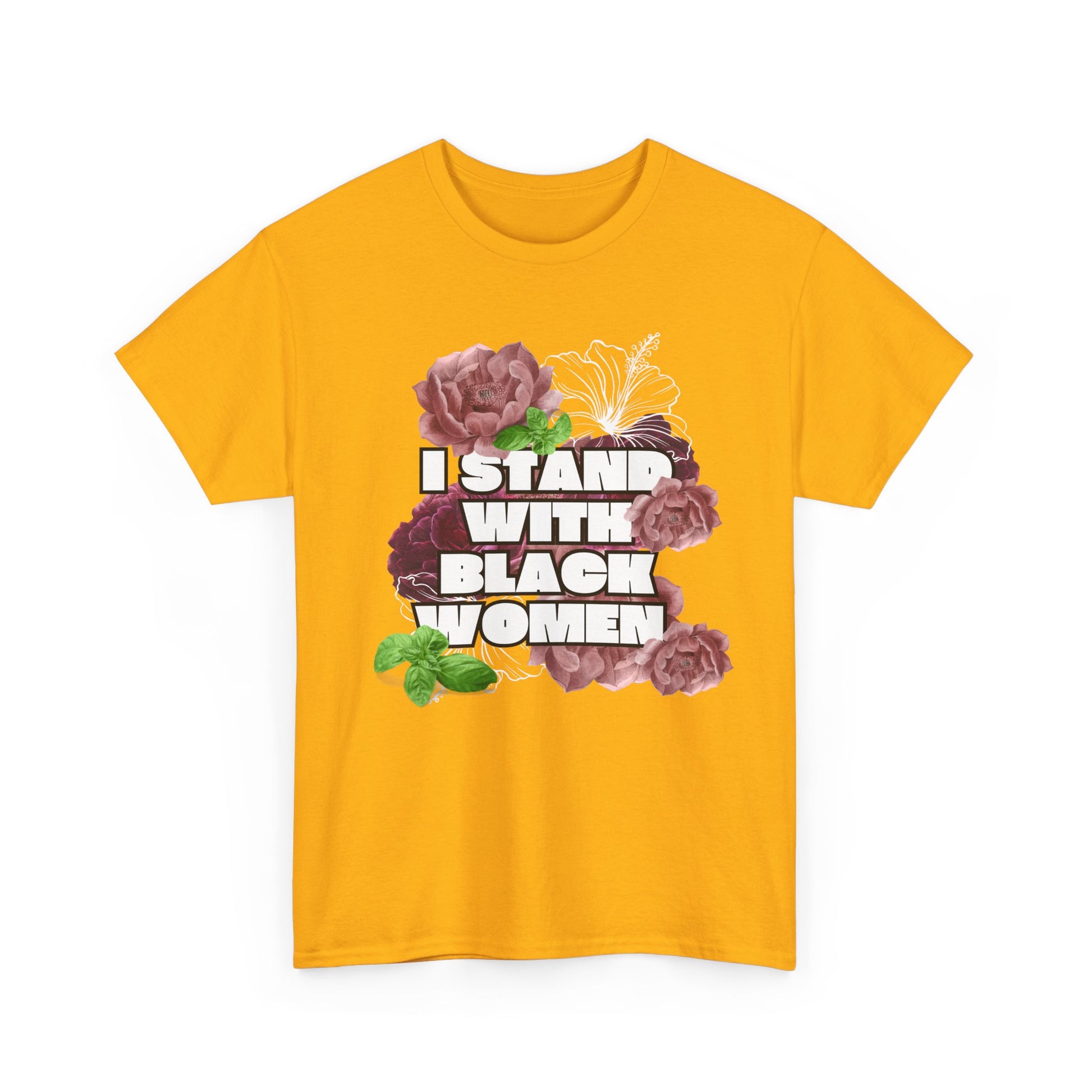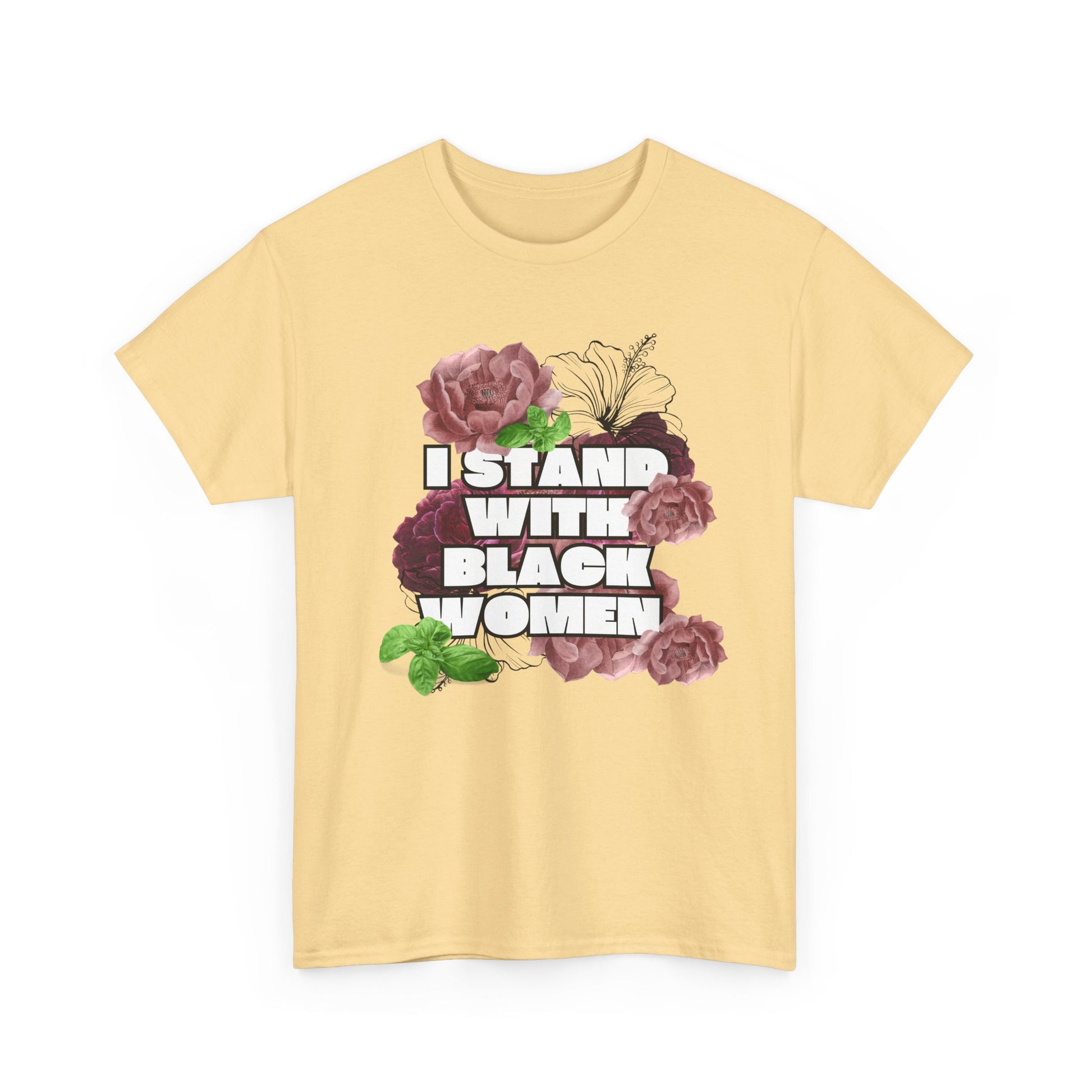 Stand in solidarity with Black women, the heart and backbone of our communities, with this powerful tee. Featuring exclusive artwork by a Black artist, this custom design honors the strength, resilience, and contributions of Black women who have shaped history and continue to inspire. "I Stand with Black Women" is more than a statement—it's a pledge of support and an expression of gratitude for the often-overlooked voices that uplift society. Wear it with pride and help amplify the message of unity and empowerment.