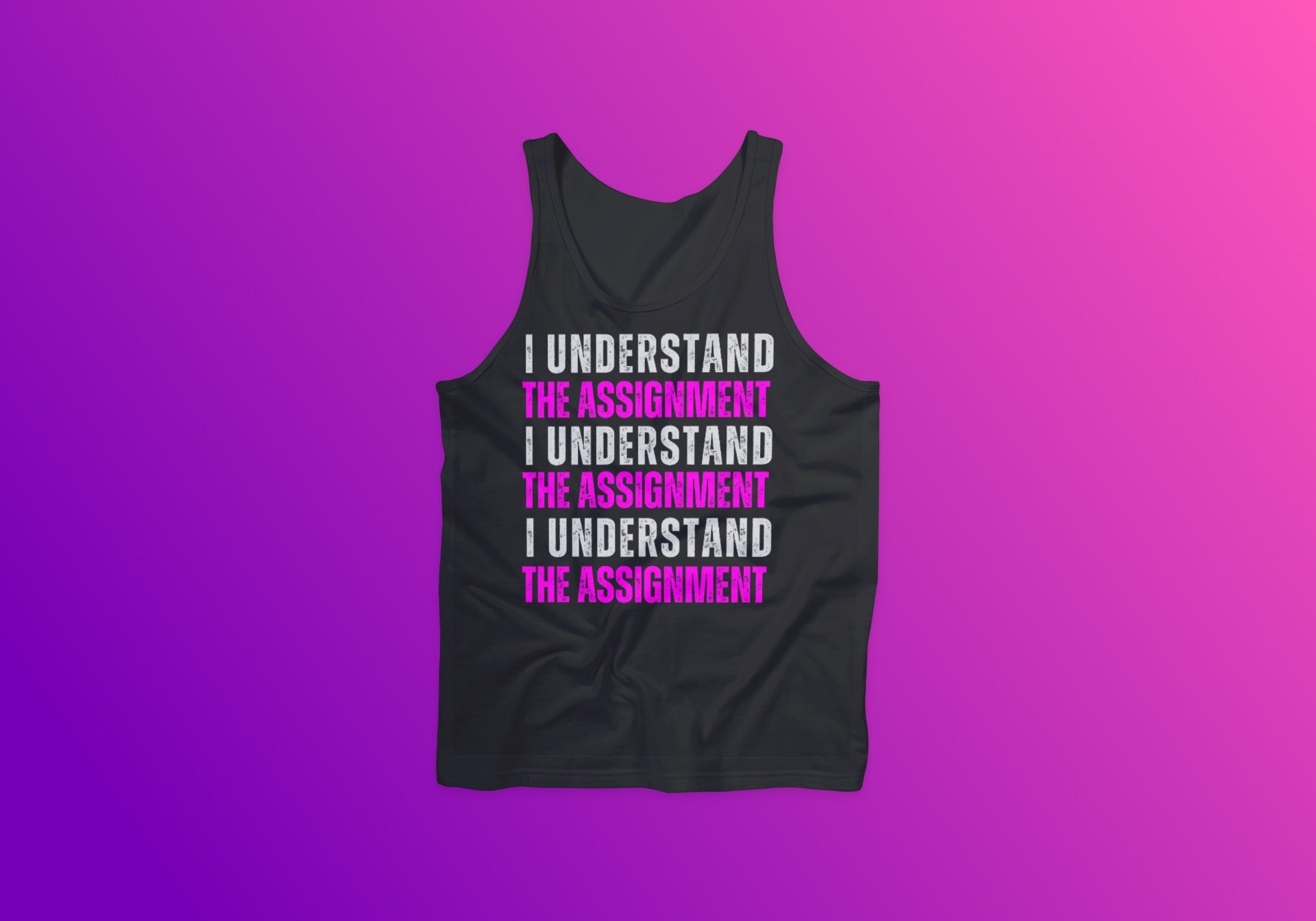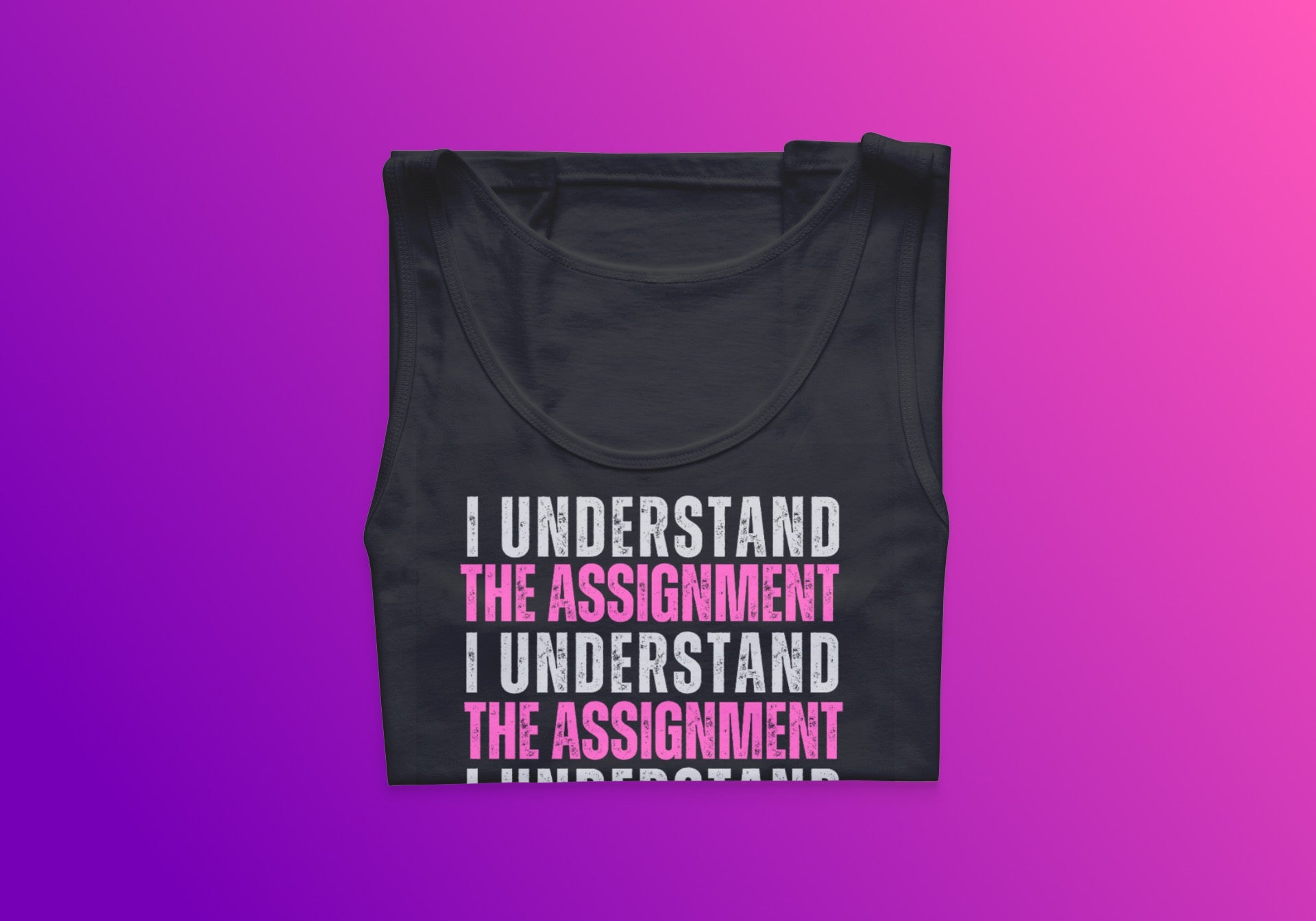 Show up for our rights and stand in solidarity with Vice President Harris. Wear your commitment proudly with the "I Understand the Assignment" tank top.