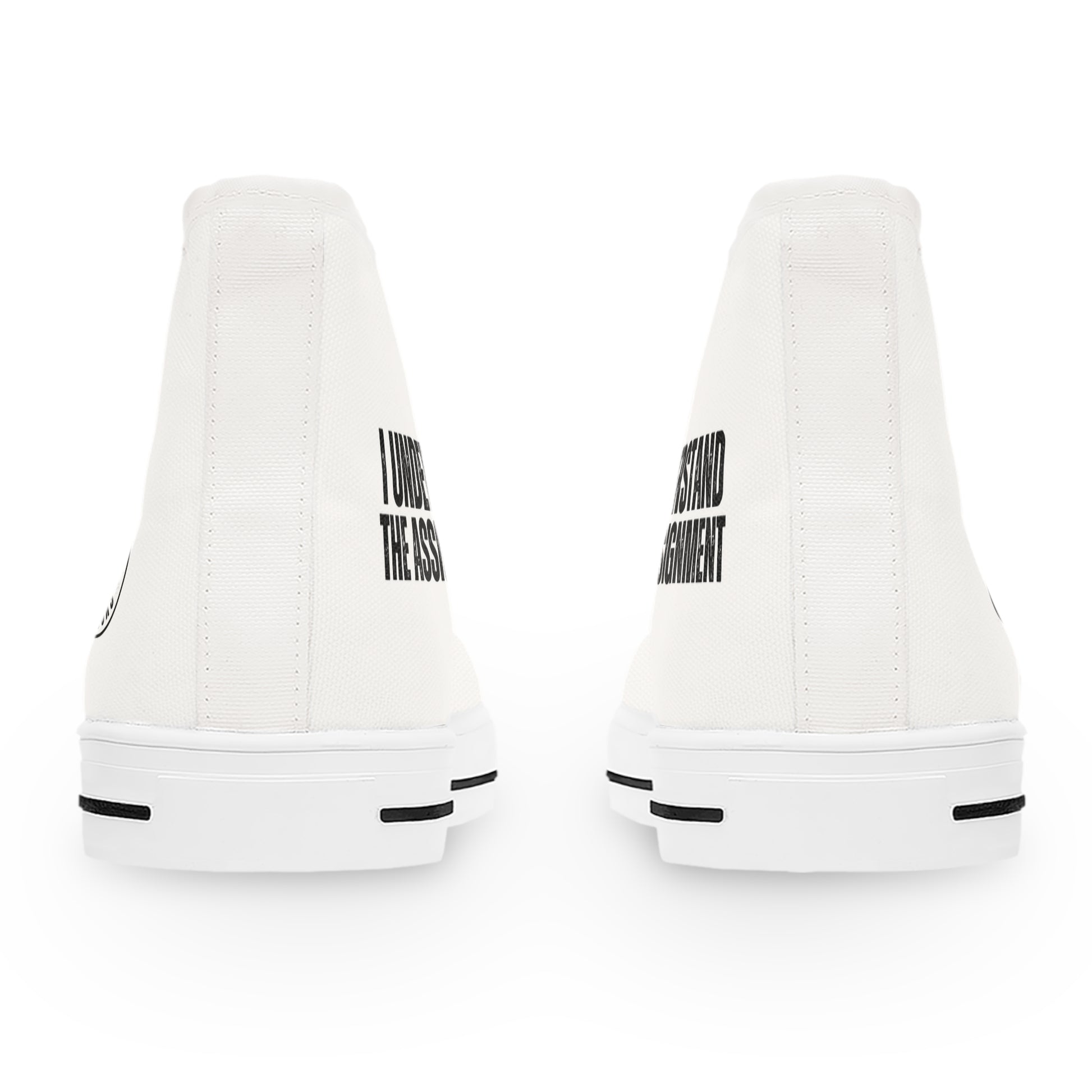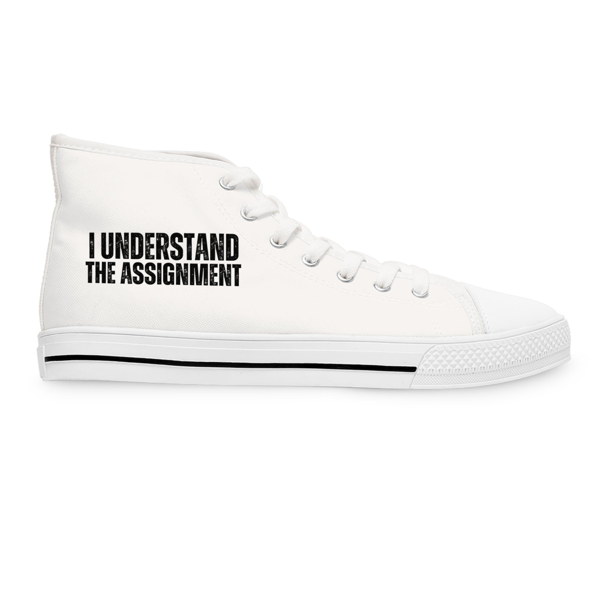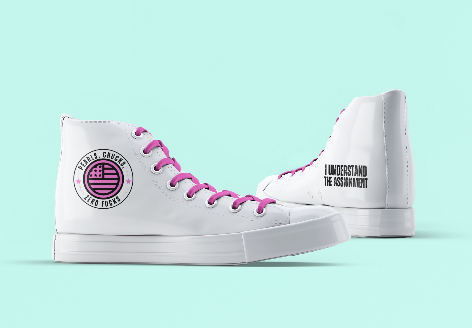 Introducing our exclusive high-top sneakers, designed for those who make bold statements and stand by Vice President Kamala Harris in her 2024 presidential campaign. Inspired by the iconic original, these sneakers offer a more affordable way to support and showcase your style. Adorned with the fierce mantra "Pearls, Chucks, Zero Fucks," and the empowering quote "I understand the assignment," these shoes aren't just footwear—they're a tribute to trailblazing women everywhere.