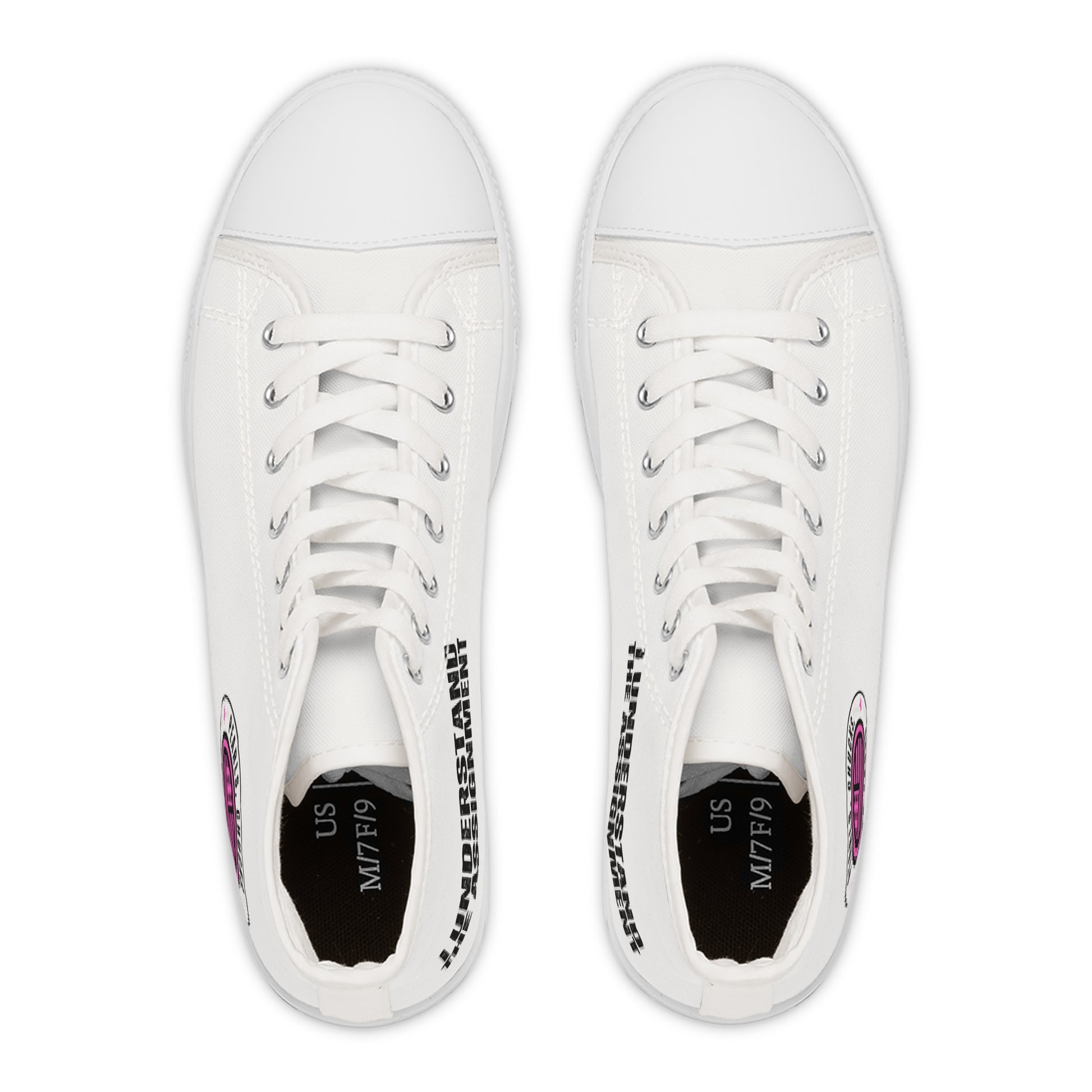 Made with breathable polyester canvas and featuring hi-poly deodorant memory foam insoles, these women's high top sneakers bear all the marks of an awesome shoe. Choose between black or white sole and laces, and enjoy the silver metal eyelets along with the lace-up closure.