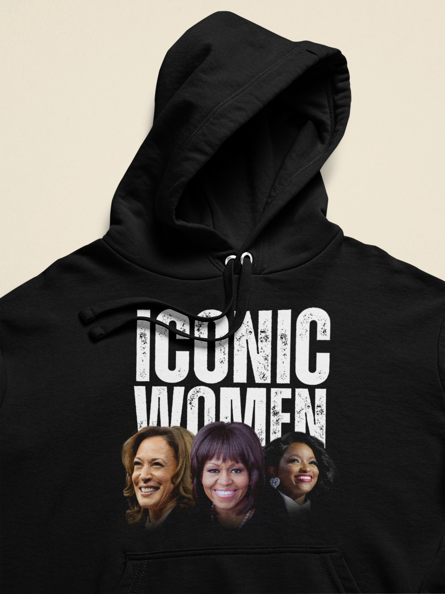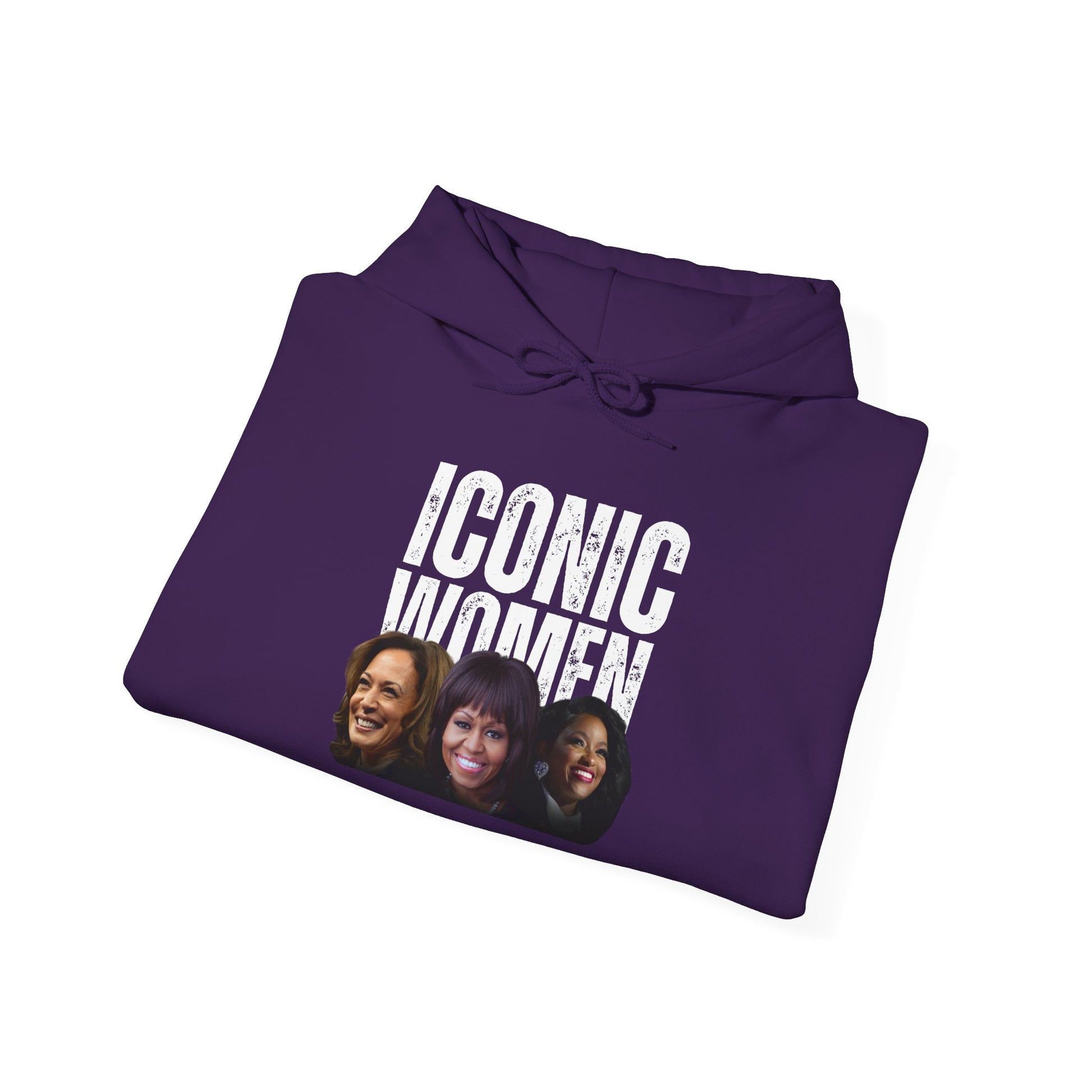 Celebrate the unparalleled power and influence of Black women with the "Iconic Women" Hooded Sweatshirt. Featuring bold, standout text and striking custom artwork, this sweatshirt highlights three trailblazing leaders: Vice President Kamala Harris, Former First Lady Michelle Obama, and Congresswoman Jasmine Crockett.