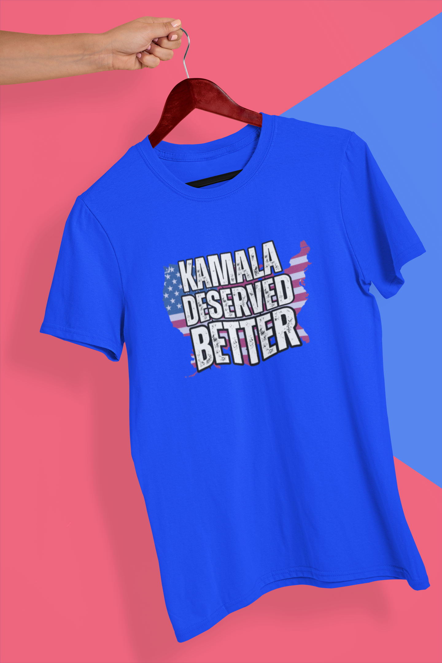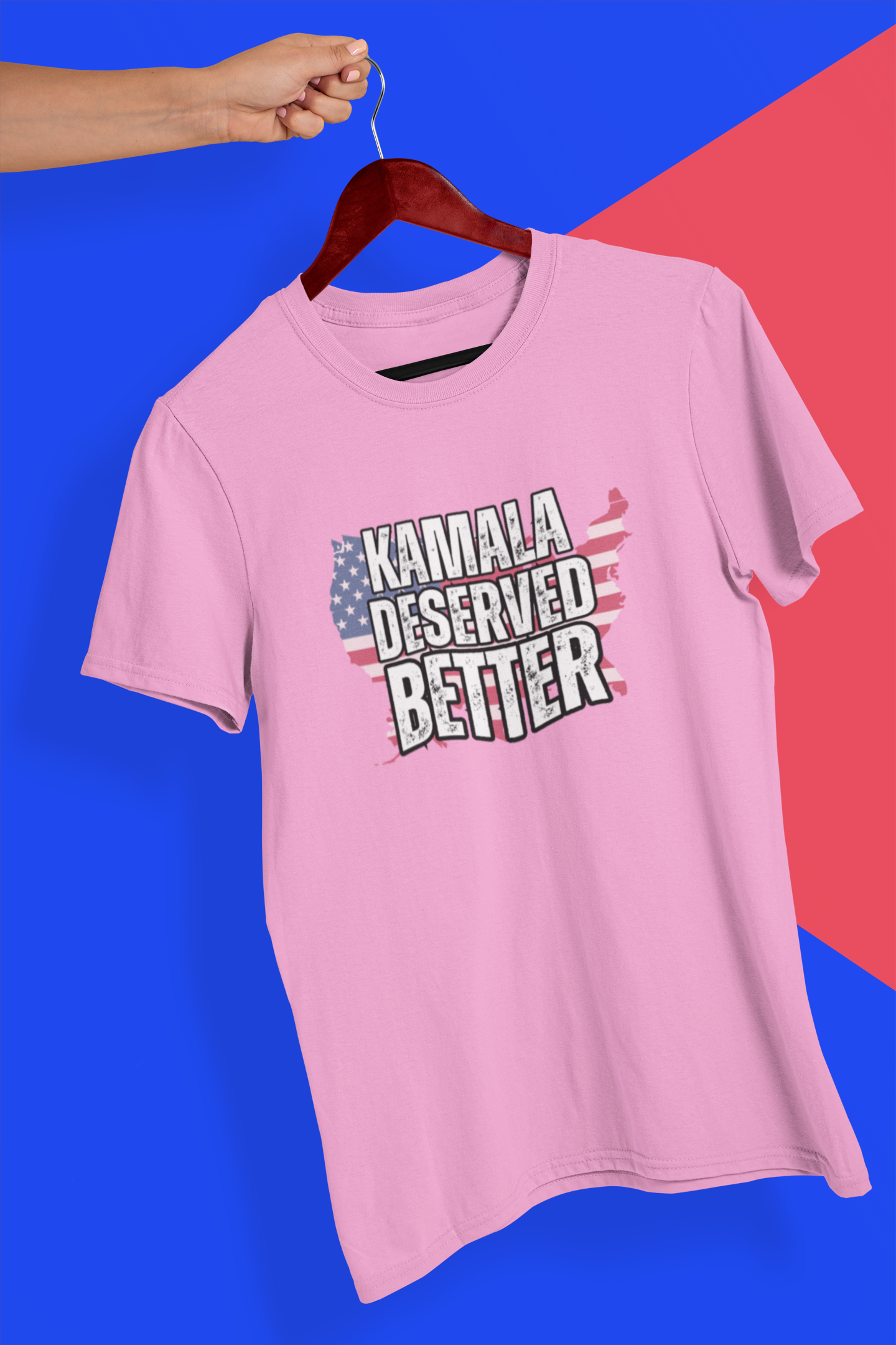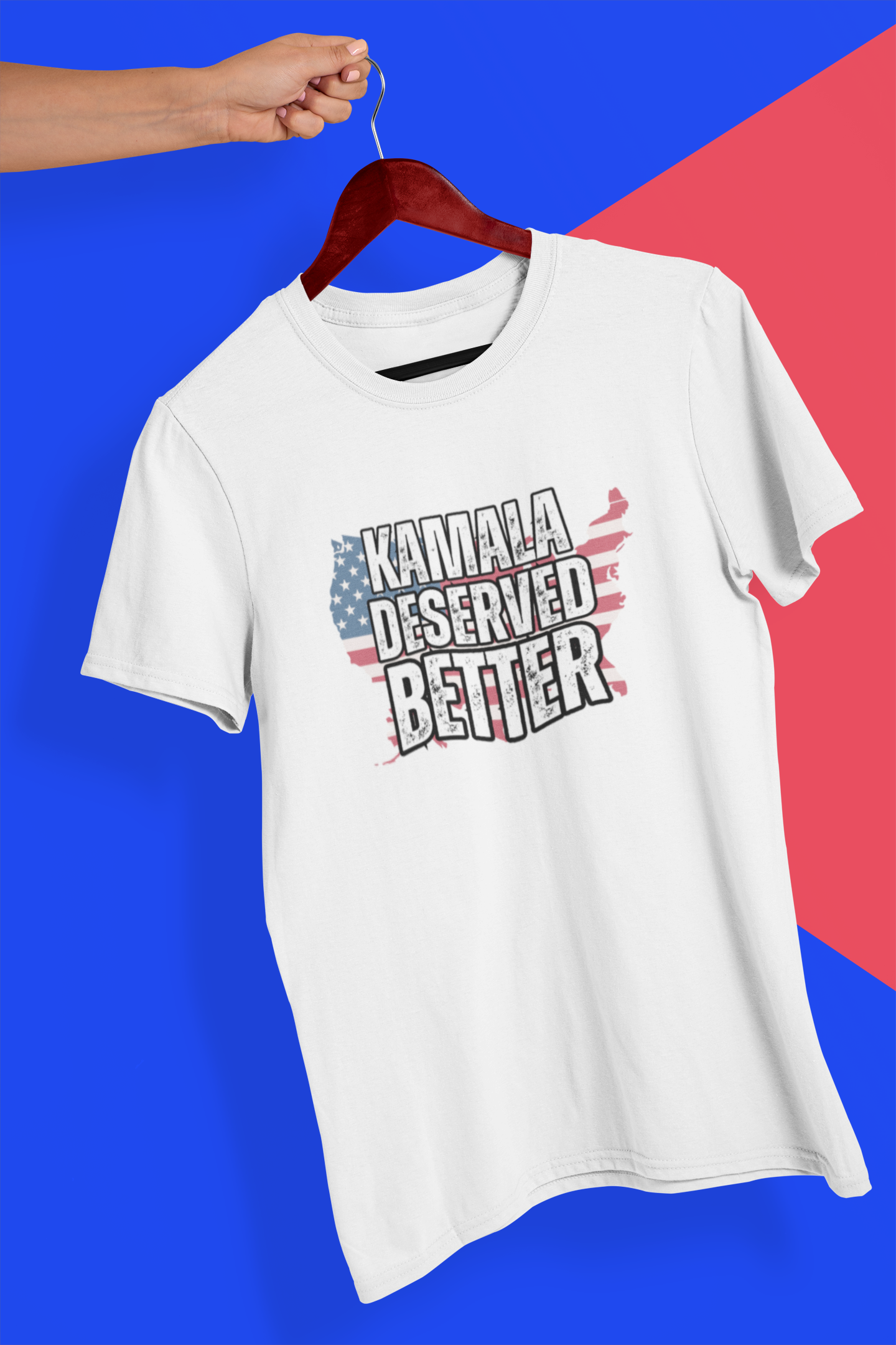 This "Kamala Deserved Better" T-shirt is a bold rallying cry for those disheartened by the 2024 election results, capturing the sentiment of those who refuse to be silenced. Featuring custom artwork, it channels hope for a stronger democracy and stands as a powerful statement for activists and Kamala Harris supporters alike. Perfect for protests, rallies, political events, or simply making a statement in everyday wear.