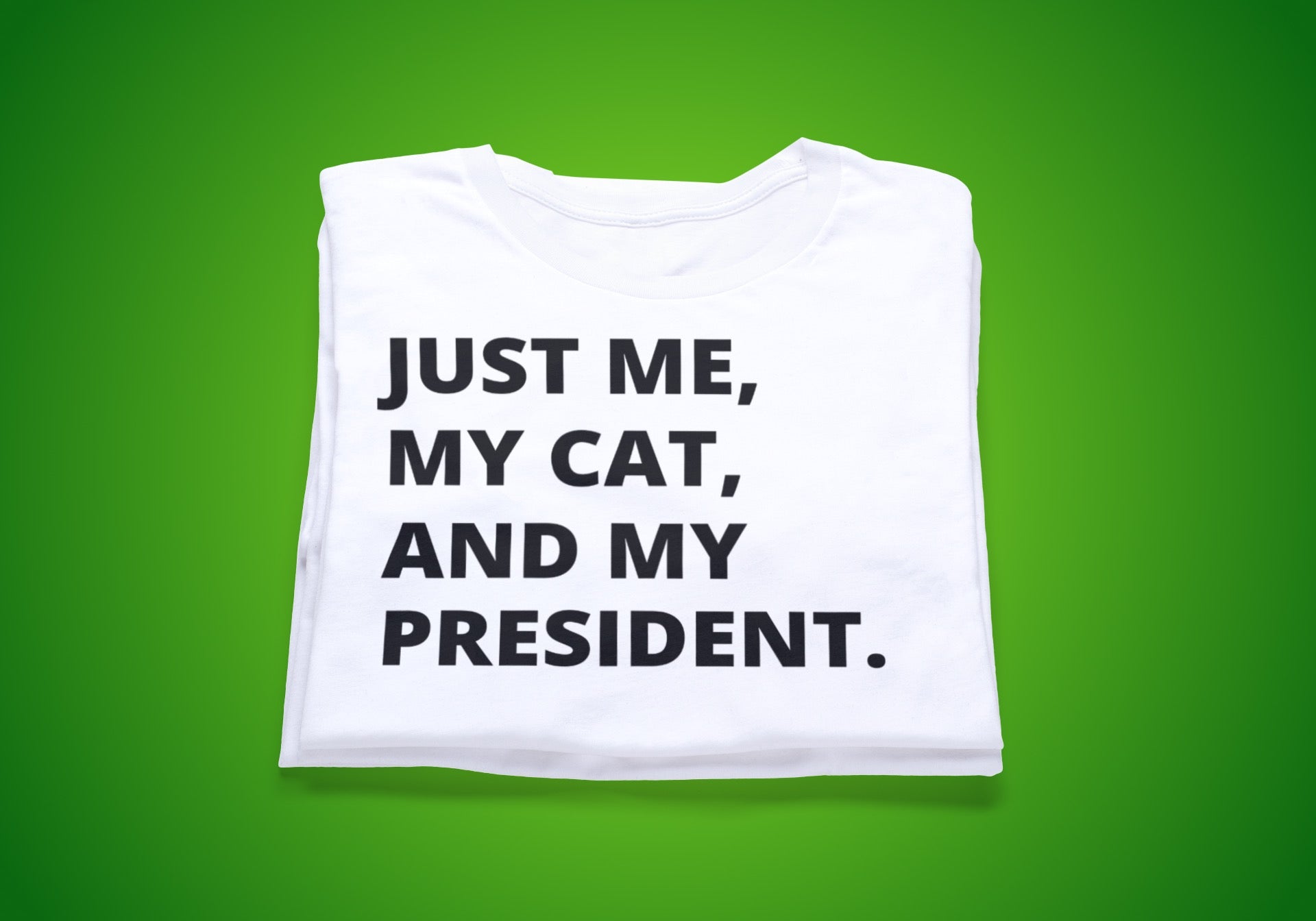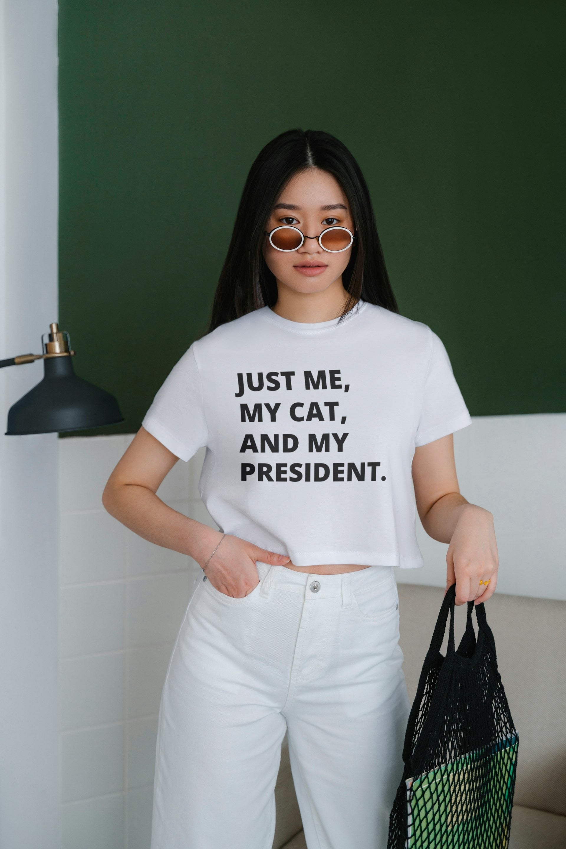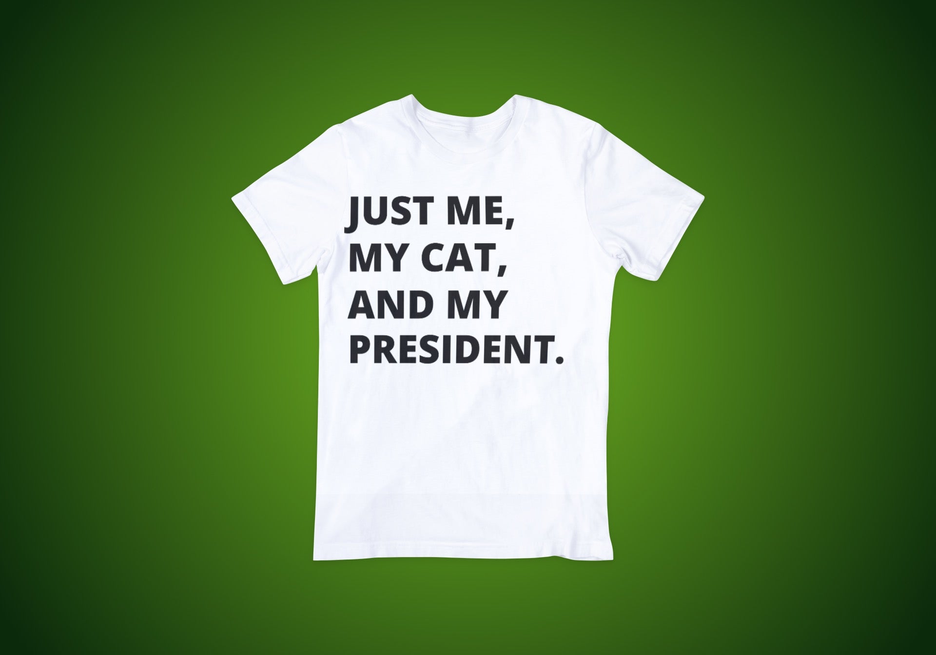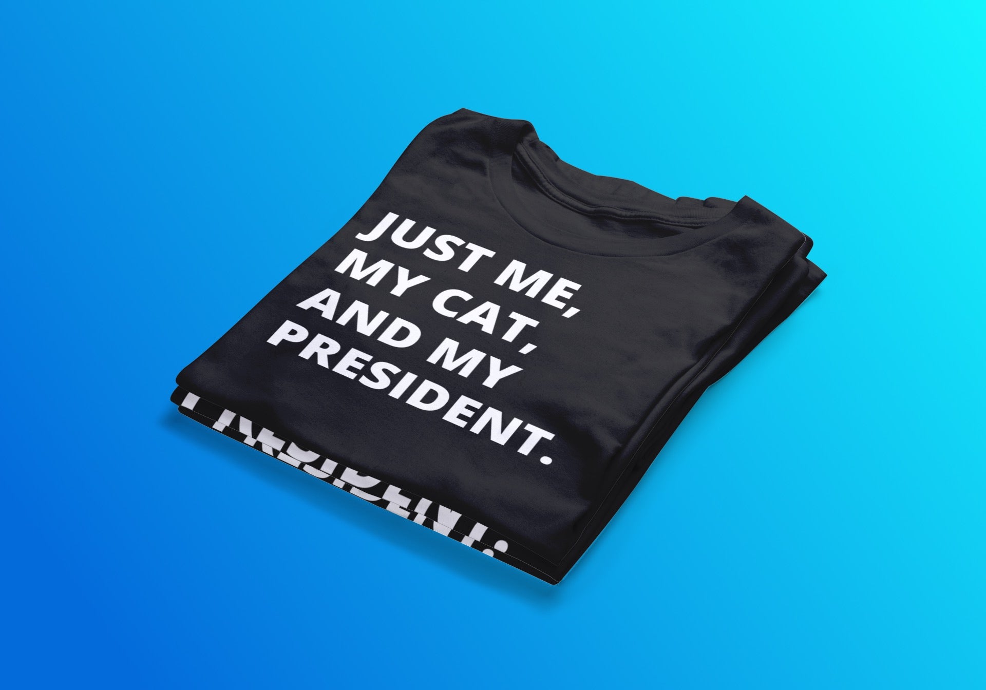 Introducing our exclusive T-shirt celebrating empowerment and feline companionship: the "Just Me, My Cat, and My President" tee, proudly supporting Vice President Kamala Harris's 2024 presidential ambitions. Crafted from premium, locally sourced fabric in the USA, this shirt blends comfort with a bold statement. Available in classic black-and-white, it's perfect for those who believe in leadership, unity, and the purr-fect partnership with their furry friends. Wear it with pride and show your support for a brighter future!