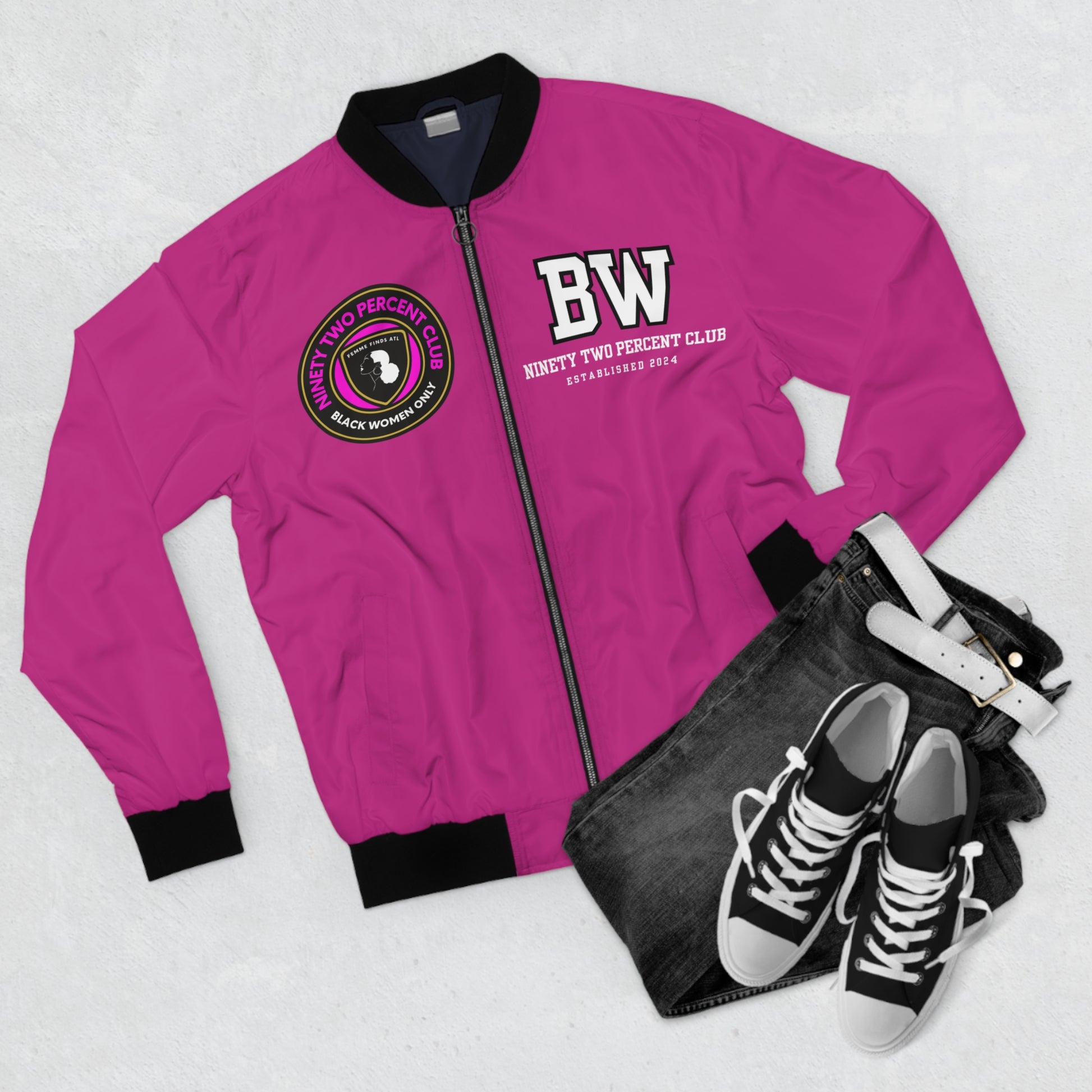 Introducing the exclusive 92% Club Members Only Bomber Jacket – a statement piece dedicated to the powerful 92% of Black women who showed up and showed out for Kamala Harris. Designed in sleek, premium, lightweight fabric, this jacket represents resilience, pride, and the unwavering voice of those who champion progress. Emblazoned with "92% Club" detailing and a subtle Kamala-inspired emblem, it’s a badge of honor for those who stand on the frontlines of change.