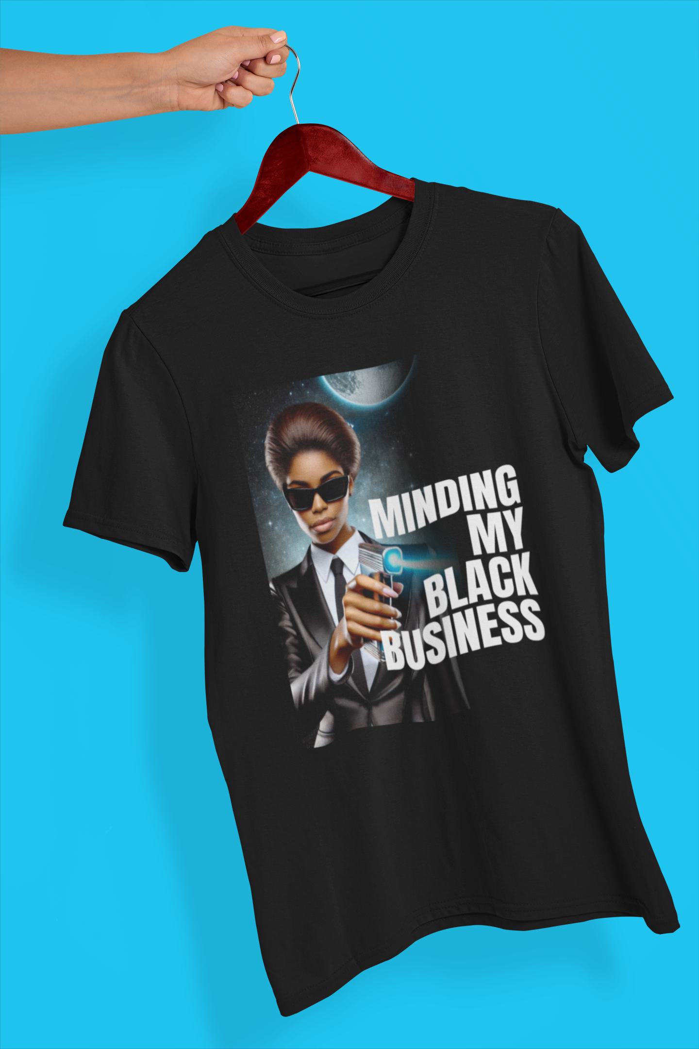Inspired by the iconic Men in Black, this tee is a statement piece for Black people who are reclaiming their time, energy, and peace. Featuring custom artwork of a powerful Black figure holding a Neuralyzer, the design symbolizes erasing the expectations placed on Black people to save everyone else while receiving no true support in return.