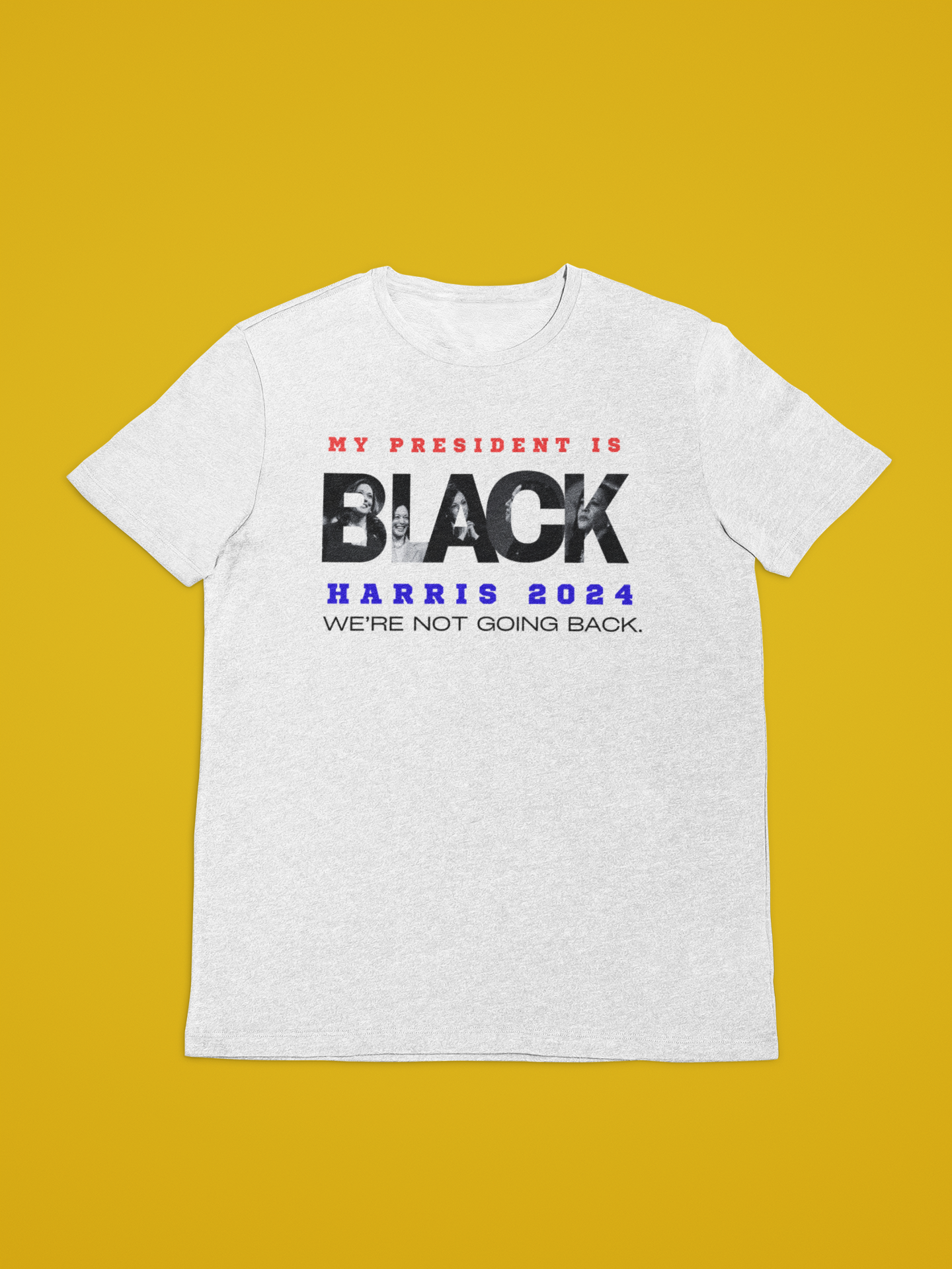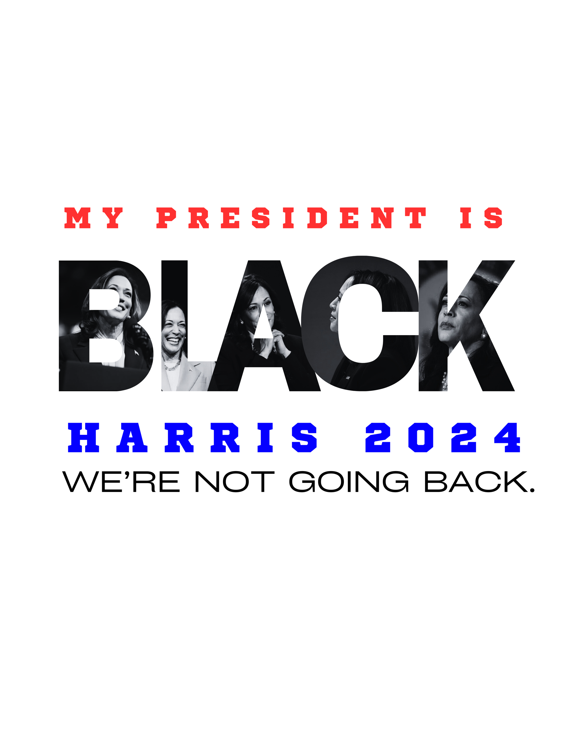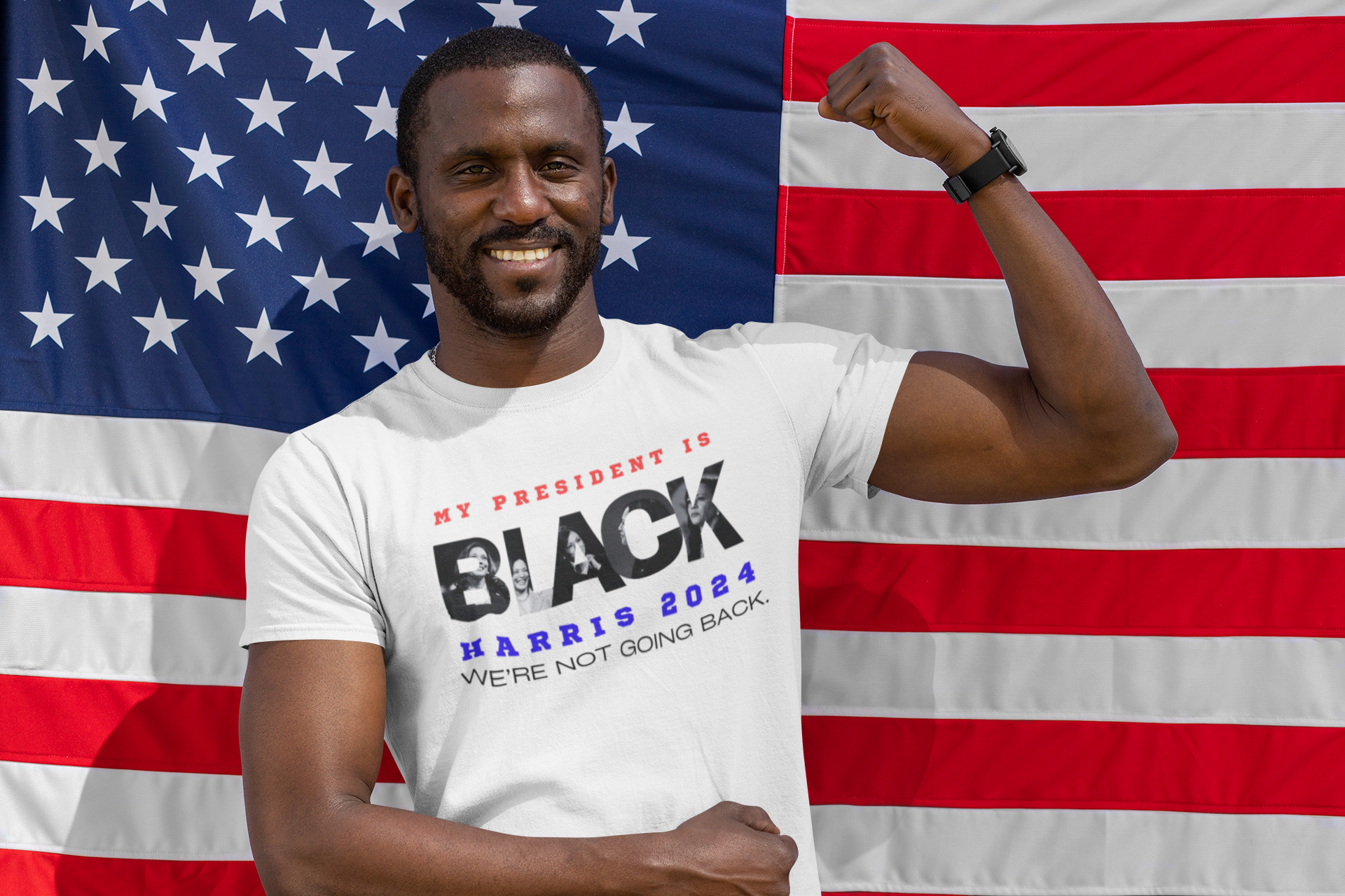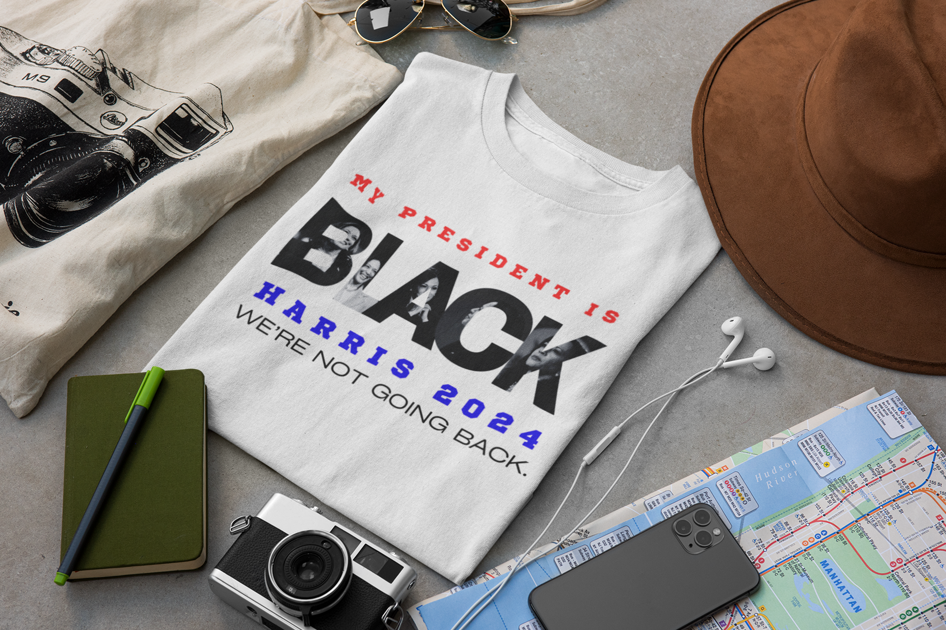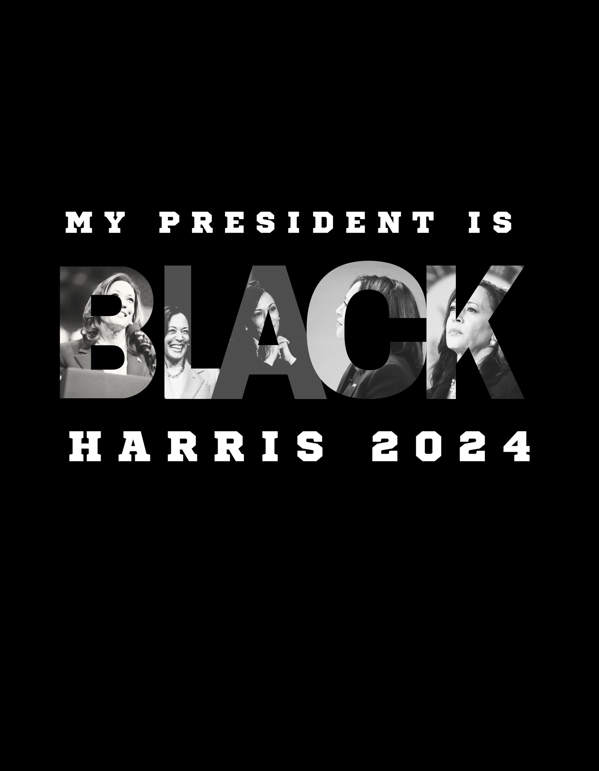 Introducing the “My President Is Black” T-shirt — a powerful statement of unity, pride, and progress. This exclusive tee features a collage of striking photos of Kamala Harris, showcasing her strength and leadership. The bold phrase “My President Is Black” serves as a proud declaration of support for her historic campaign.