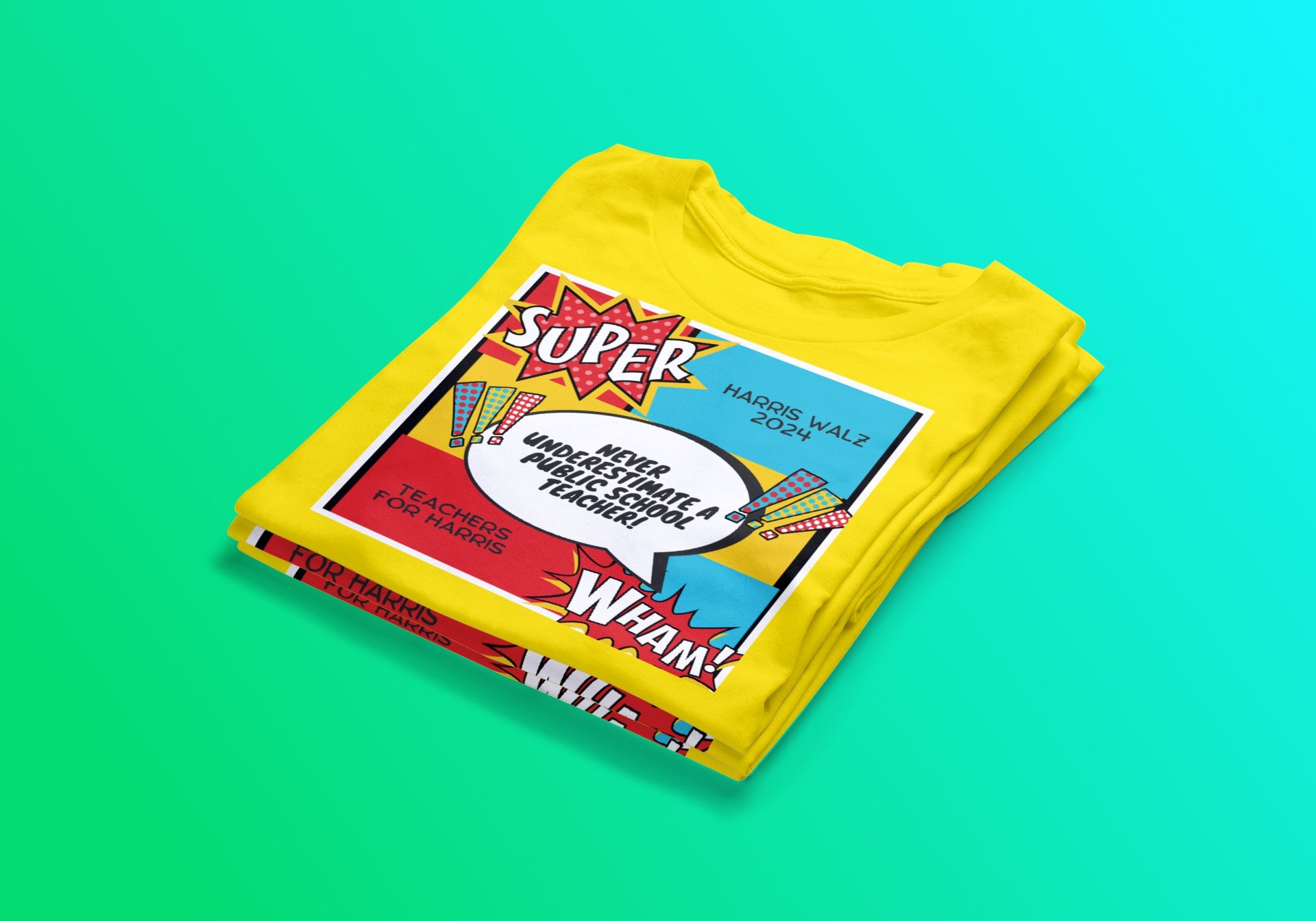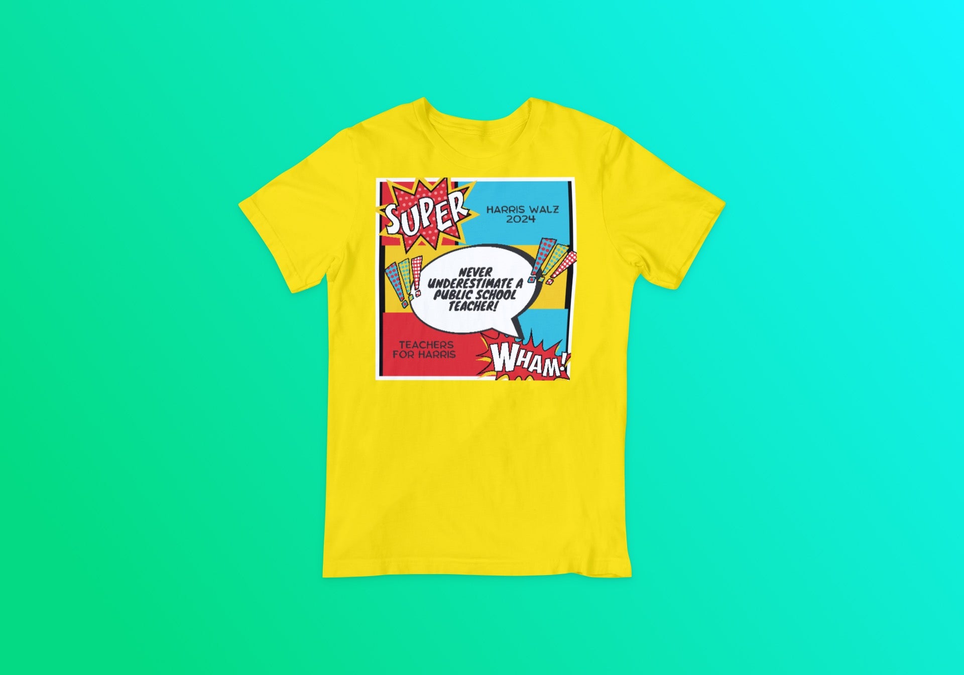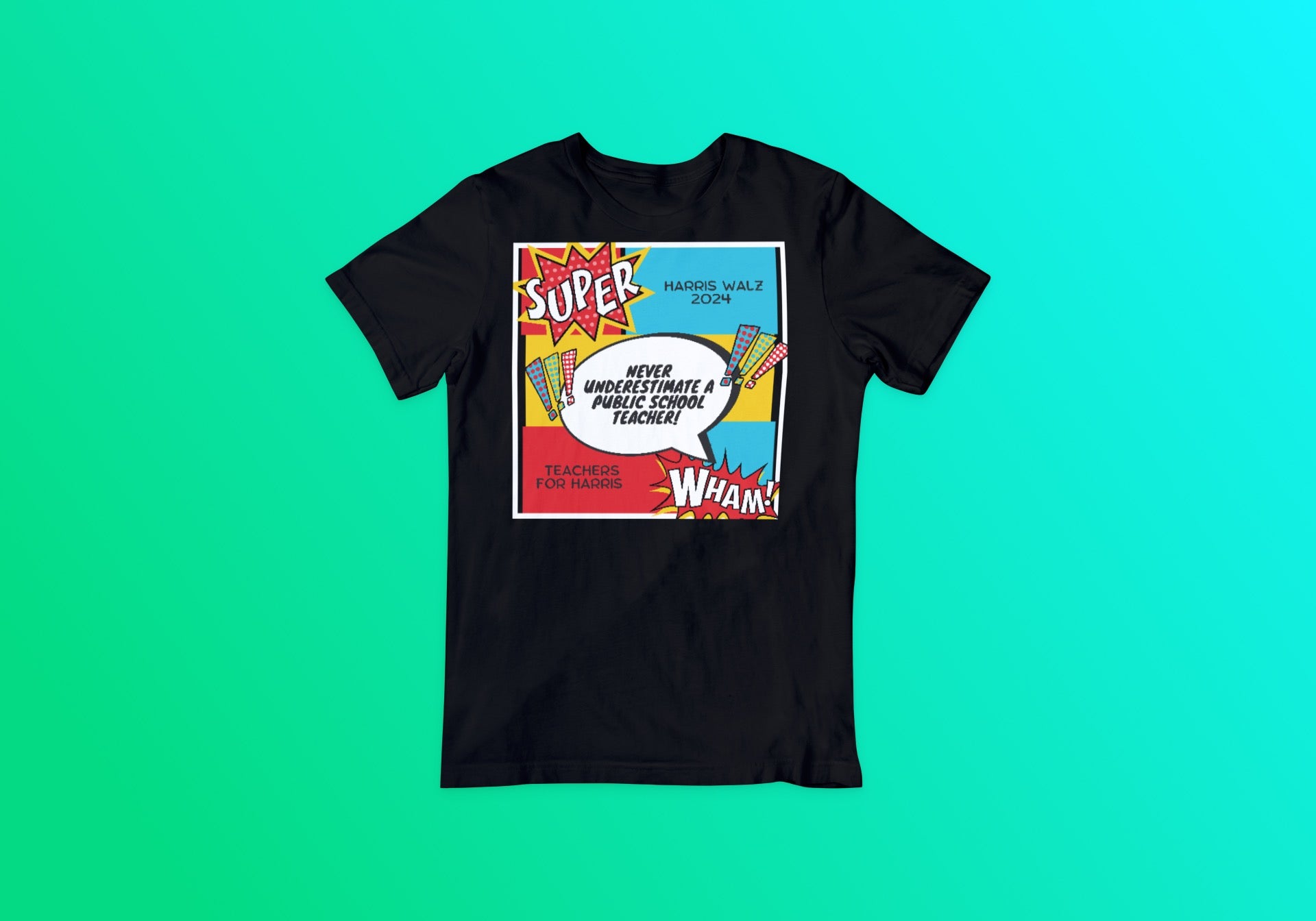 Celebrate the everyday superheroes in our classrooms with this bold and inspiring T-shirt. Inspired by a powerful quote from Tim Walz, this T-shirt is a tribute to the incredible superpowers that public school teachers display daily. The custom artwork features a dynamic superhero theme, showcasing teachers as the true heroes they are, shaping minds and making a difference in the world. Made from soft, high-quality fabric, this shirt is perfect for educators and supporters alike. Wear it proudly and let the world know that public school teachers are not to be underestimated!