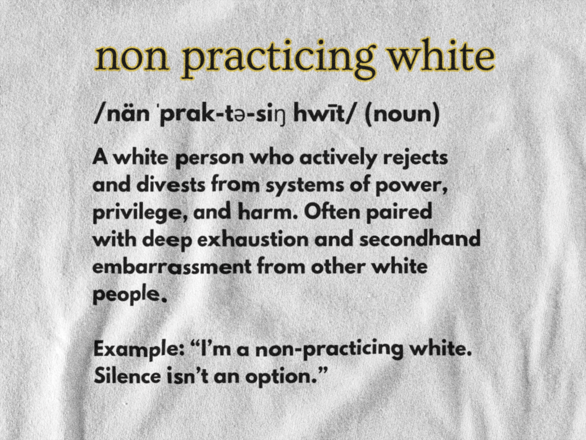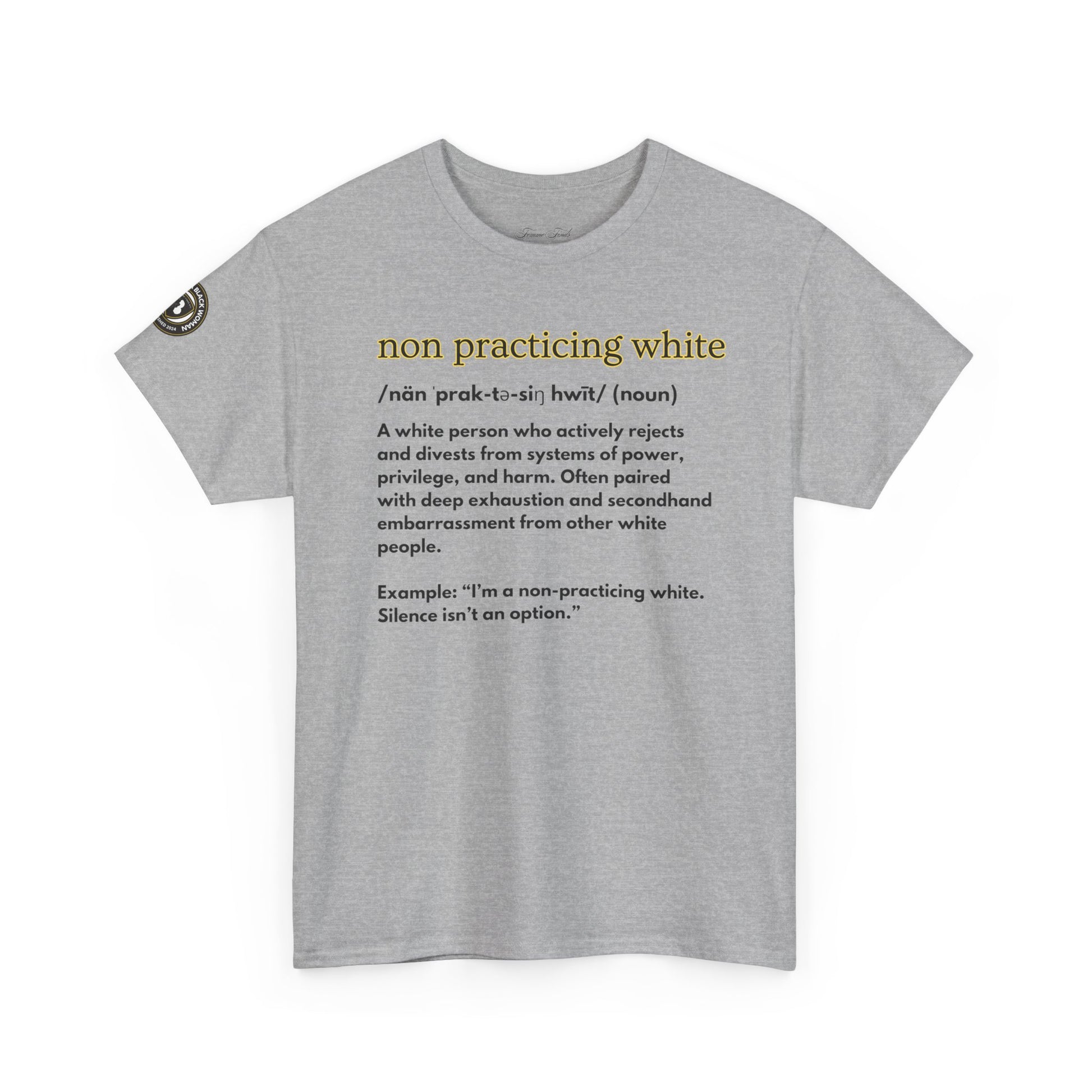 Created for those who are exhausted by the harm, hypocrisy, and hate still rooted in white supremacy, this shirt speaks to a collective frustration and a shared responsibility to do better. This tee is a purpose driven shirt created to fuel meaningful change. Wear it proudly knowing your choice contributes to the greater good.