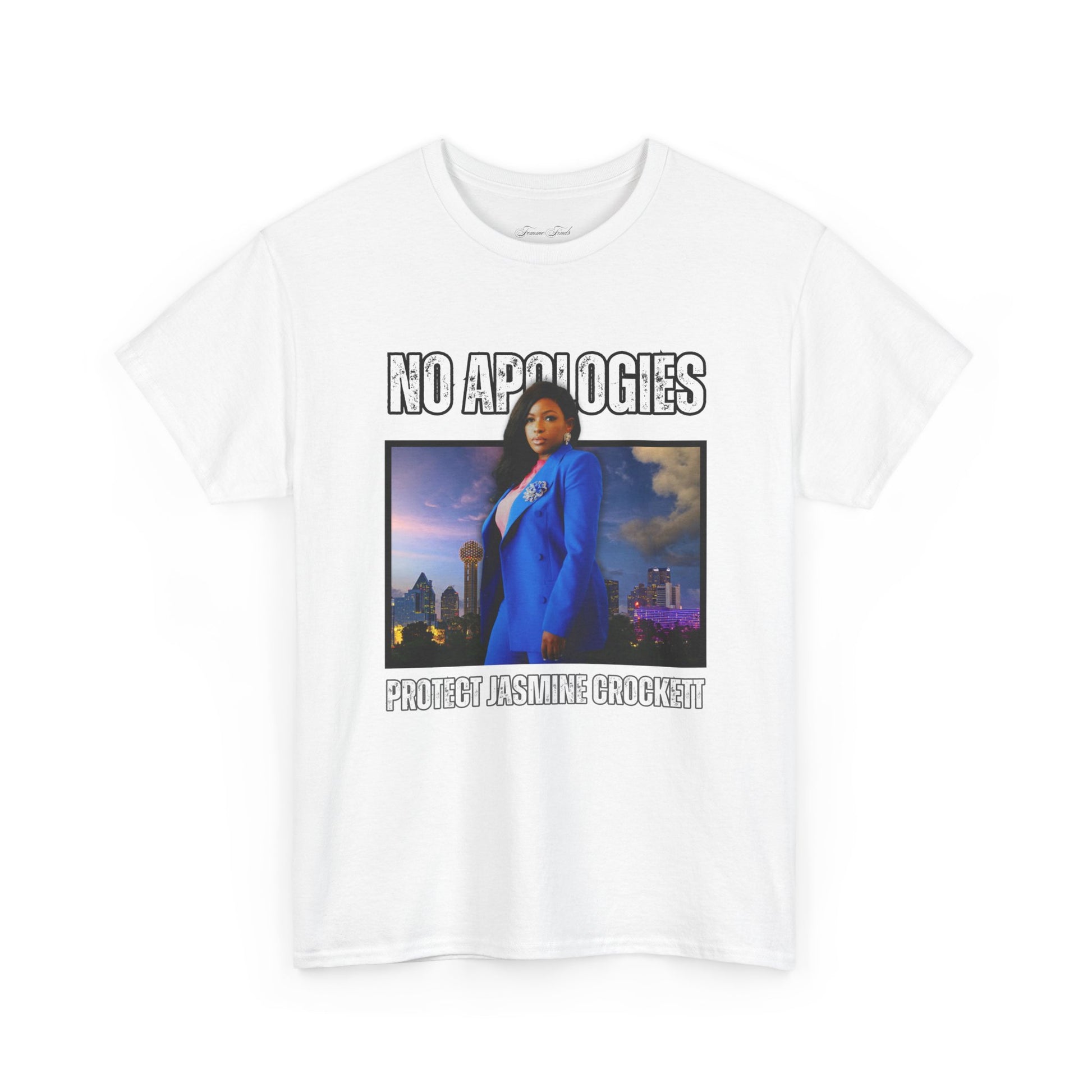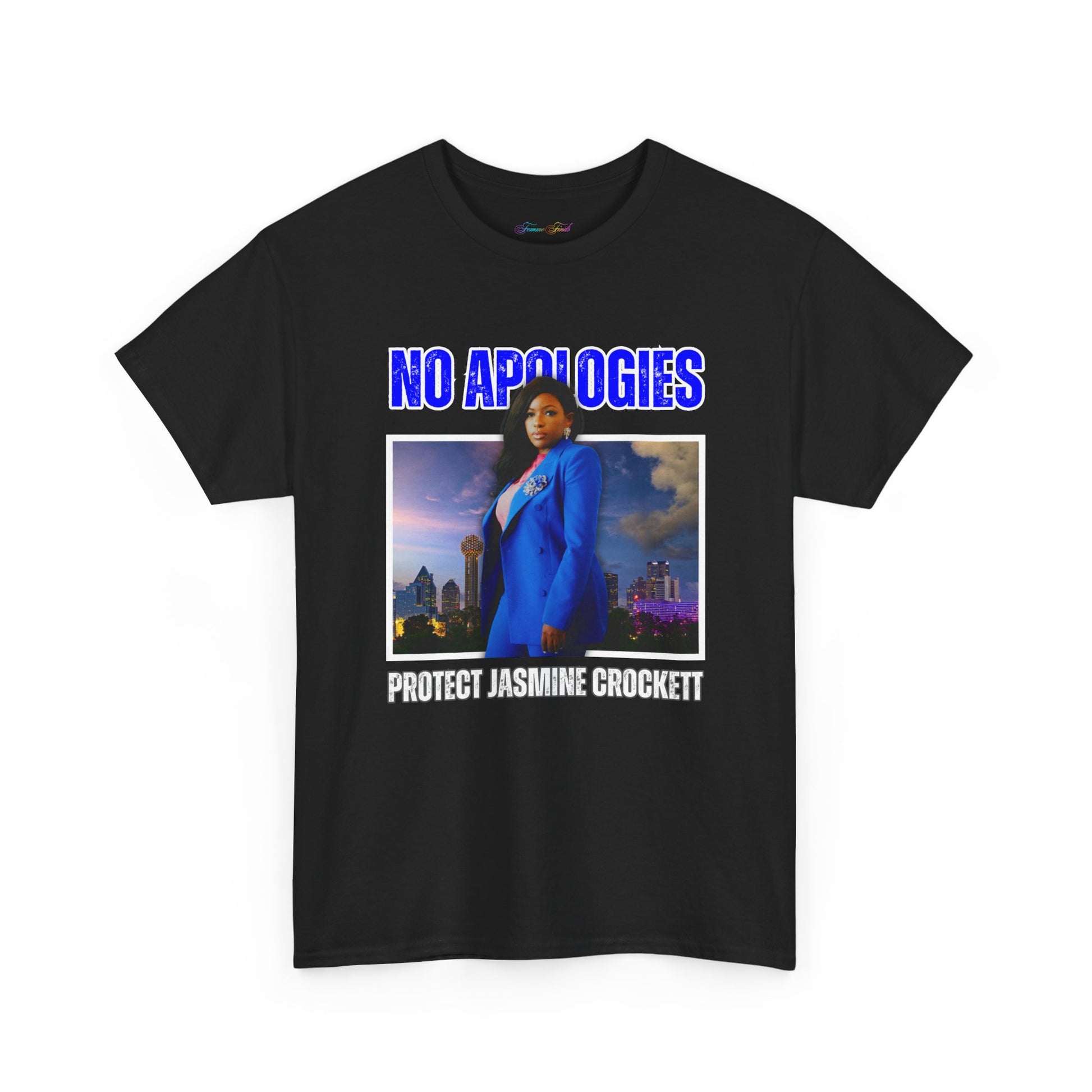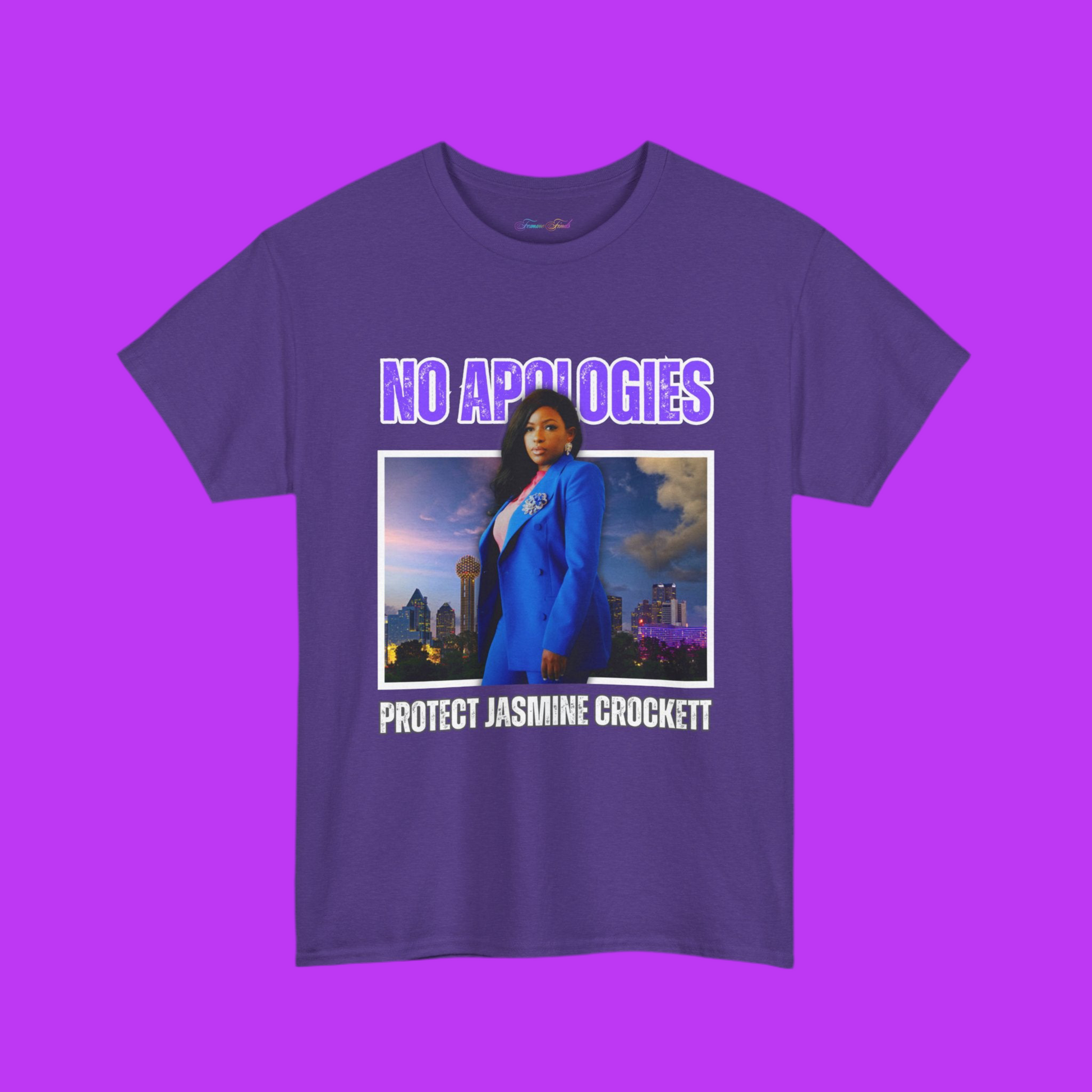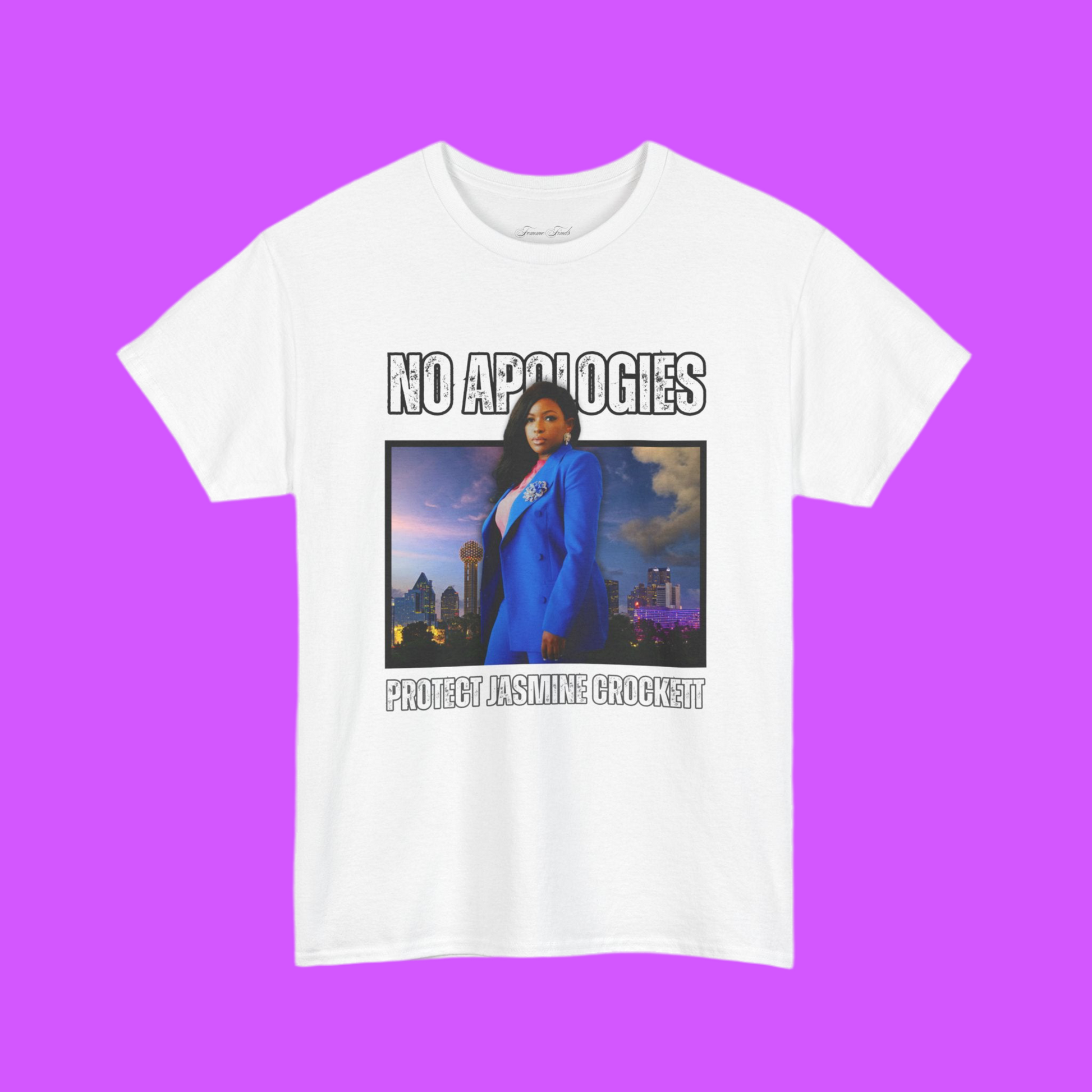 With “NO APOLOGIES” printed in bold and “PROTECT JASMINE CROCKETT” front and center, this tee features a striking photo of Rep. Jasmine Crockett standing tall against a Texas skyline. It’s a tribute to a leader who’s been unapologetic, unshakable, and undeniably brilliant in the face of attacks and political gaslighting.