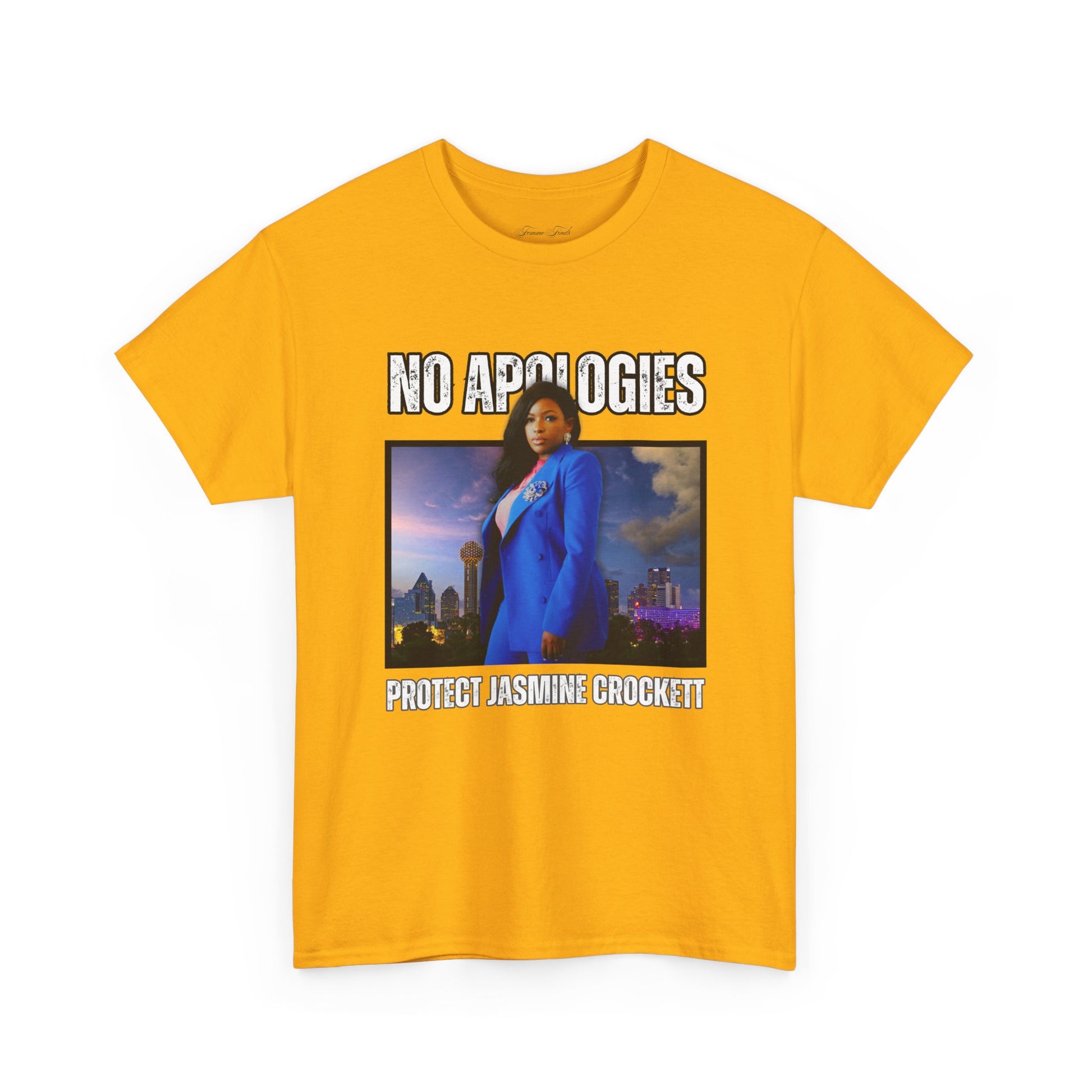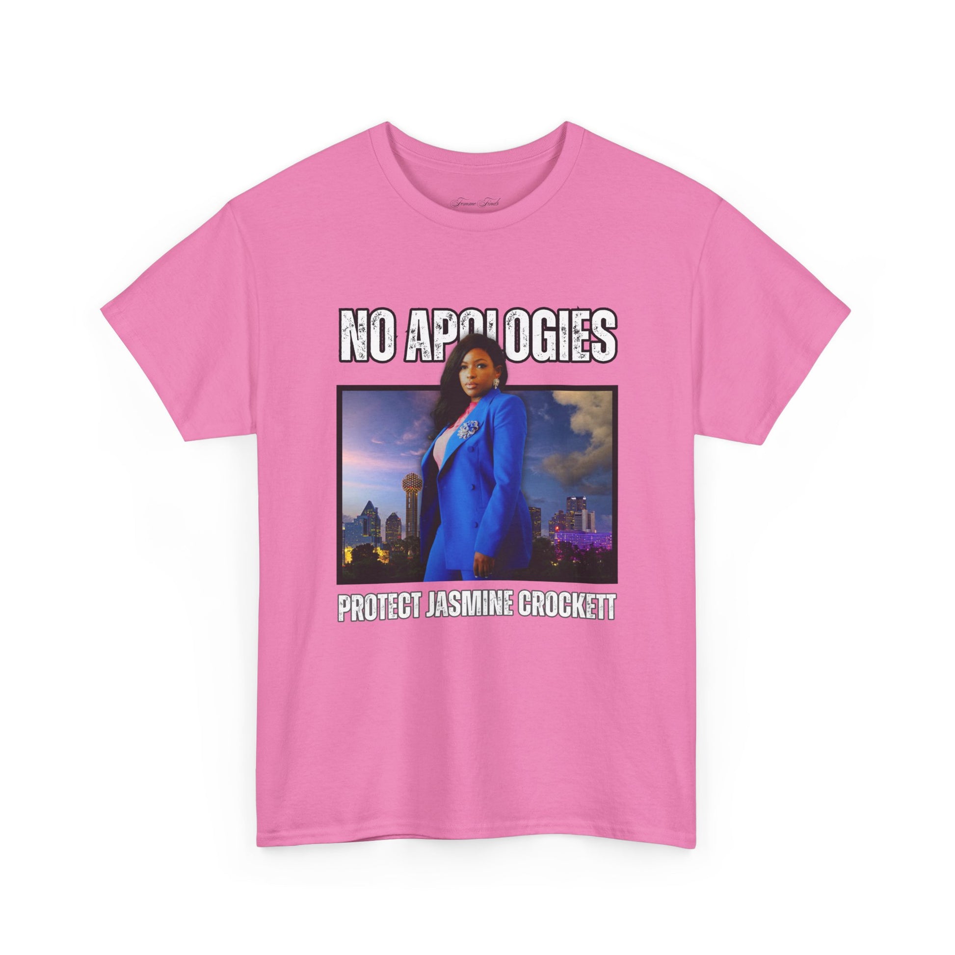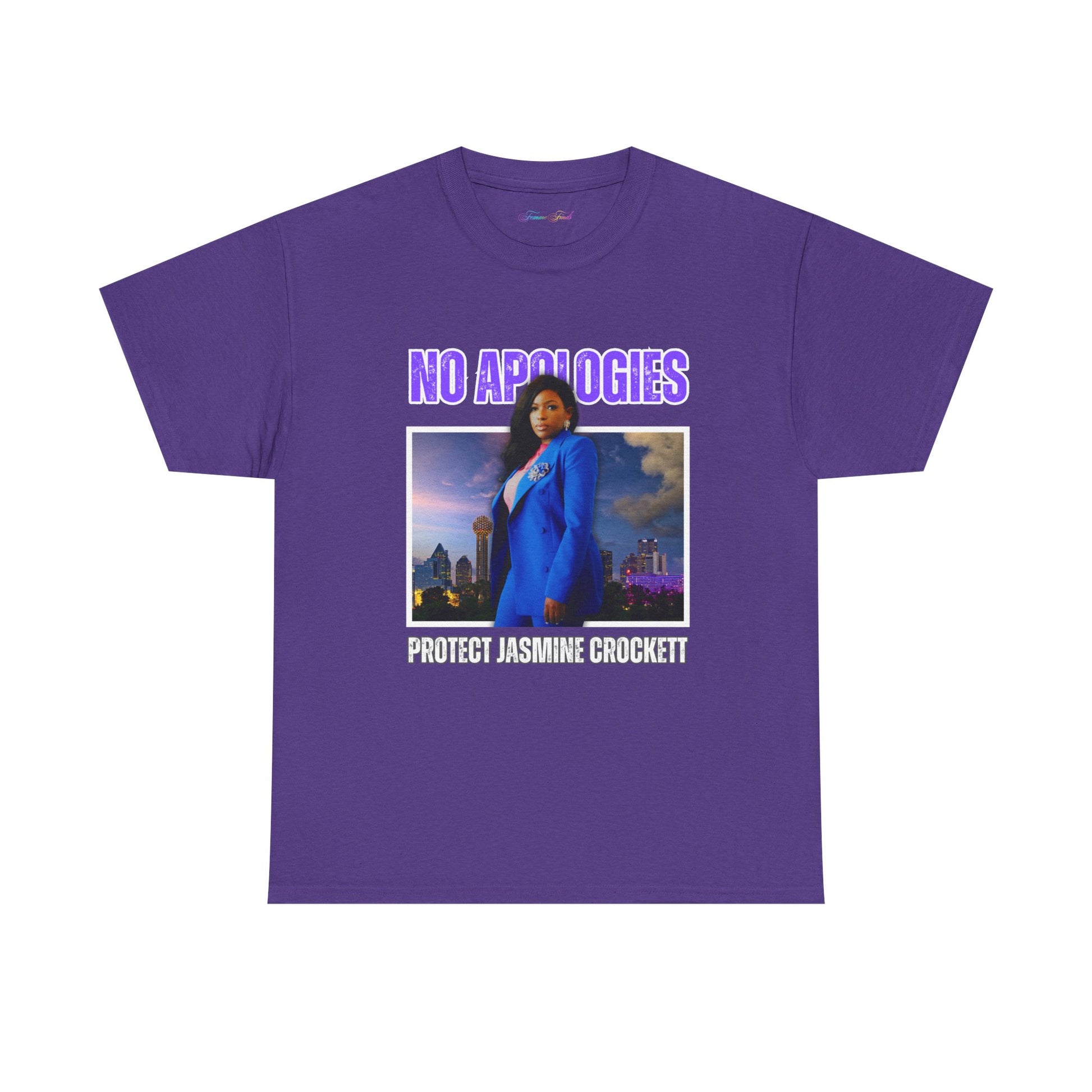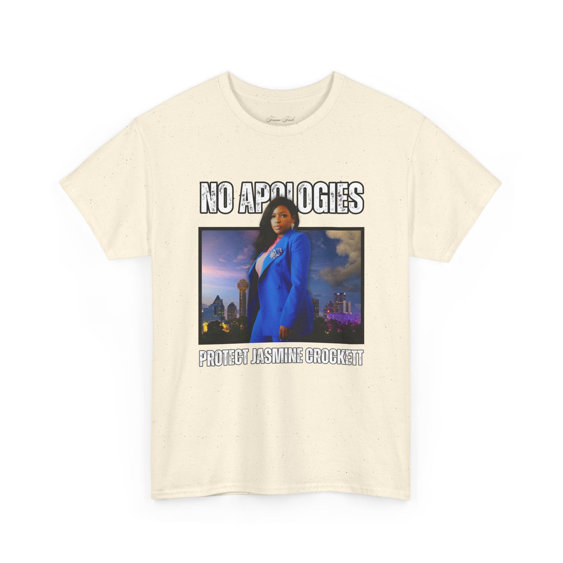 With “NO APOLOGIES” printed in bold and “PROTECT JASMINE CROCKETT” front and center, this tee features a striking photo of Rep. Jasmine Crockett standing tall against a Texas skyline. It’s a tribute to a leader who’s been unapologetic, unshakable, and undeniably brilliant in the face of attacks and political gaslighting.