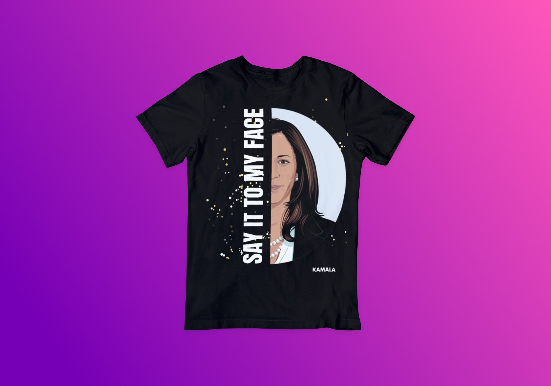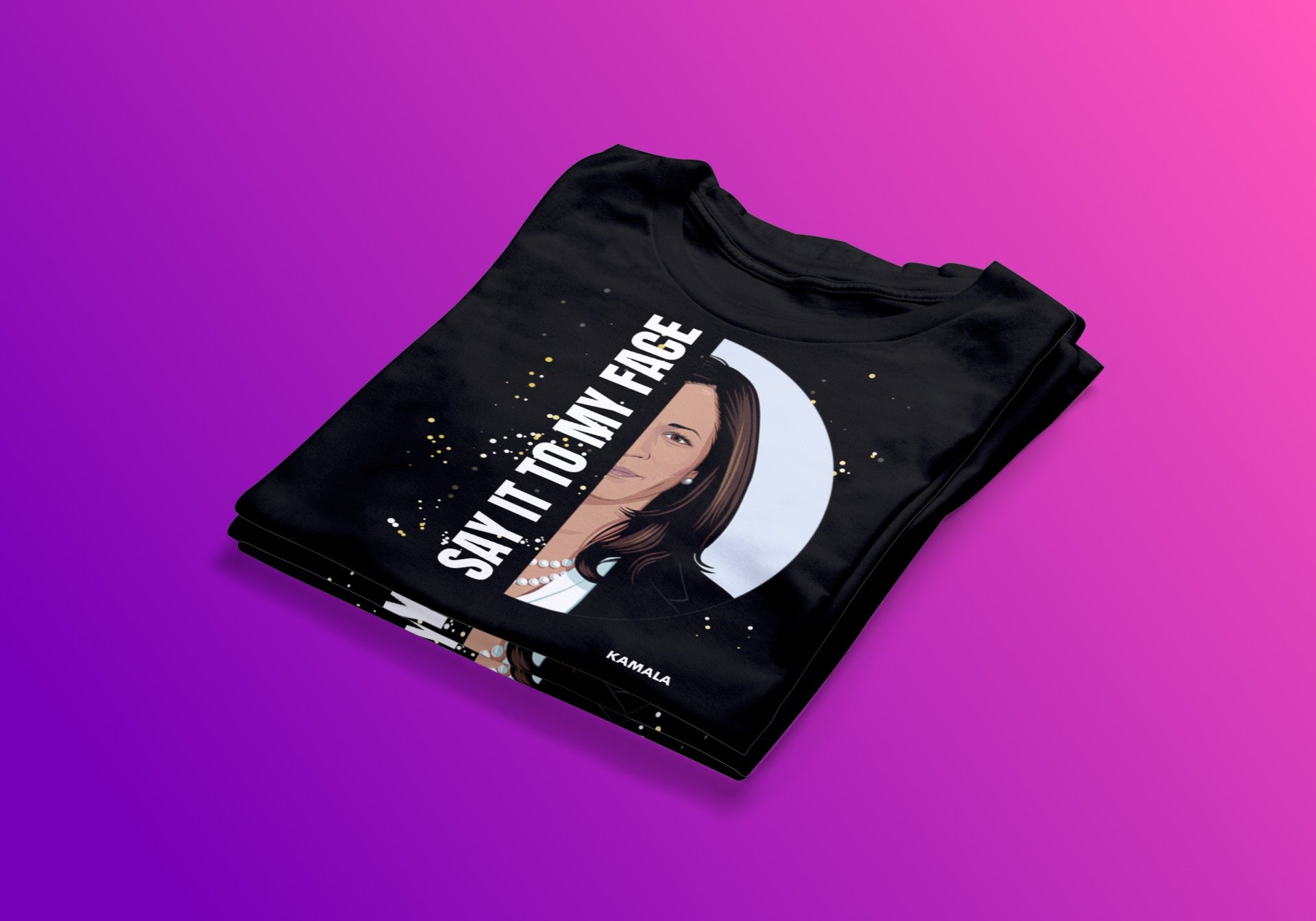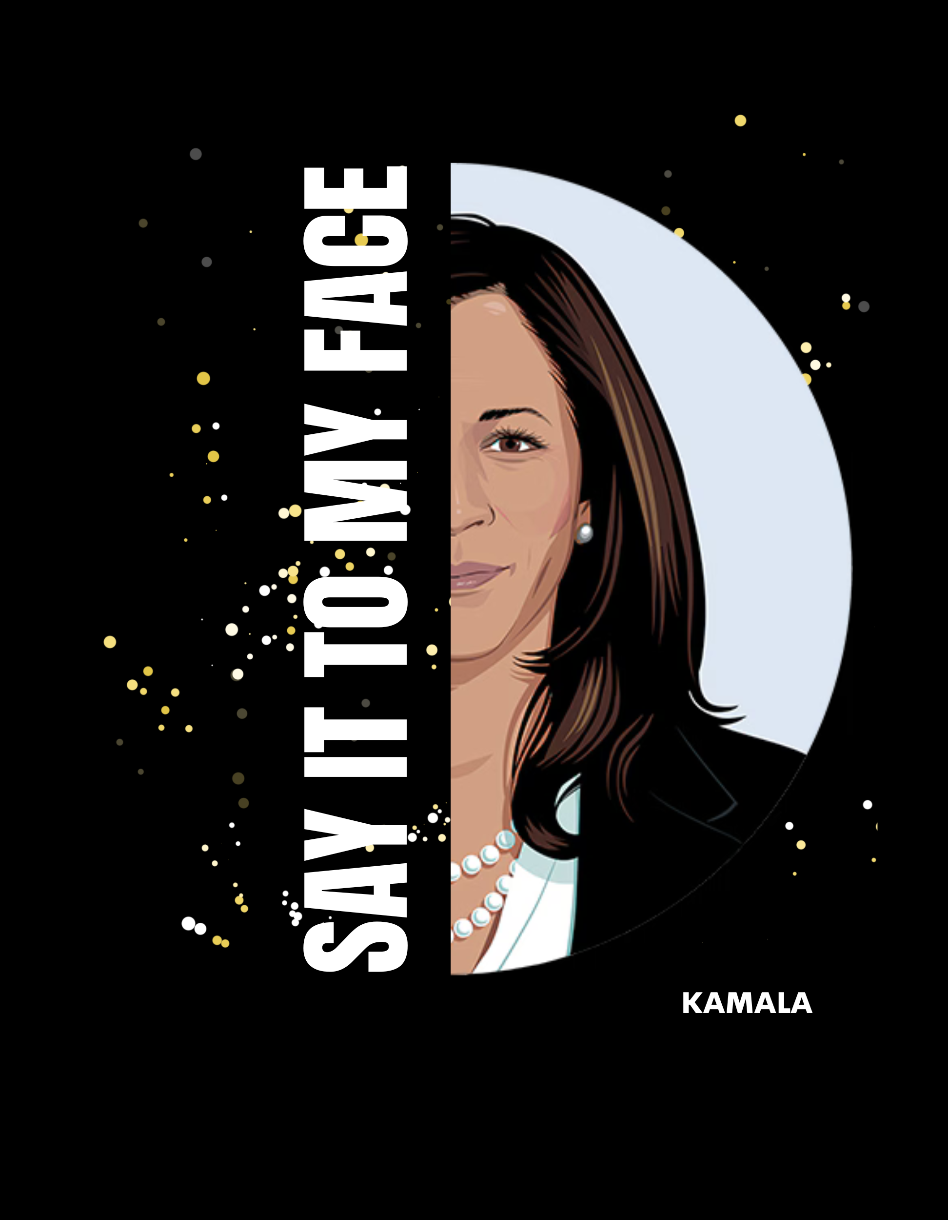 Introducing the "Say It to My Face" Limited Edition T-shirt—a bold statement in support of Vice President Kamala Harris's presidential campaign. This shirt celebrates courage, self-respect, and setting firm boundaries, reflecting the values of the campaign itself. Wear it proudly to show your commitment to these principles and your support for Harris. Plus, a portion of the profits from each shirt will be donated directly to her campaign, amplifying your impact. Limited availability—make your stand and contribute to the cause today.