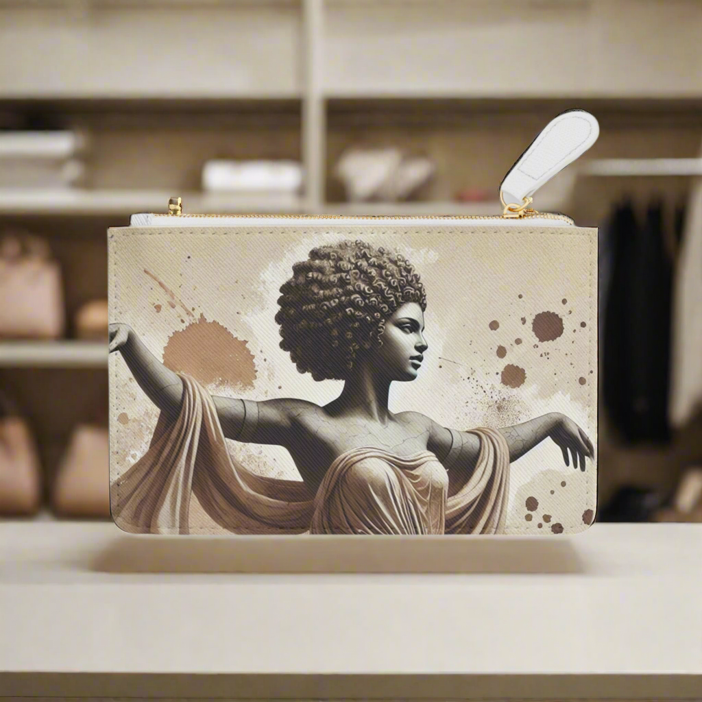 Celebrate strength, elegance, and the power of representation with The Majesty Mini Clutch Bag This exquisite accessory showcases a stunning custom digital artwork created by a Black artist, designed to honor and empower Black women. The piece depicts a regal Black goddess in Renaissance-inspired attire, blending the timeless grace of classical art with modern identity.
