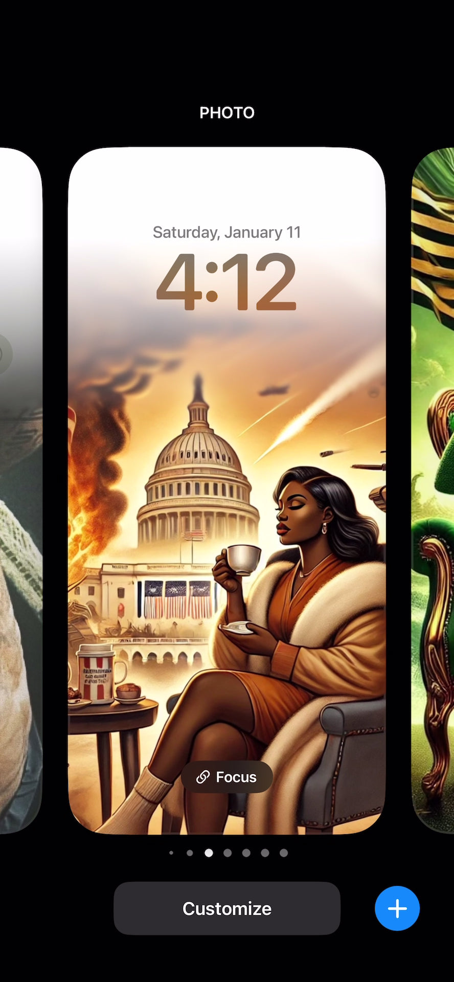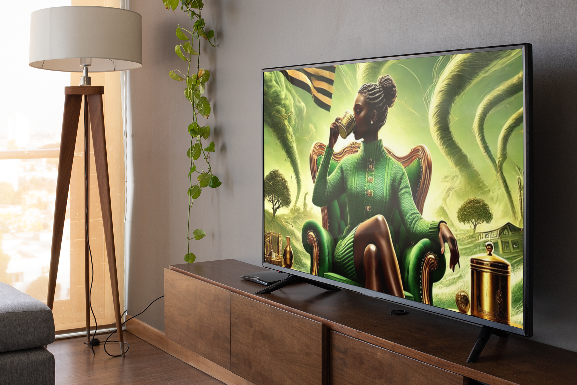 Introducing the "Unbothered" Wallpaper Collection, a series of striking digital artworks that celebrate the strength and serenity of Black women choosing self-preservation over chaos. Each wallpaper showcases Black women embodying calm and grace, unapologetically minding their business while the world around them descends into turmoil.