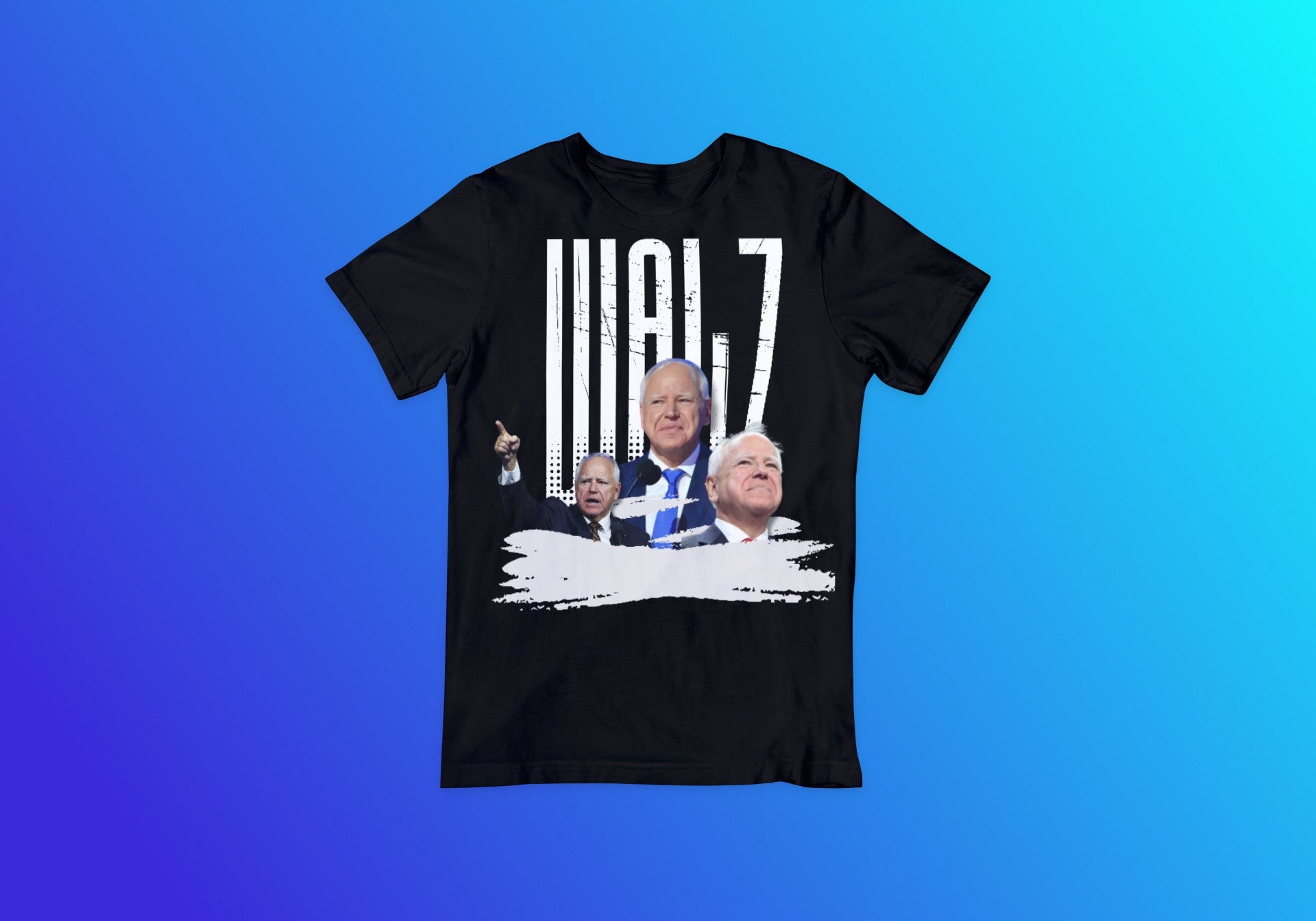 Celebrate the inspiring leadership of Governor Tim Walz with our exclusive custom-printed portrait tee! This limited-edition shirt captures the infectious joy and positive energy that Governor Walz has spread across the nation. Featuring a vibrant, detailed portrait of the Governor, this tee is a must-have for supporters who want to wear their pride on their sleeve—literally!
