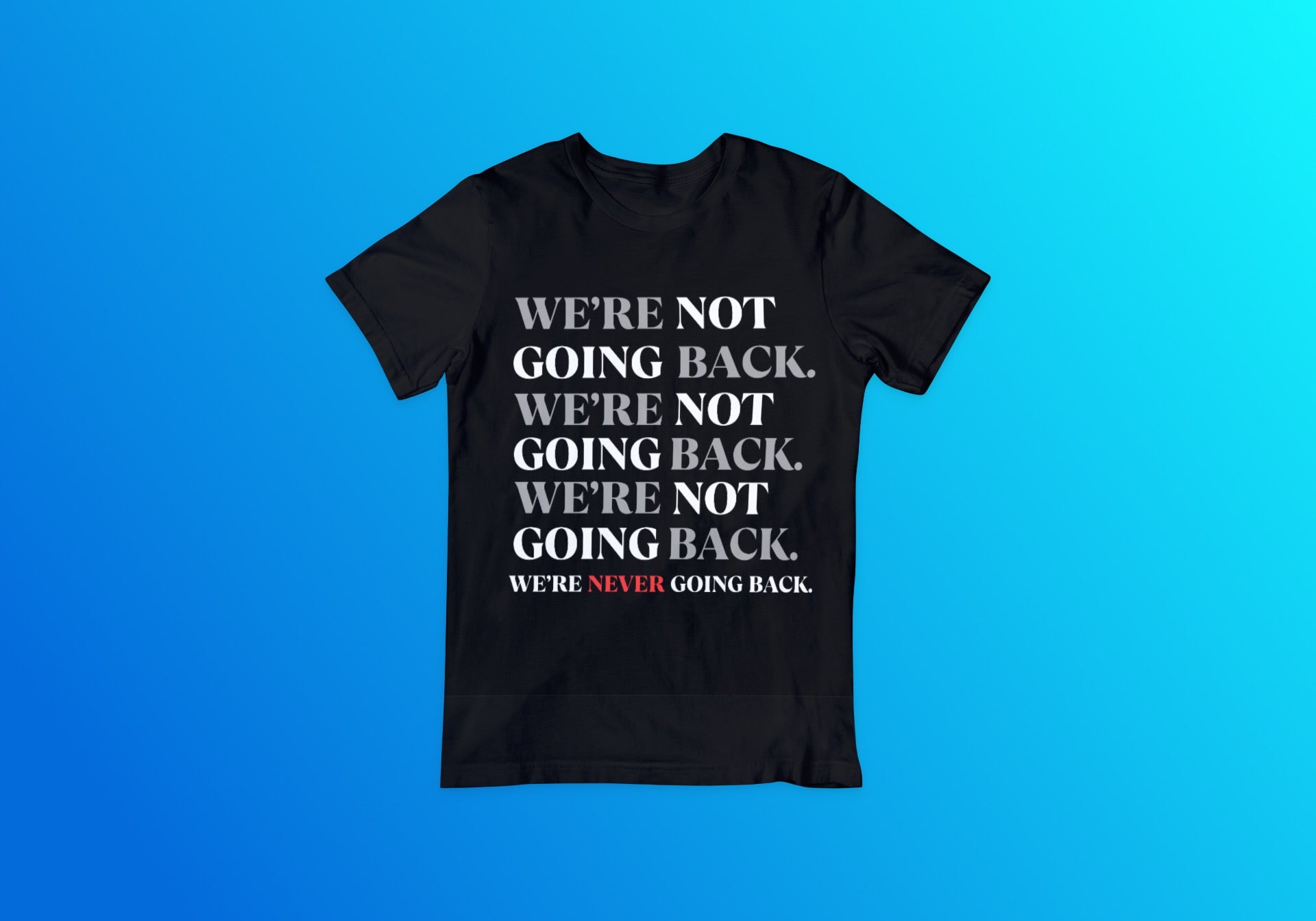 Introducing our "We’re NEVER Going Back" T-Shirt, a bold statement piece in celebration of Vice President Kamala Harris's historic presidential run. This shirt is more than just apparel; it’s a declaration of inclusivity and progress for America. With the powerful phrase “We’re Not Going Back” emblazoned across the chest, it serves as a reminder that our nation is moving forward, embracing diversity, equality, and justice for all.